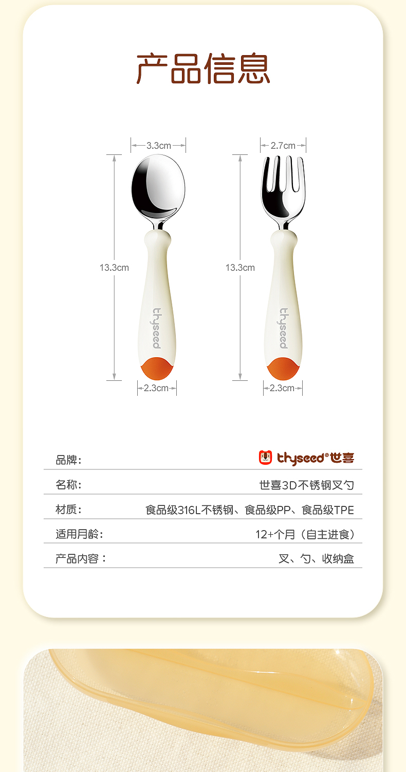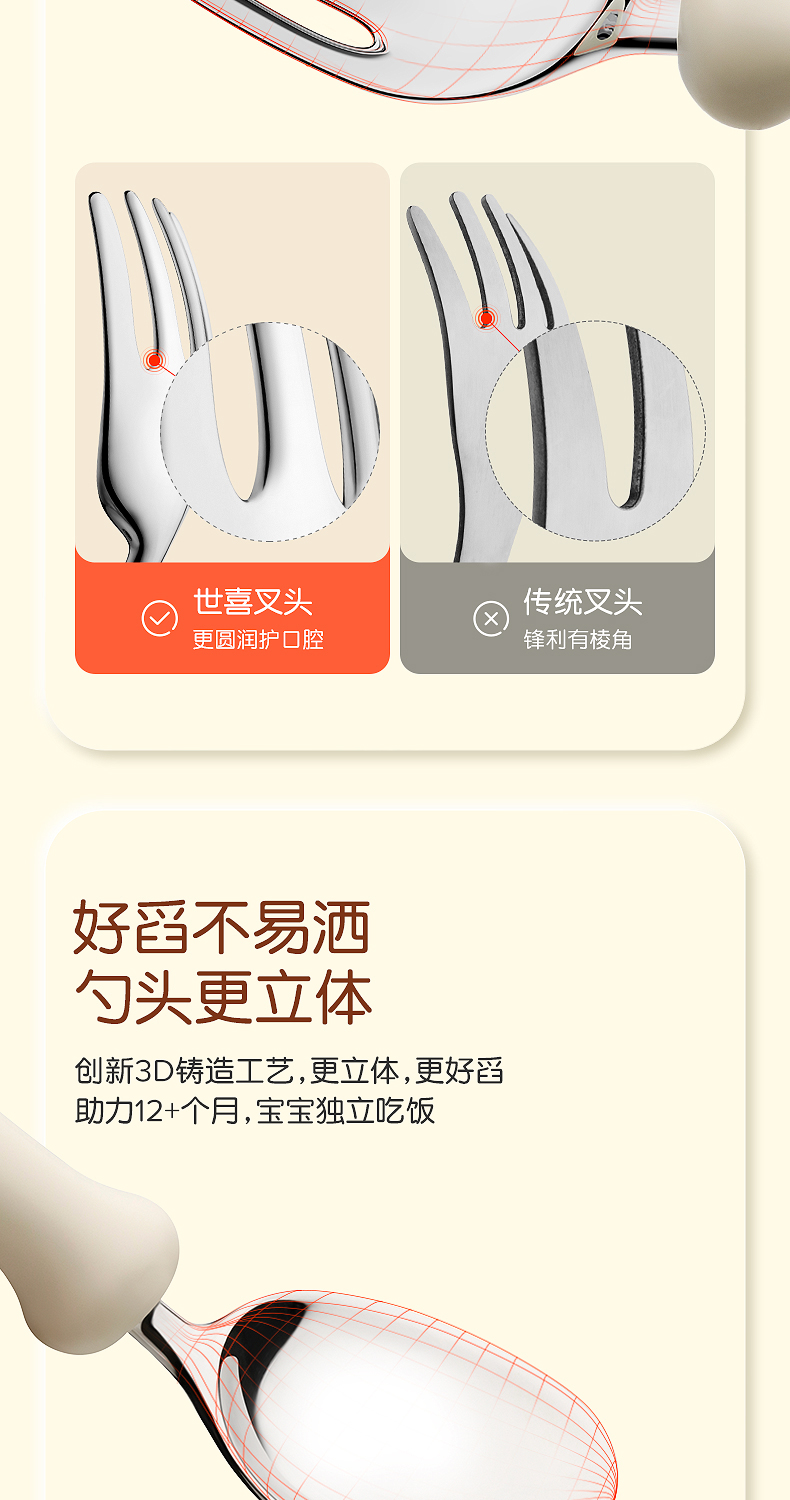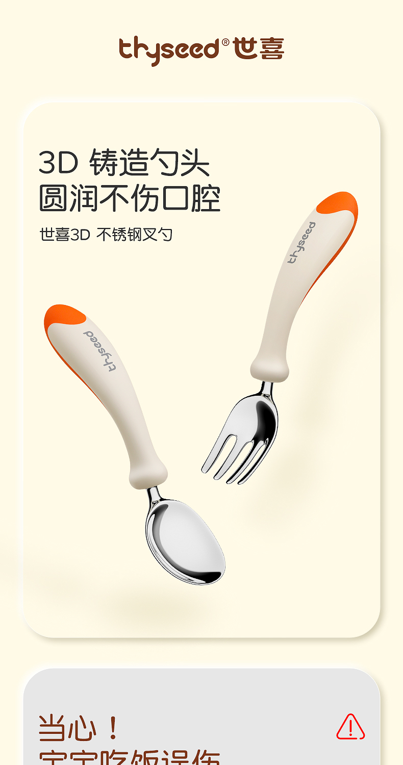 世喜宝宝勺子儿童学吃饭训练叉子自主进食饭勺婴儿不锈钢叉勺套装(禁止上架公域平台和实体店)