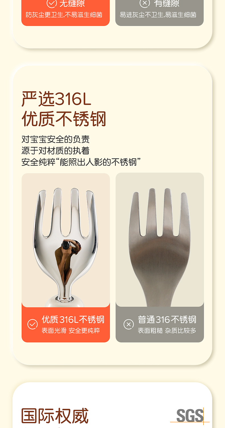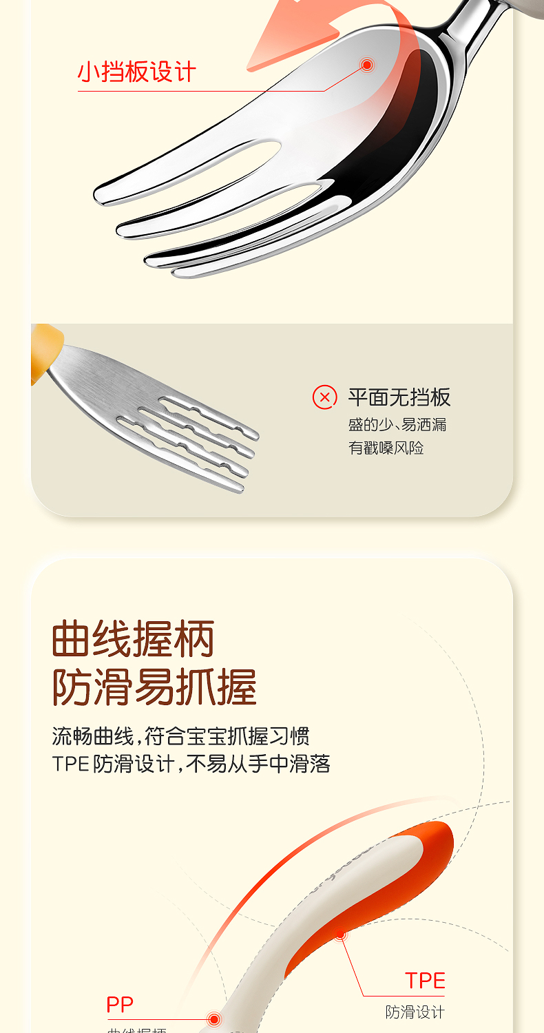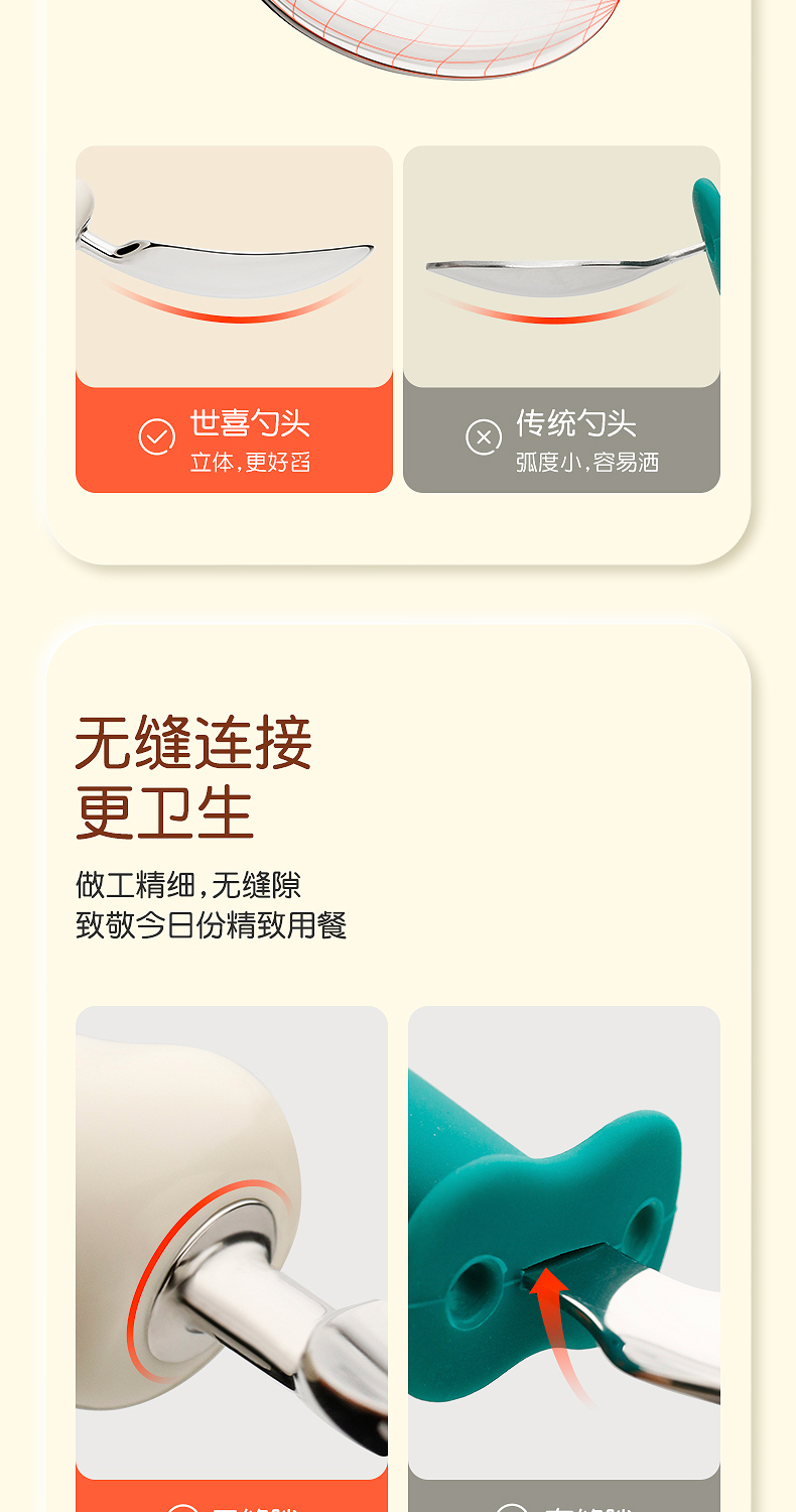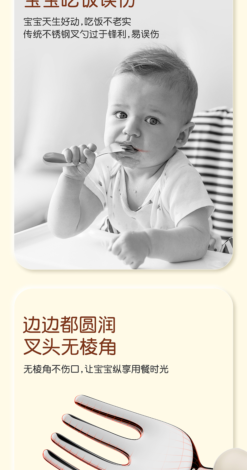 世喜宝宝勺子儿童学吃饭训练叉子自主进食饭勺婴儿不锈钢叉勺套装(禁止上架公域平台和实体店)