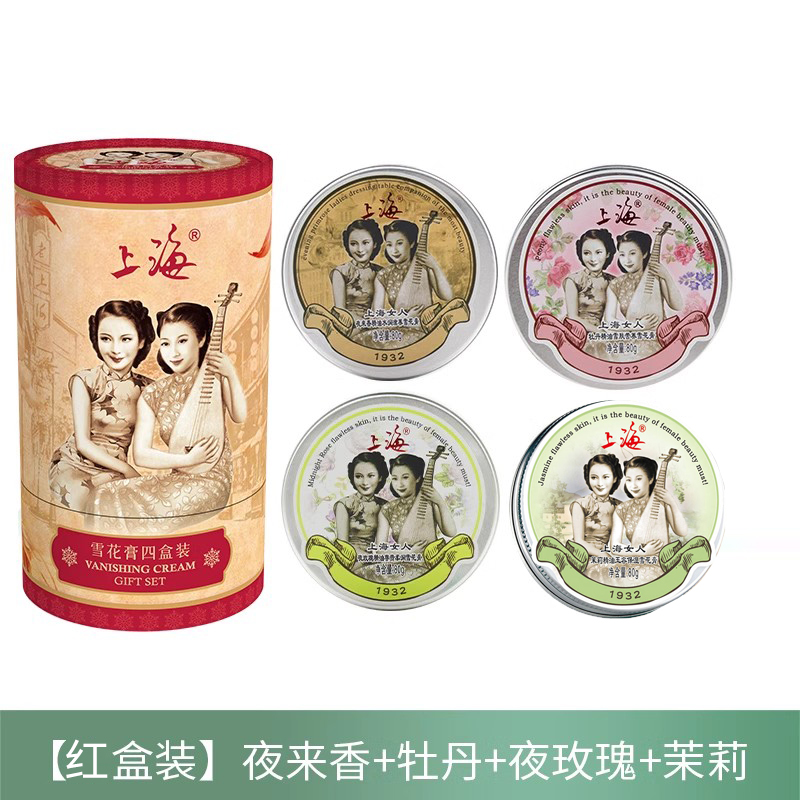 上海女人雪花膏四盒装/红80g*4