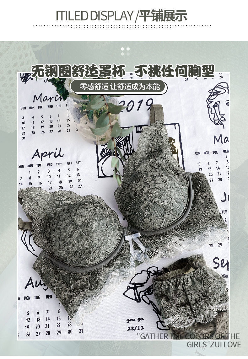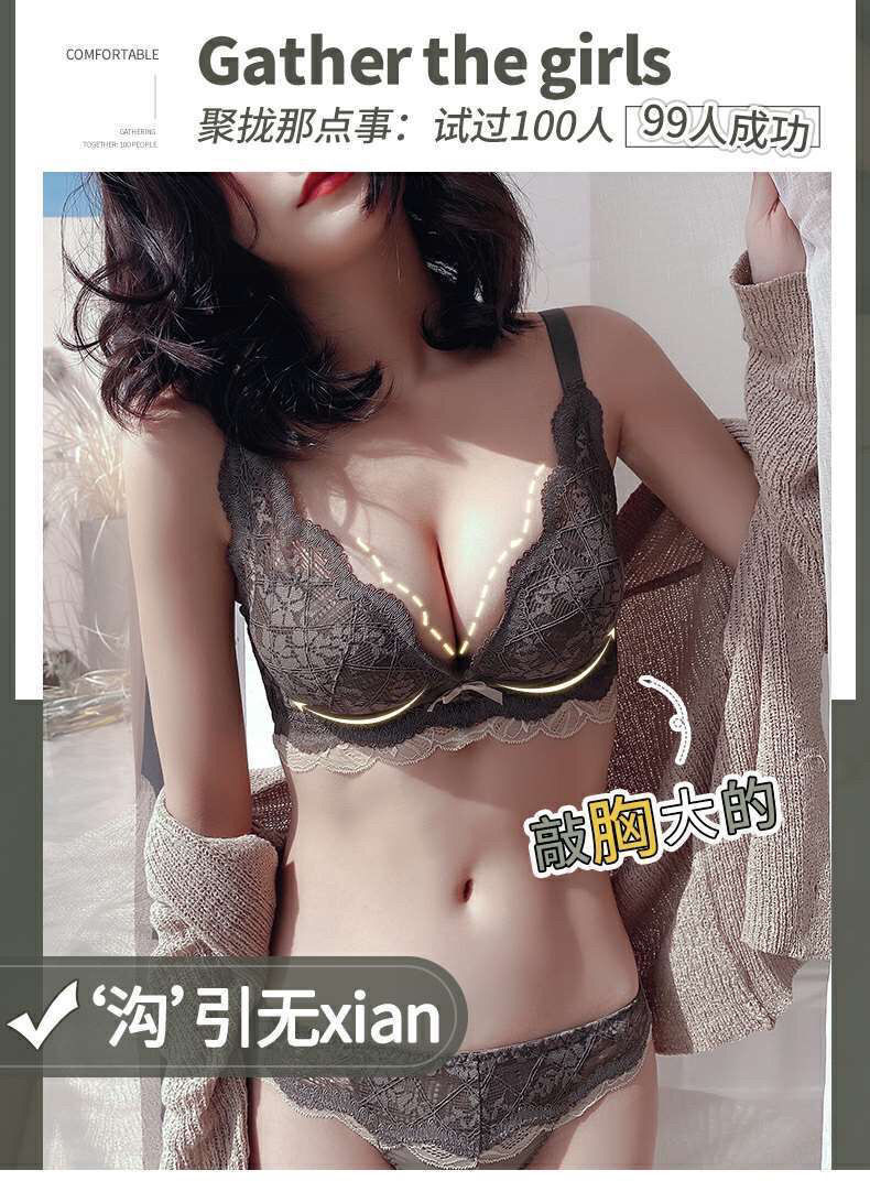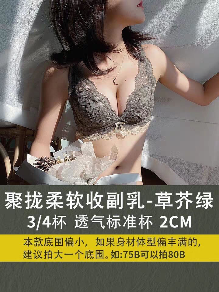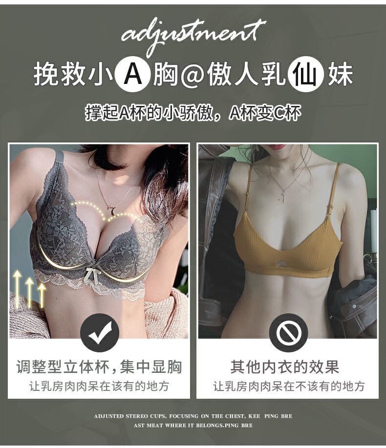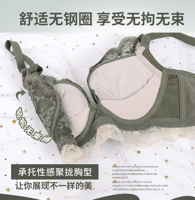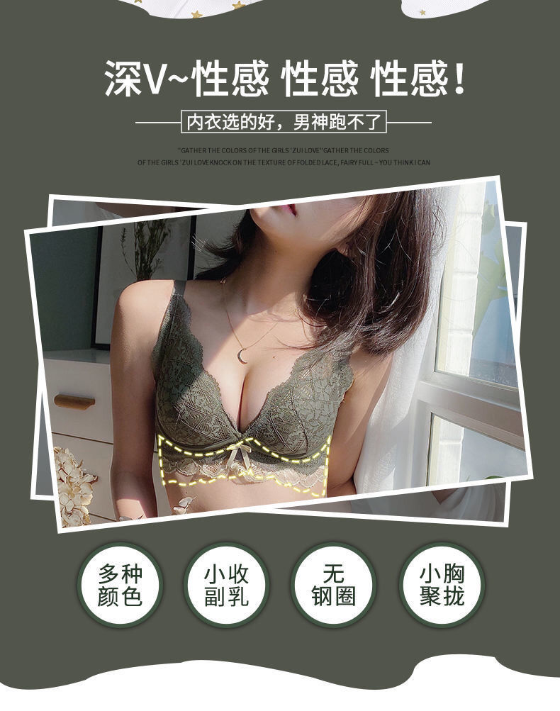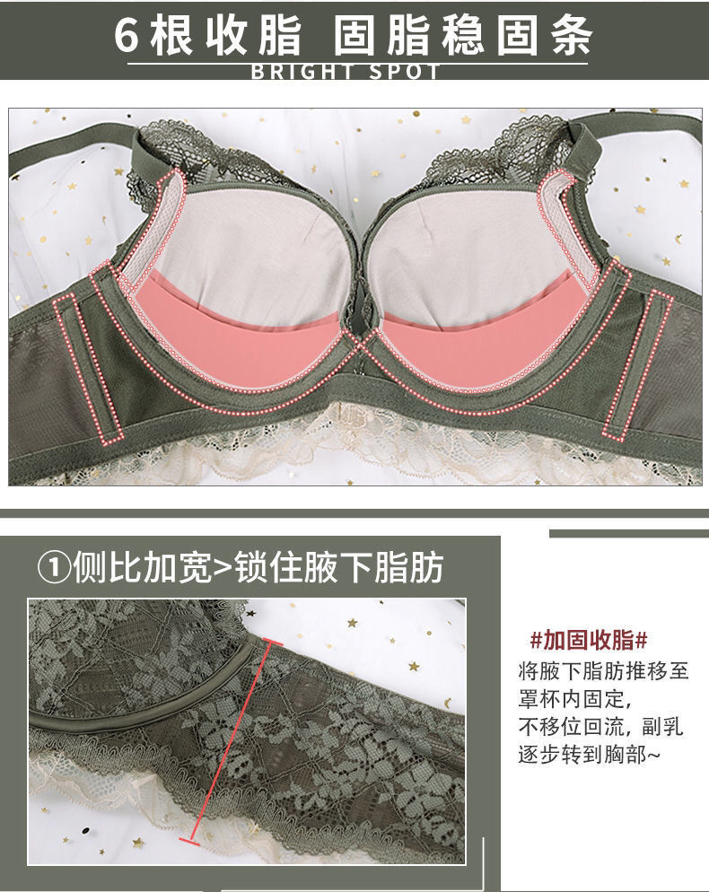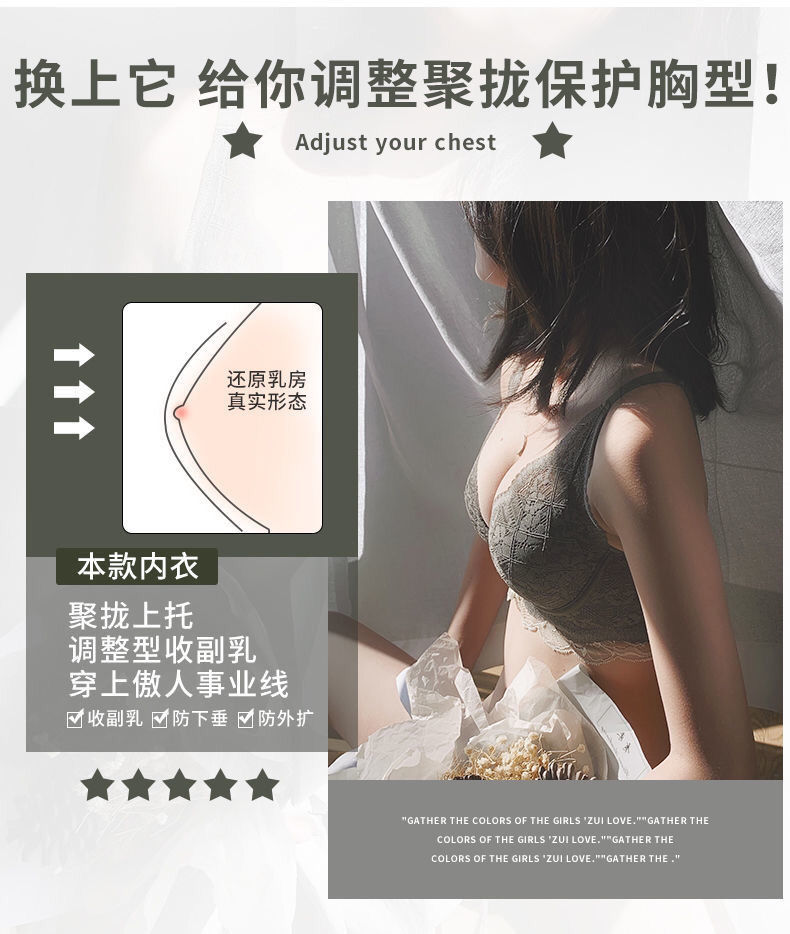 日系小胸聚拢全蕾丝无钢圈文胸防下垂收副乳调整聚拢内衣单件套装