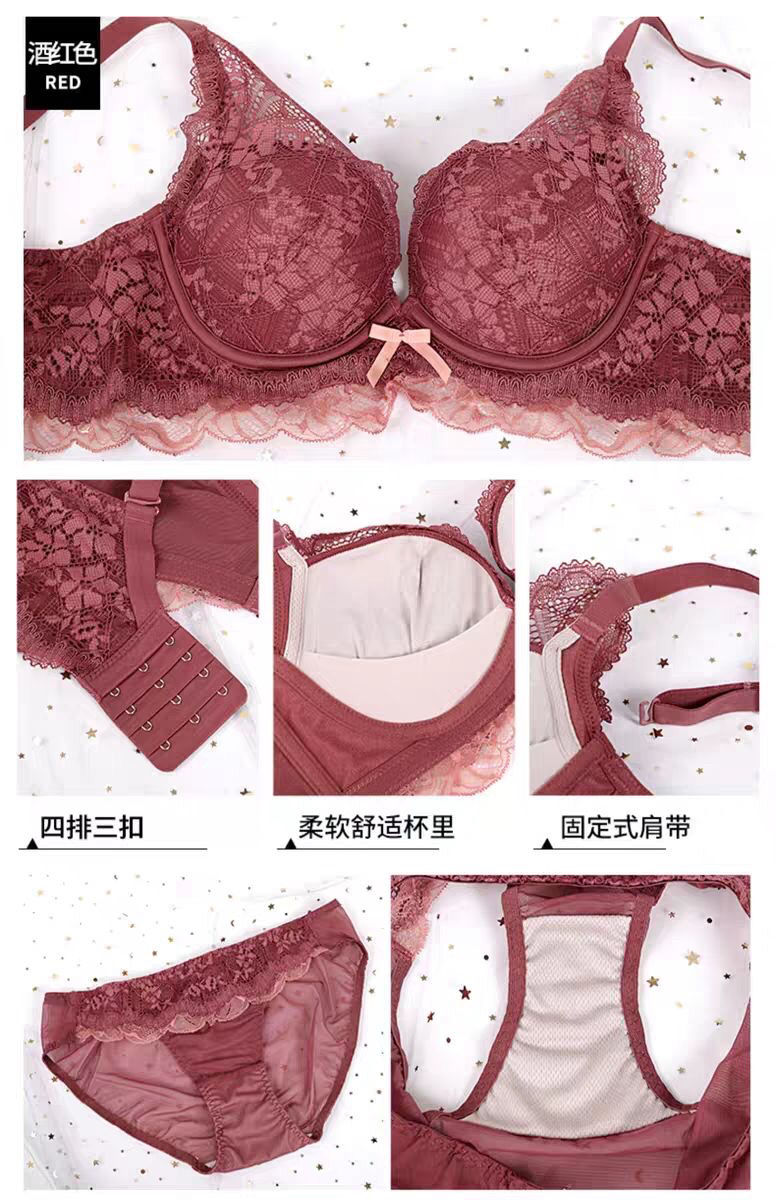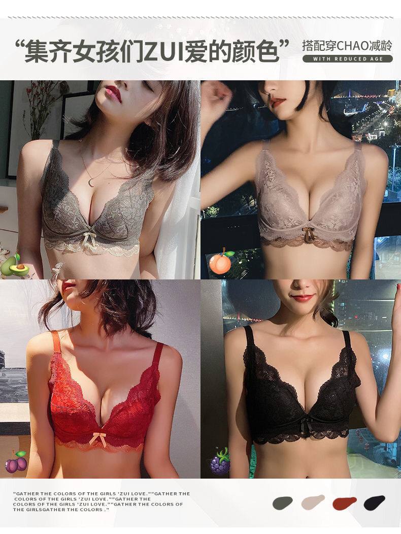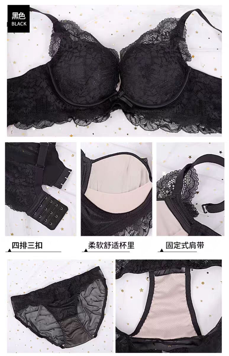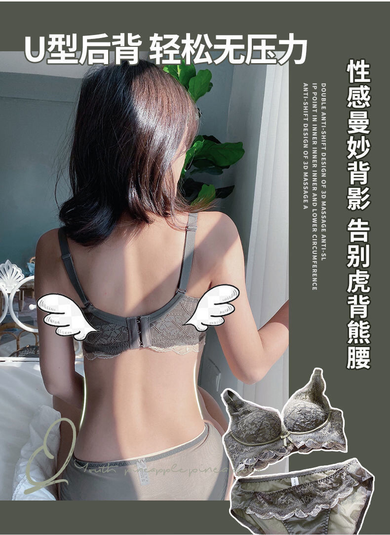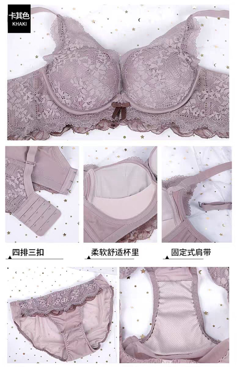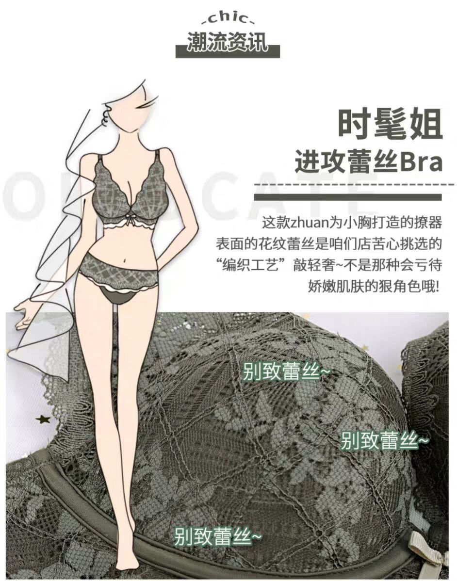 日系小胸聚拢全蕾丝无钢圈文胸防下垂收副乳调整聚拢内衣单件套装