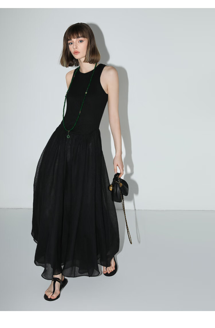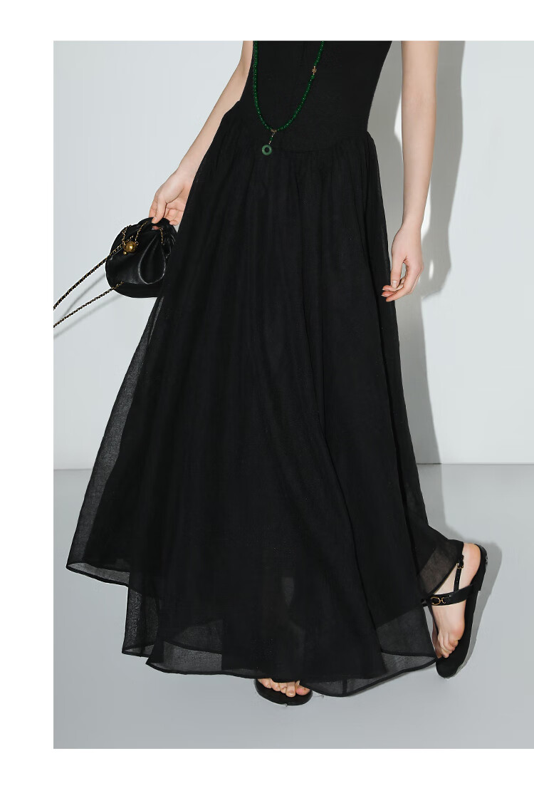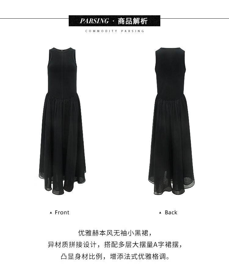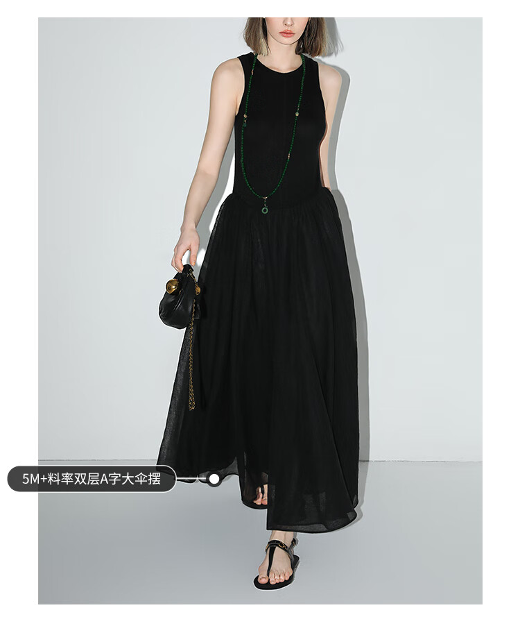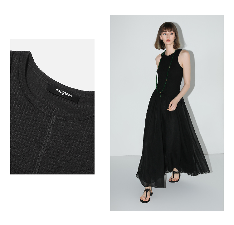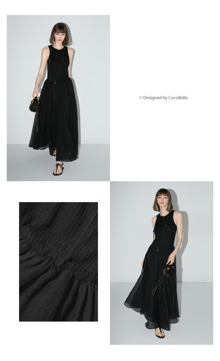 【秒杀】COCOBELLA赫本风简约针织背心式连衣裙多层大摆小黑裙FR0026