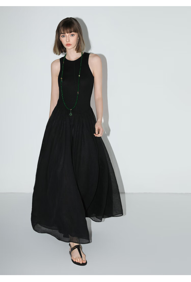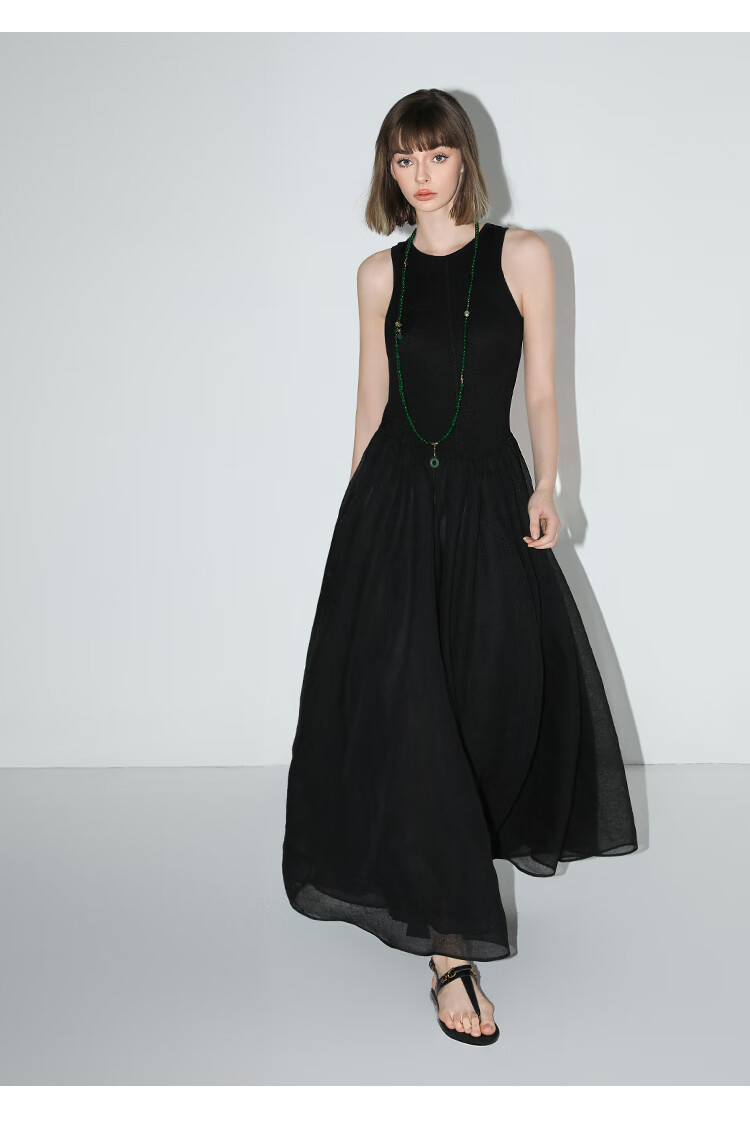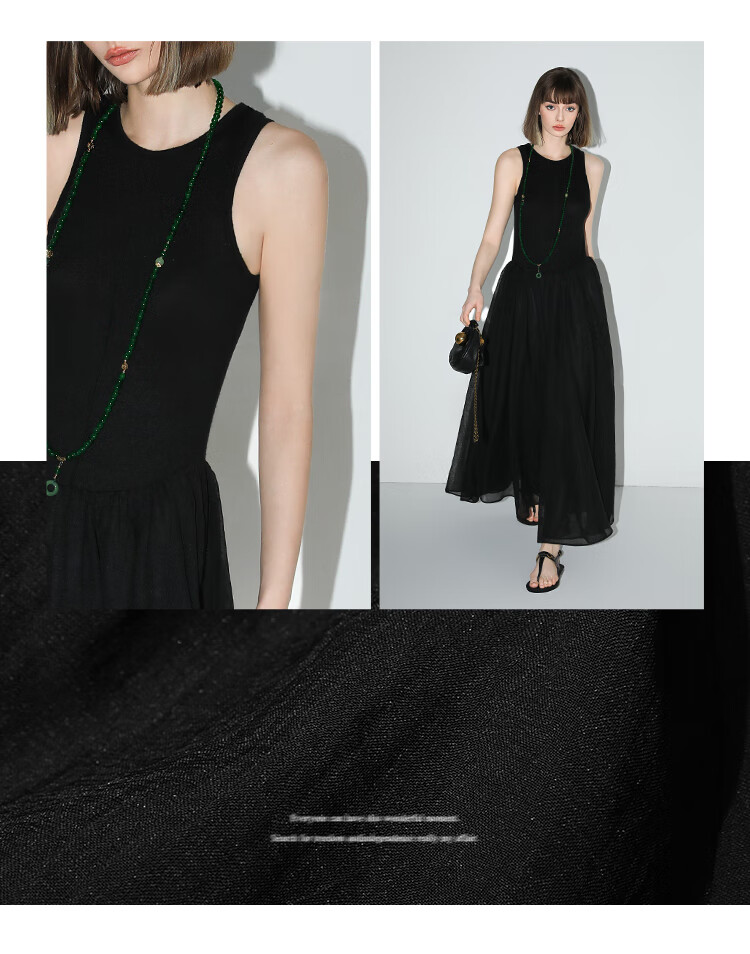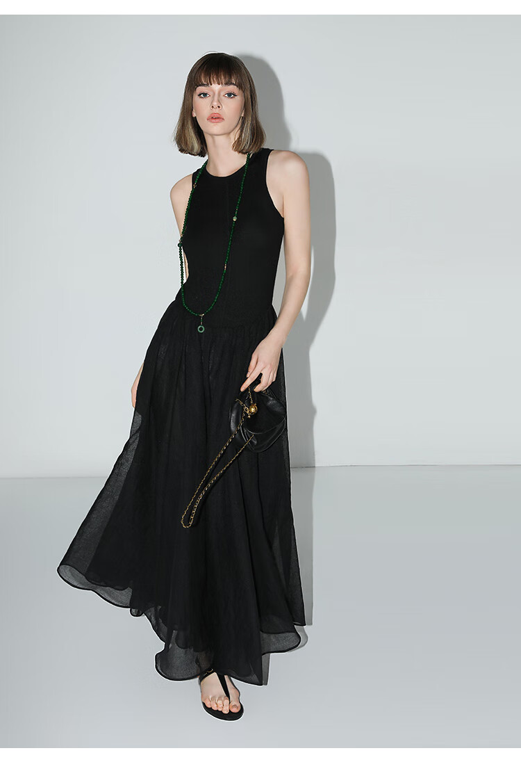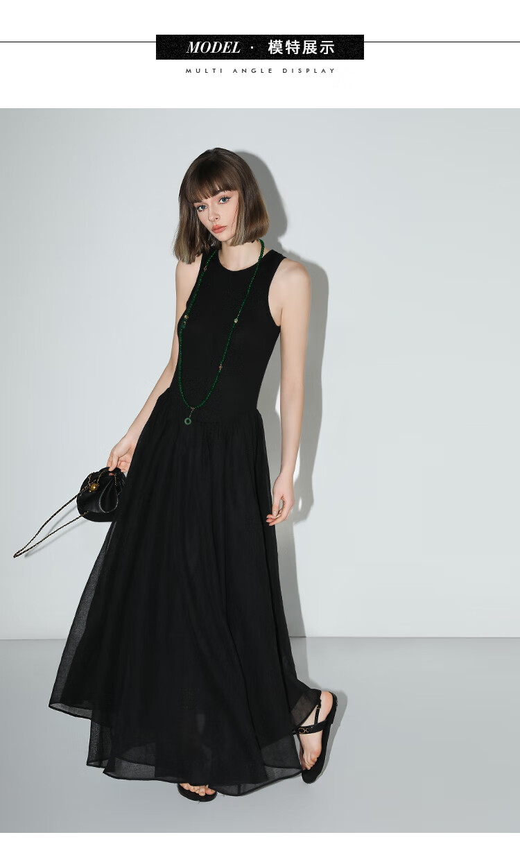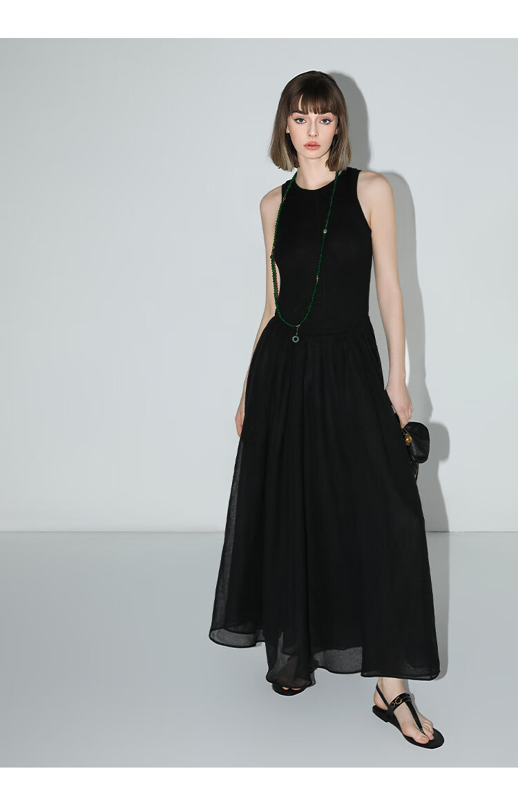 【秒杀】COCOBELLA赫本风简约针织背心式连衣裙多层大摆小黑裙FR0026