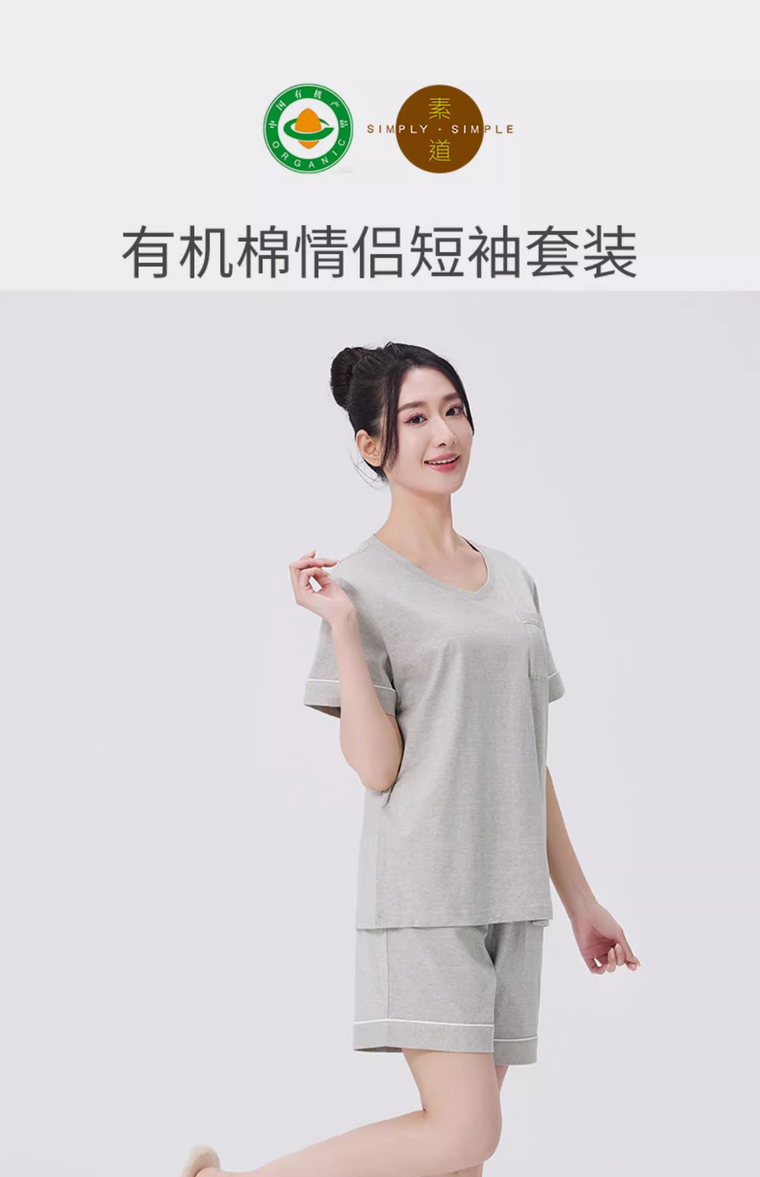 素道有机彩棉情侣夏季短袖套装 纯棉男女居家服【京东快递送货上门】