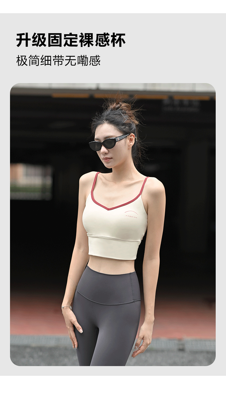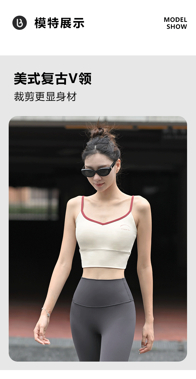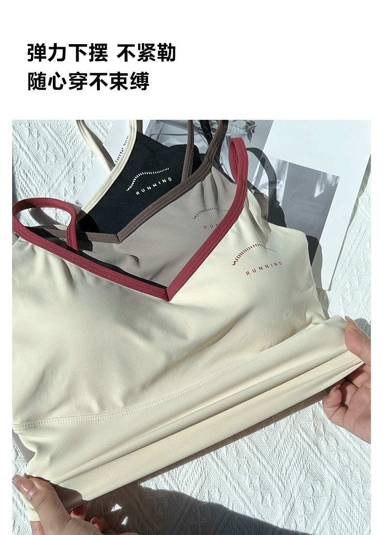 beemen一体杯运动背心 美式V型领口 显脸小 吊带瑜伽健身背心 日常外穿 舒适不勒