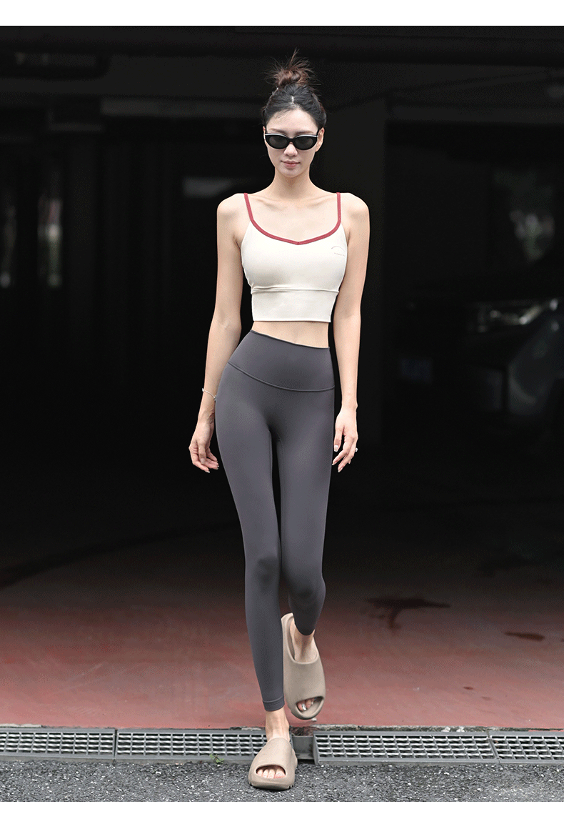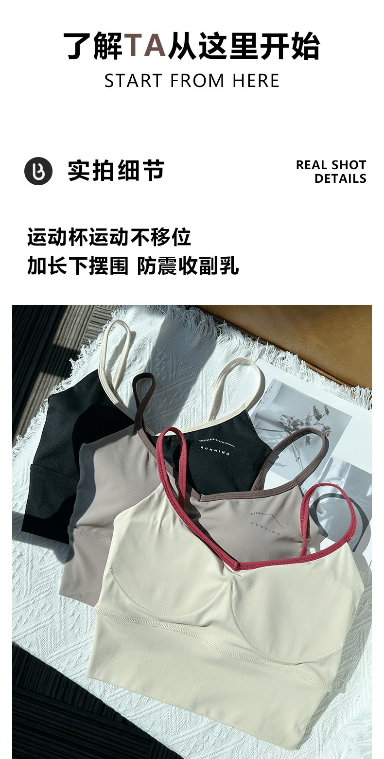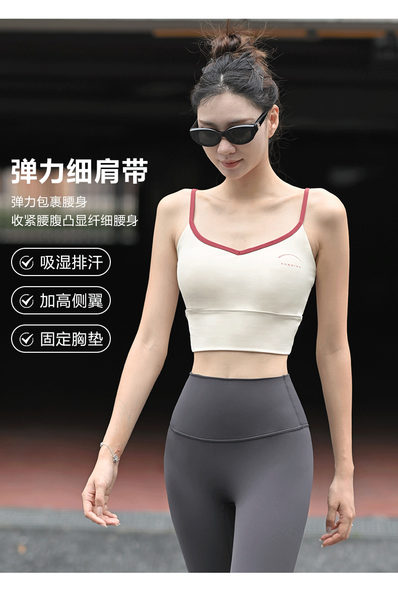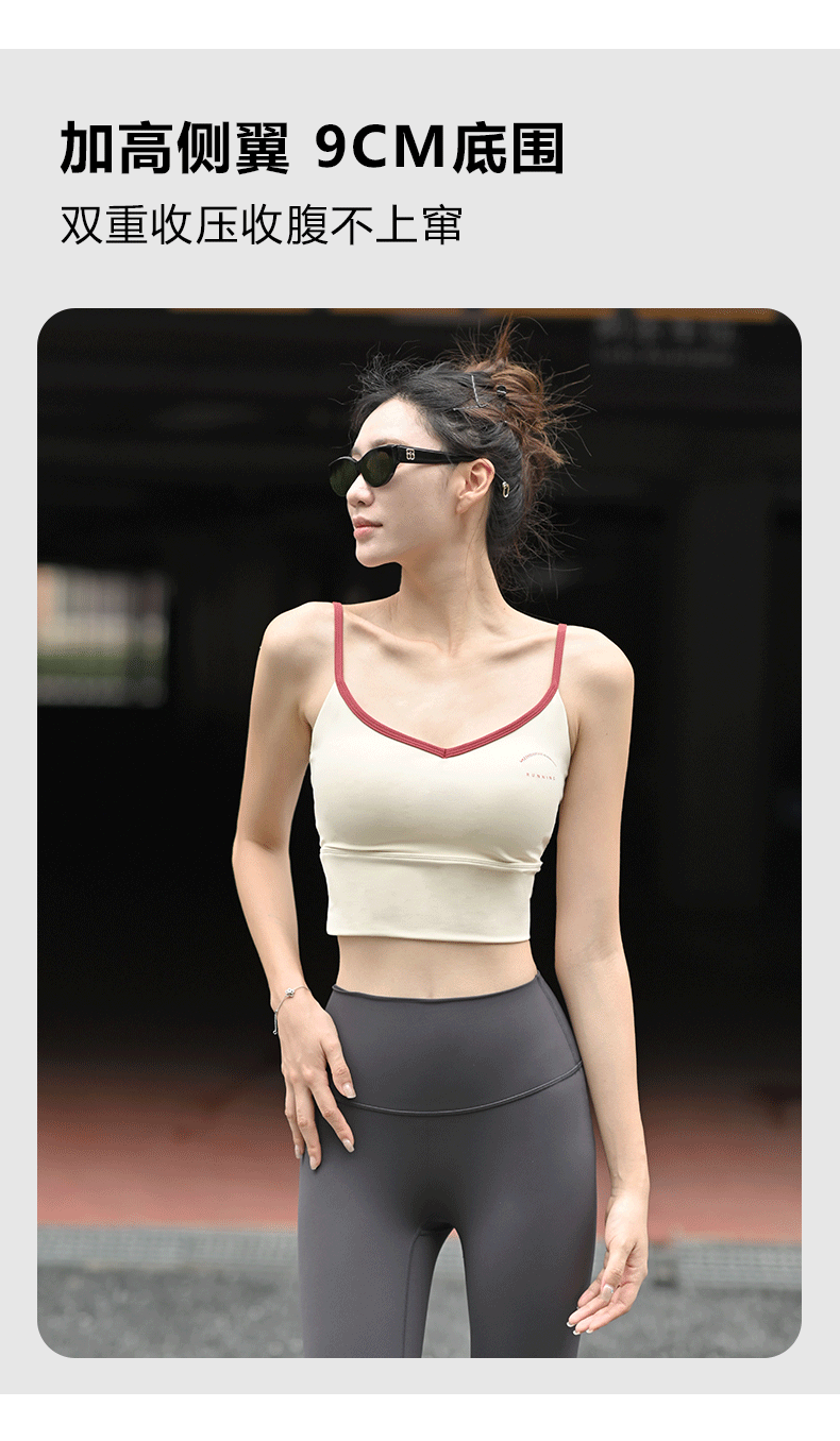 beemen一体杯运动背心 美式V型领口 显脸小 吊带瑜伽健身背心 日常外穿 舒适不勒