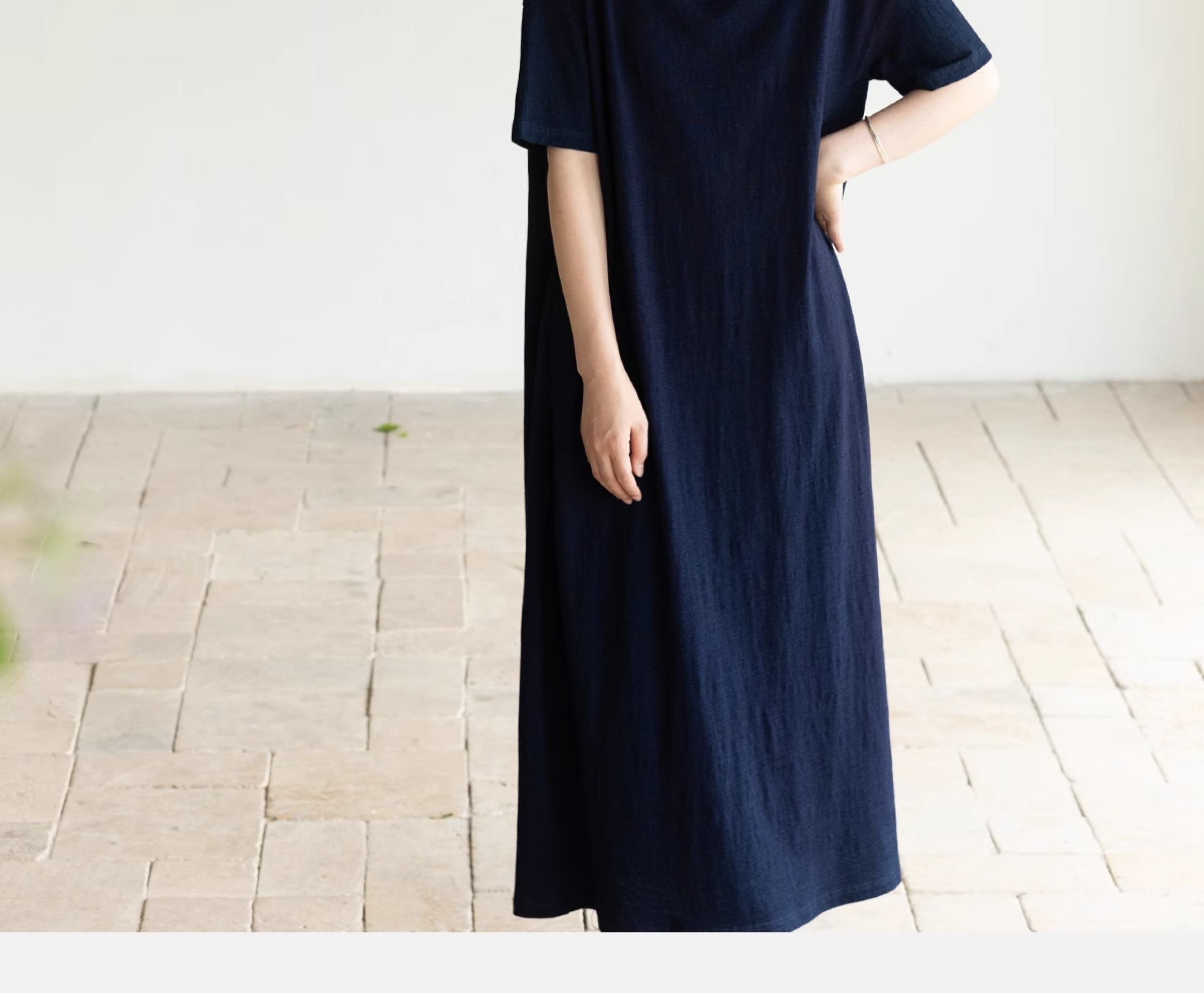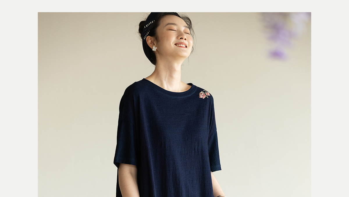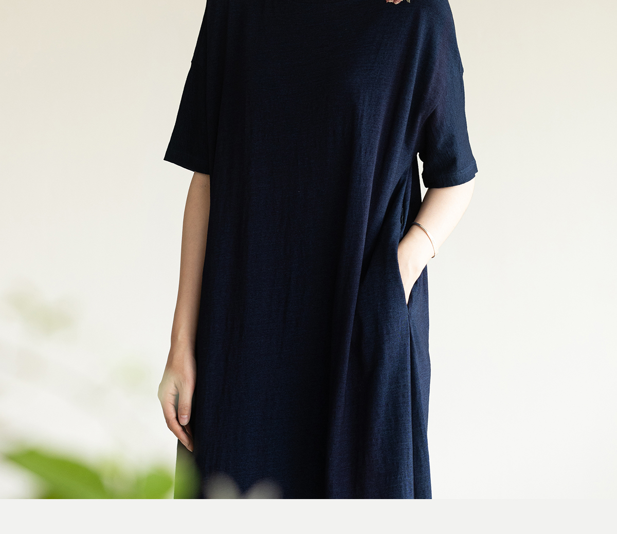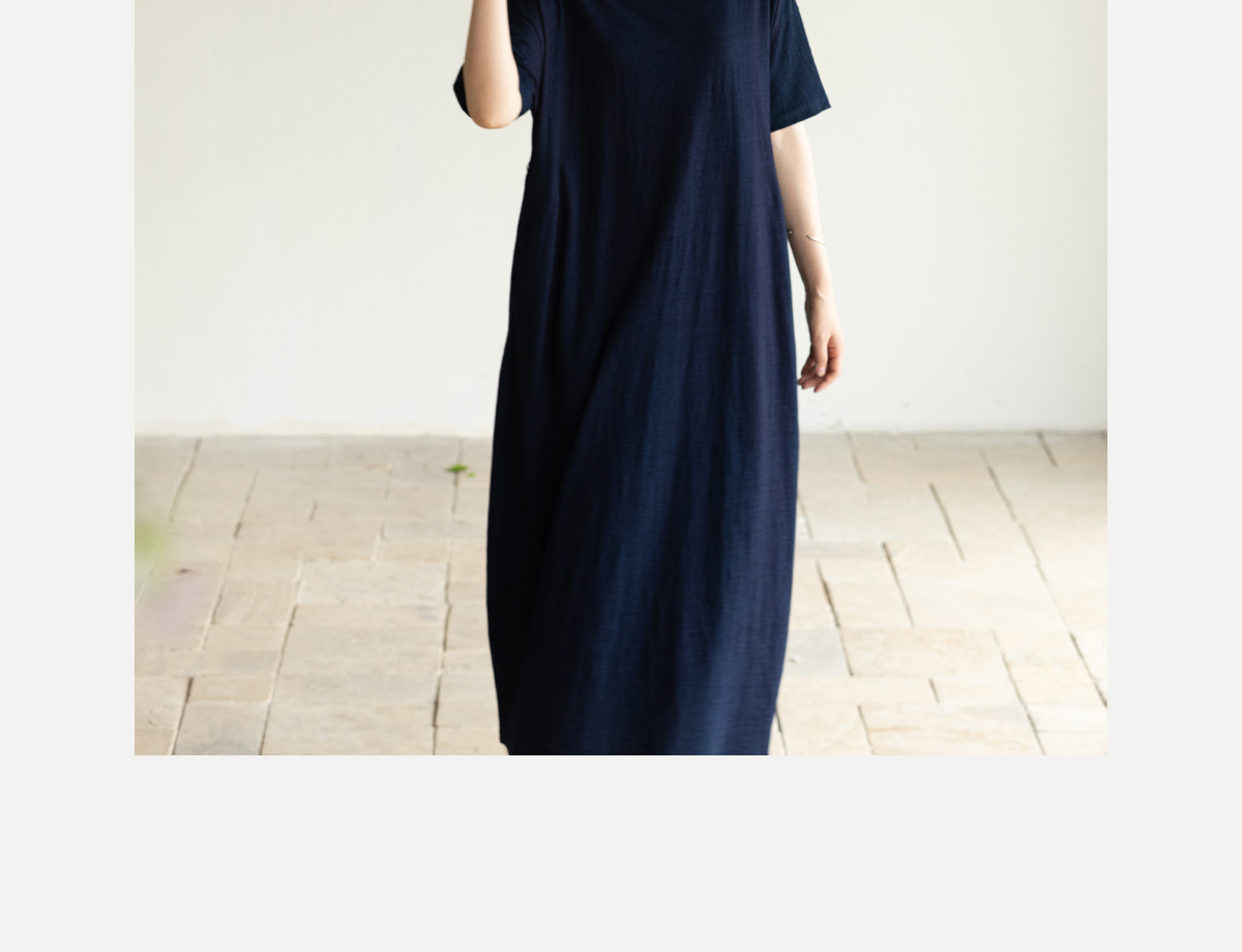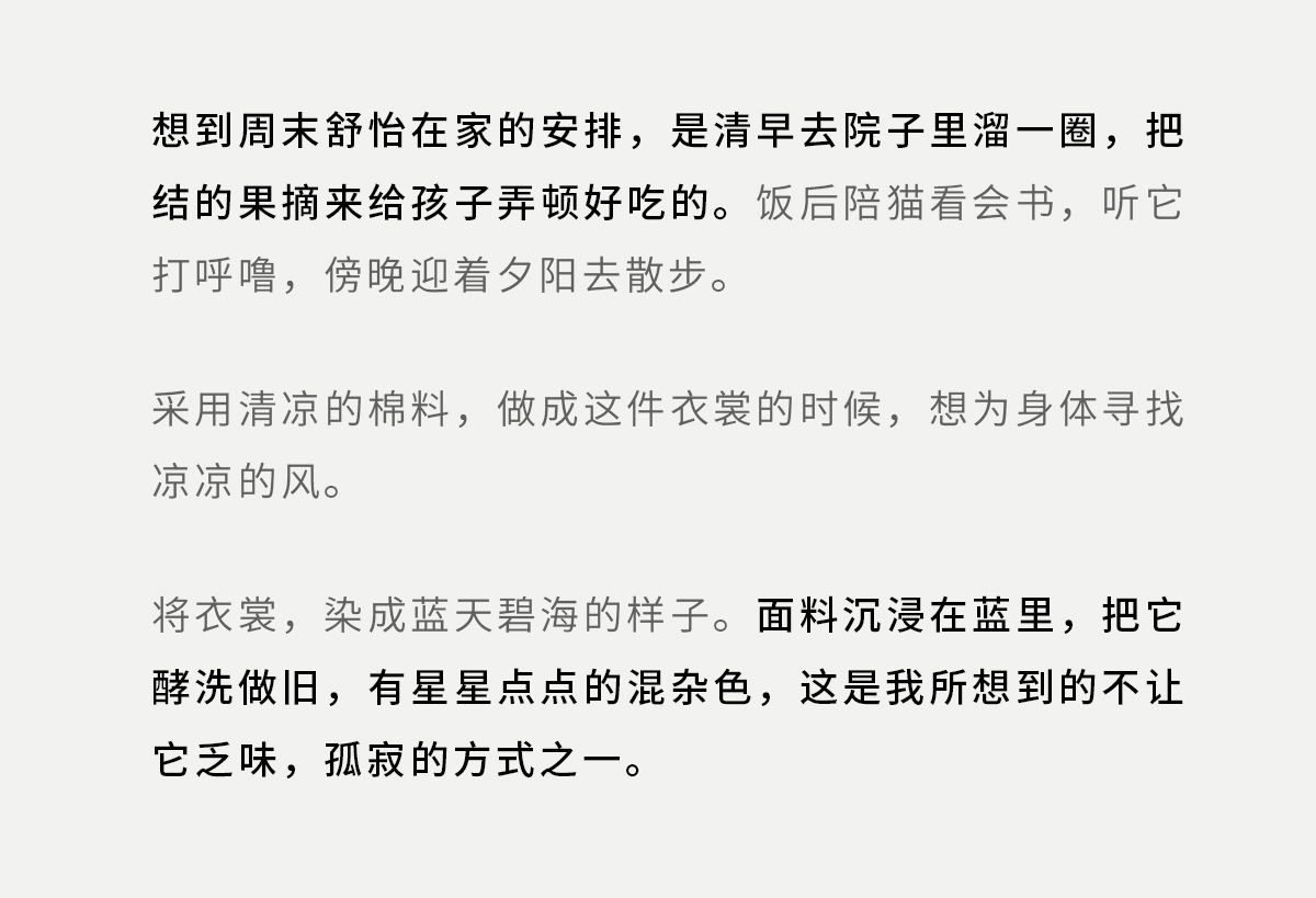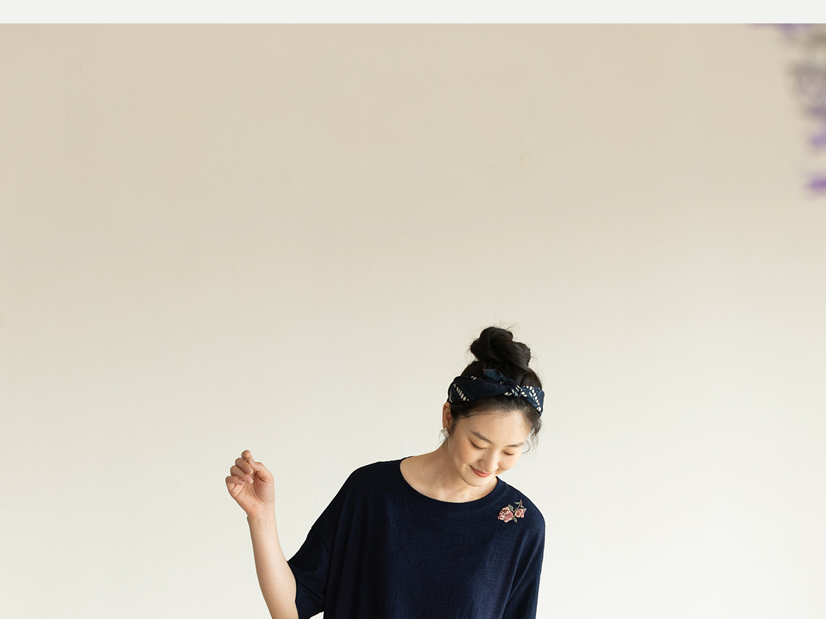 牧衣游原创 手工刺绣酵洗32支纯棉连衣裙靛蓝色随性宽松长裙 朝暮