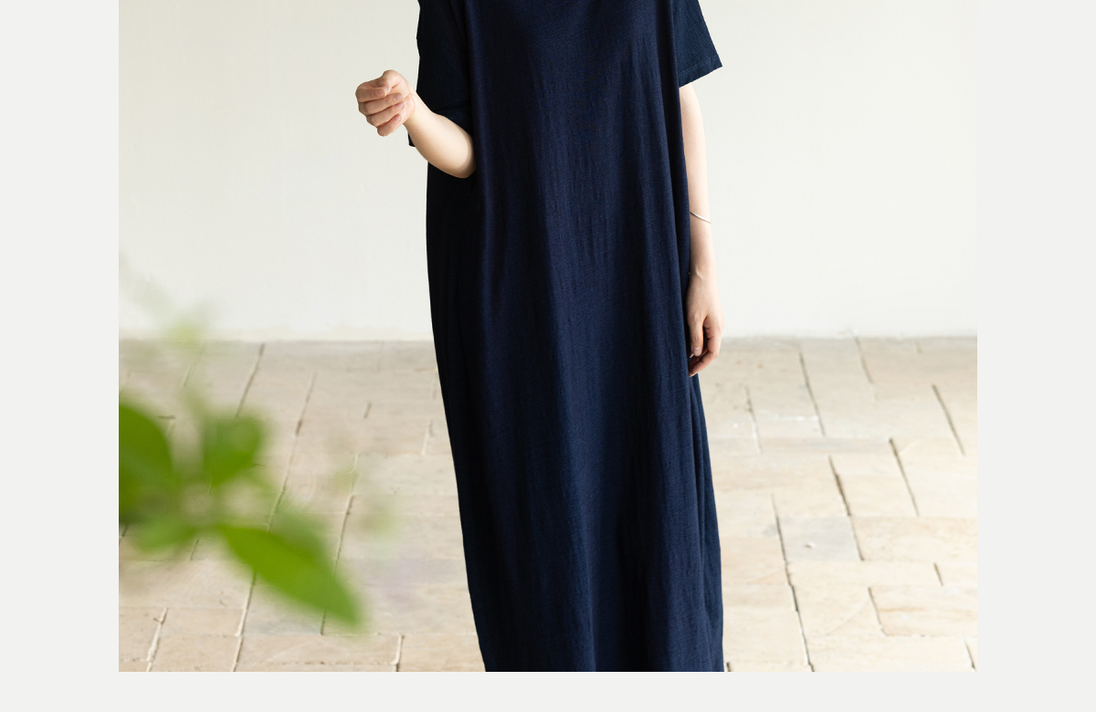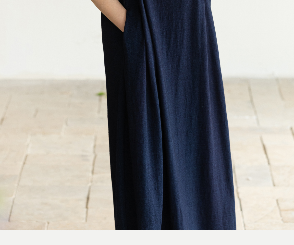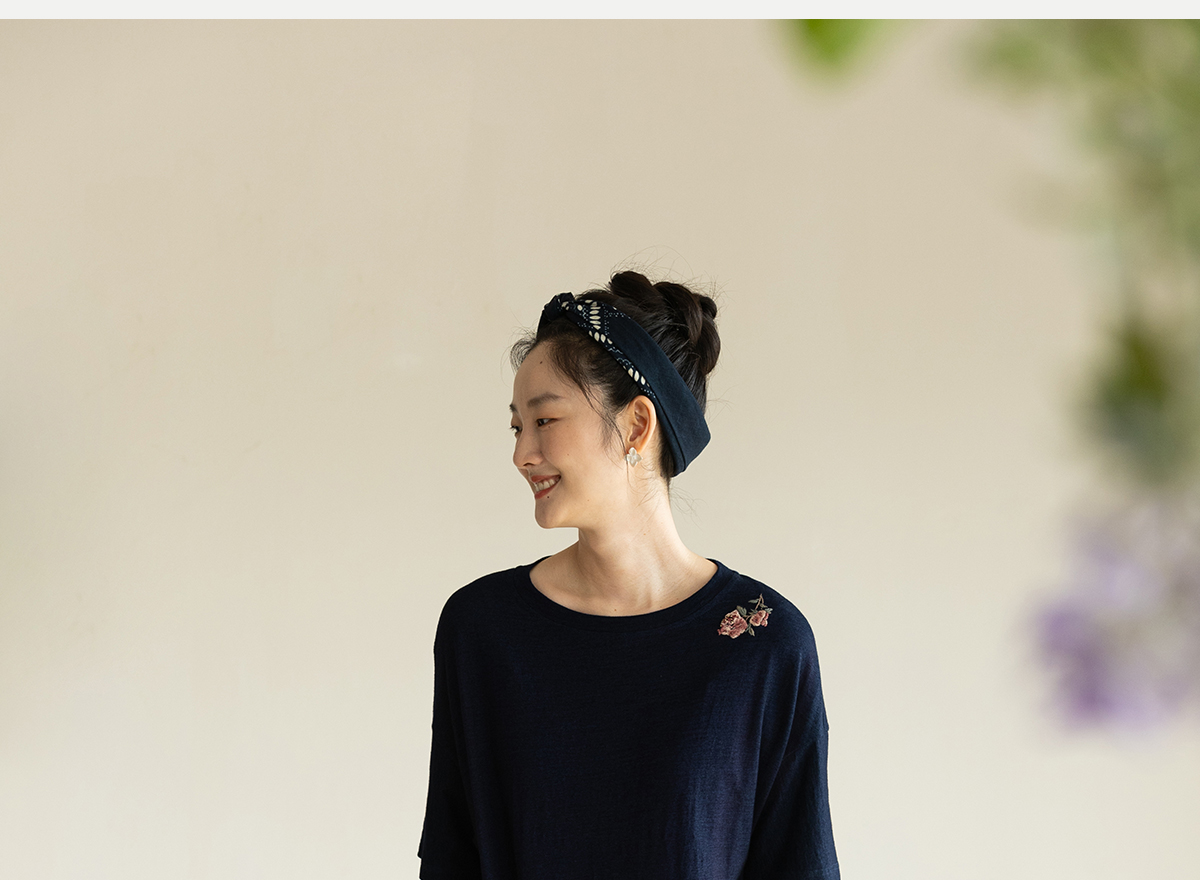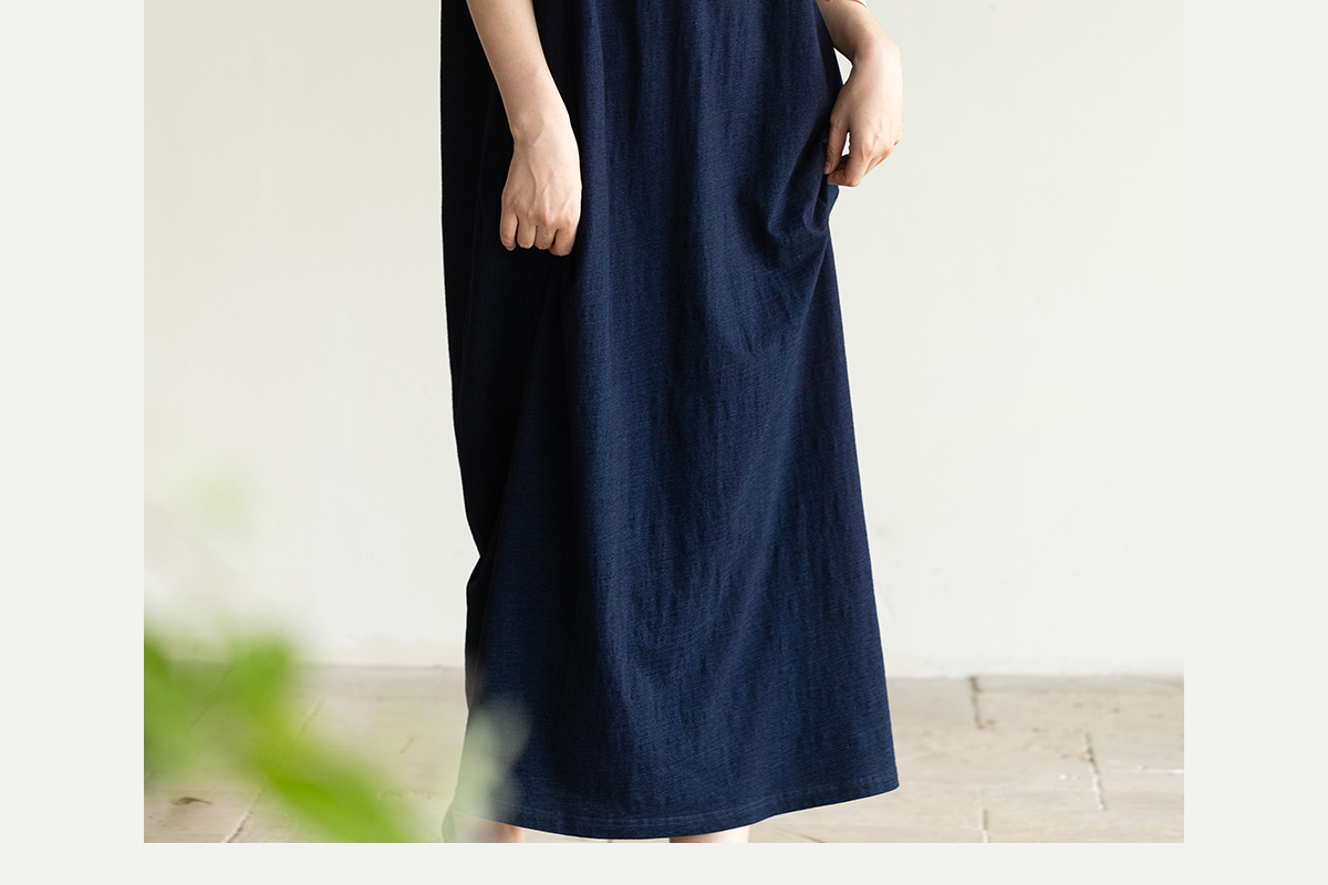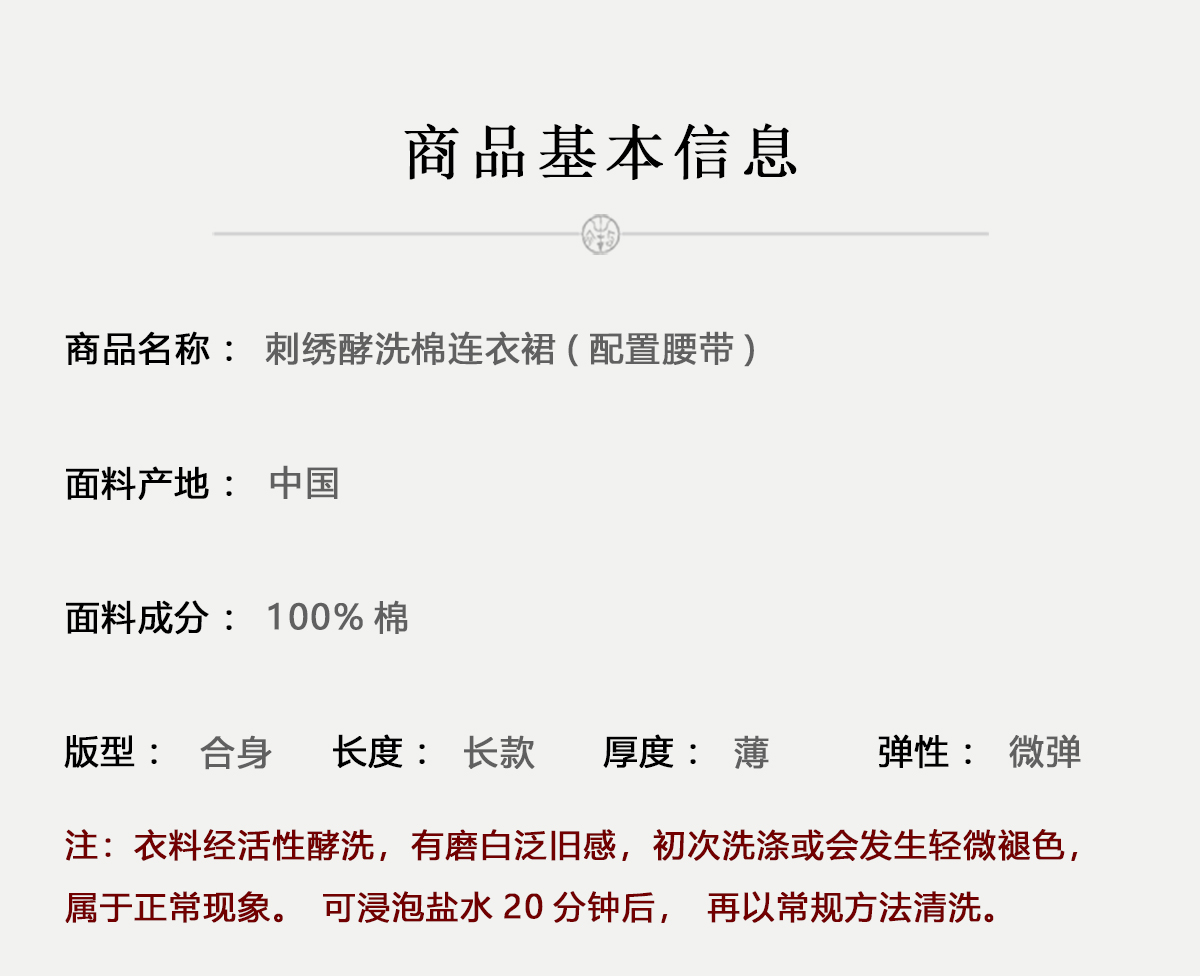 牧衣游原创 手工刺绣酵洗32支纯棉连衣裙靛蓝色随性宽松长裙 朝暮
