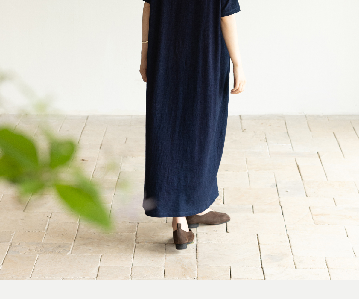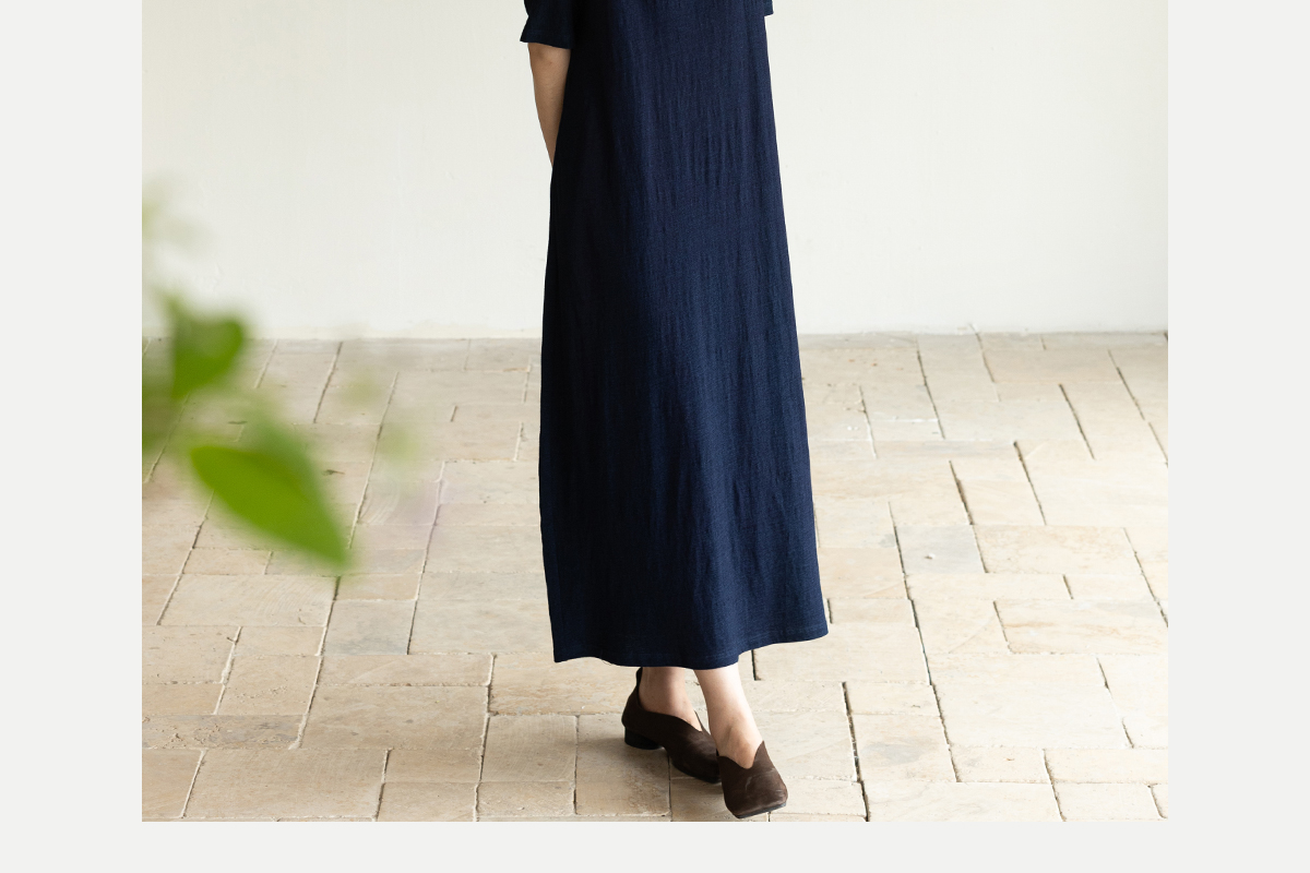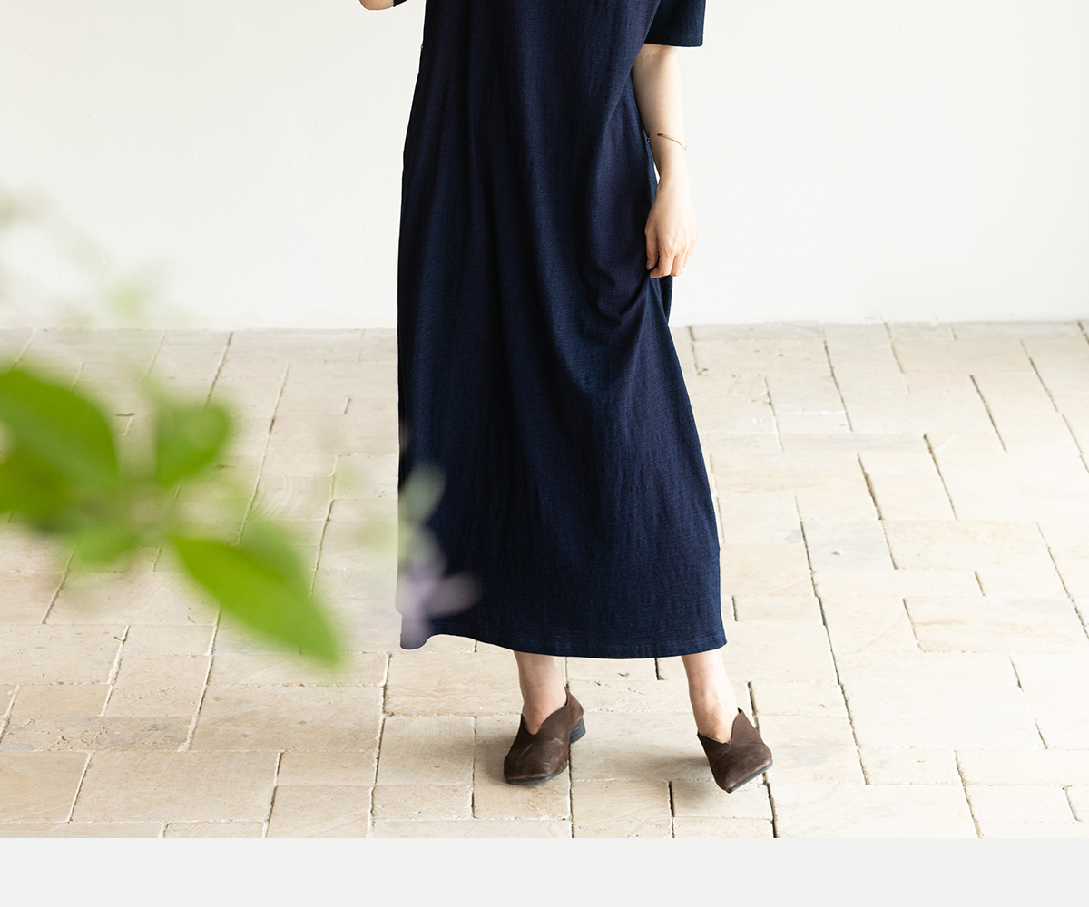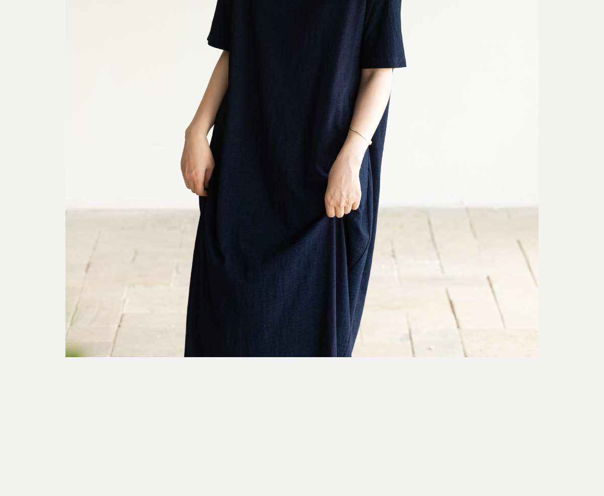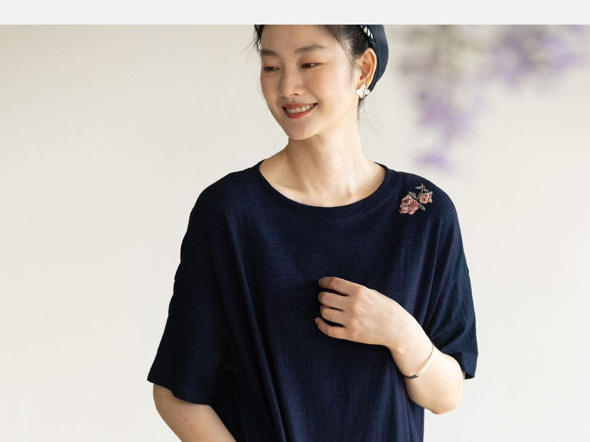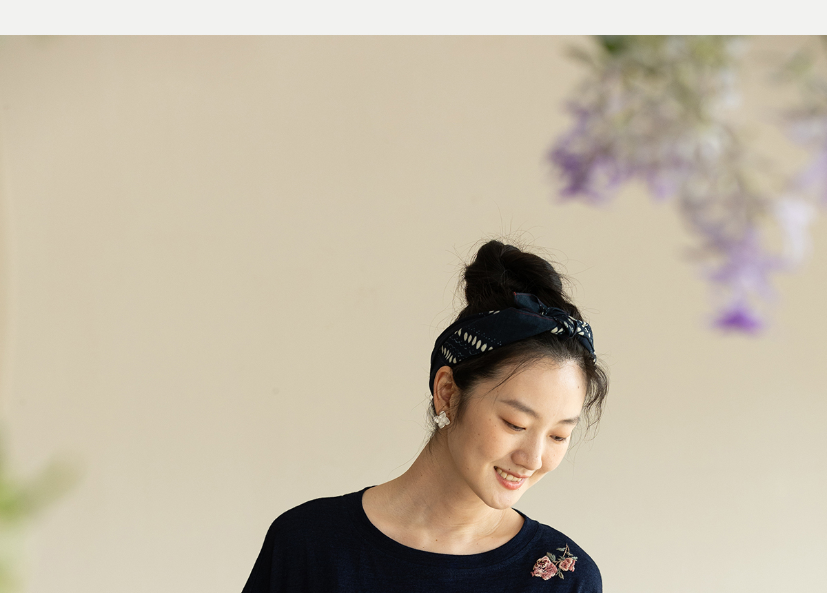 牧衣游原创 手工刺绣酵洗32支纯棉连衣裙靛蓝色随性宽松长裙 朝暮