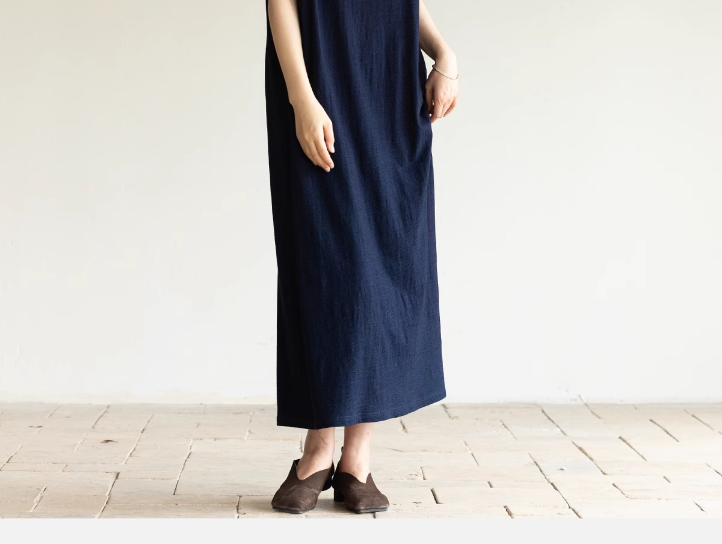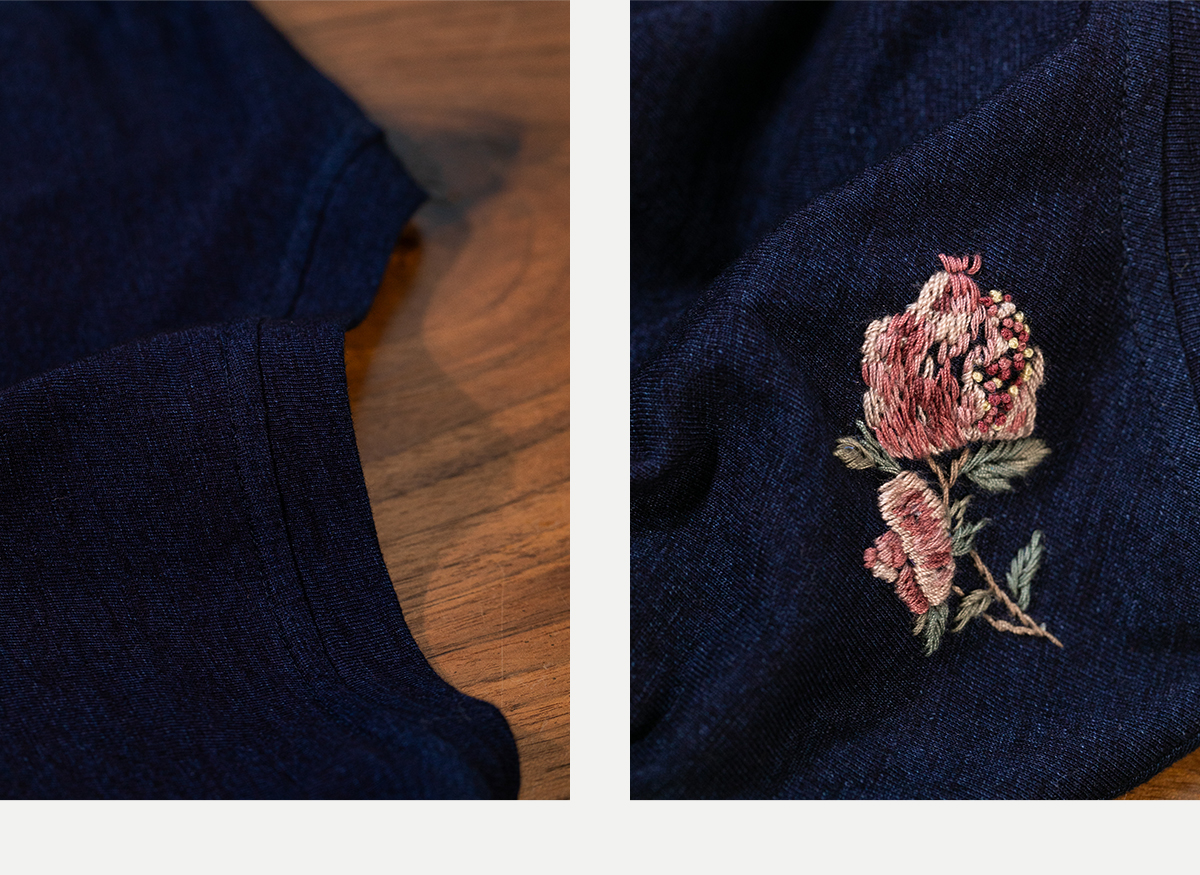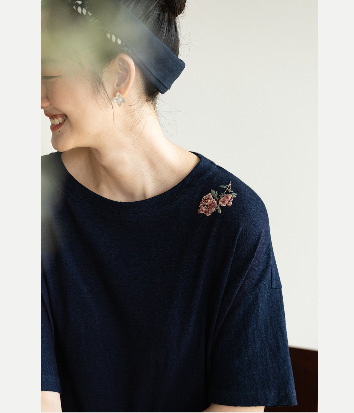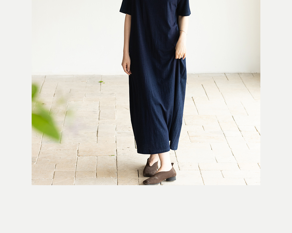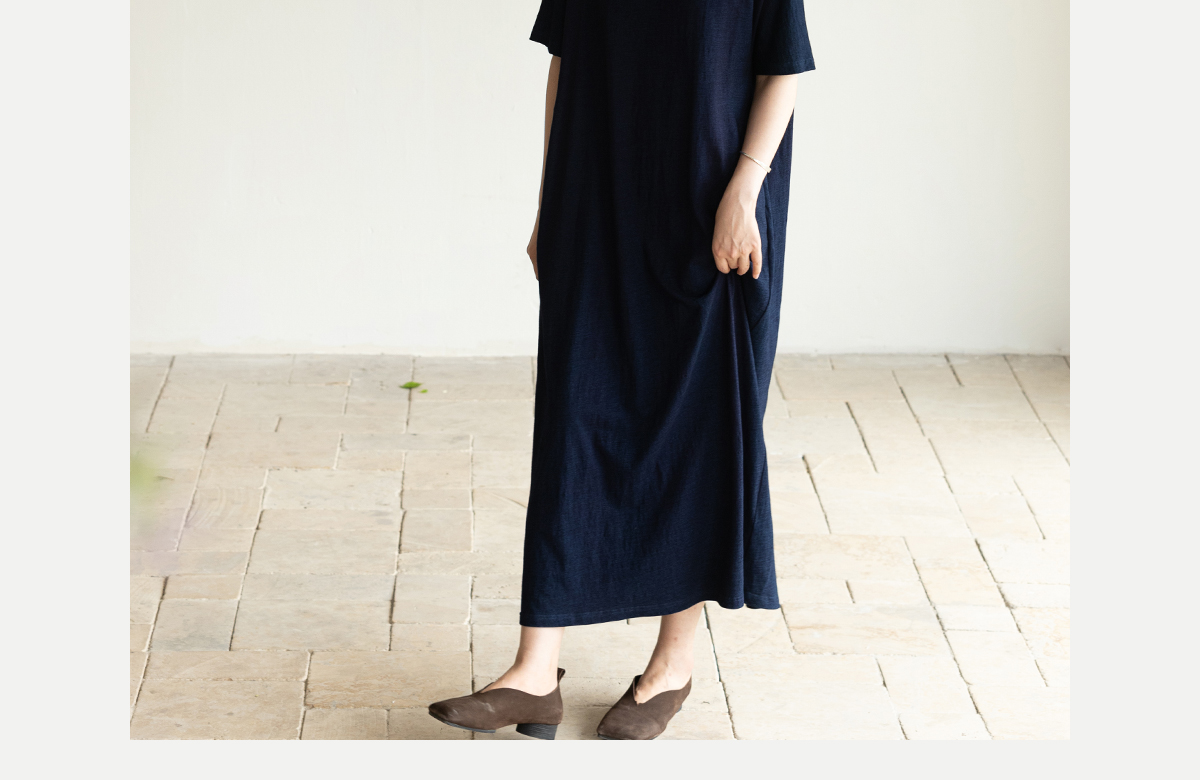 牧衣游原创 手工刺绣酵洗32支纯棉连衣裙靛蓝色随性宽松长裙 朝暮
