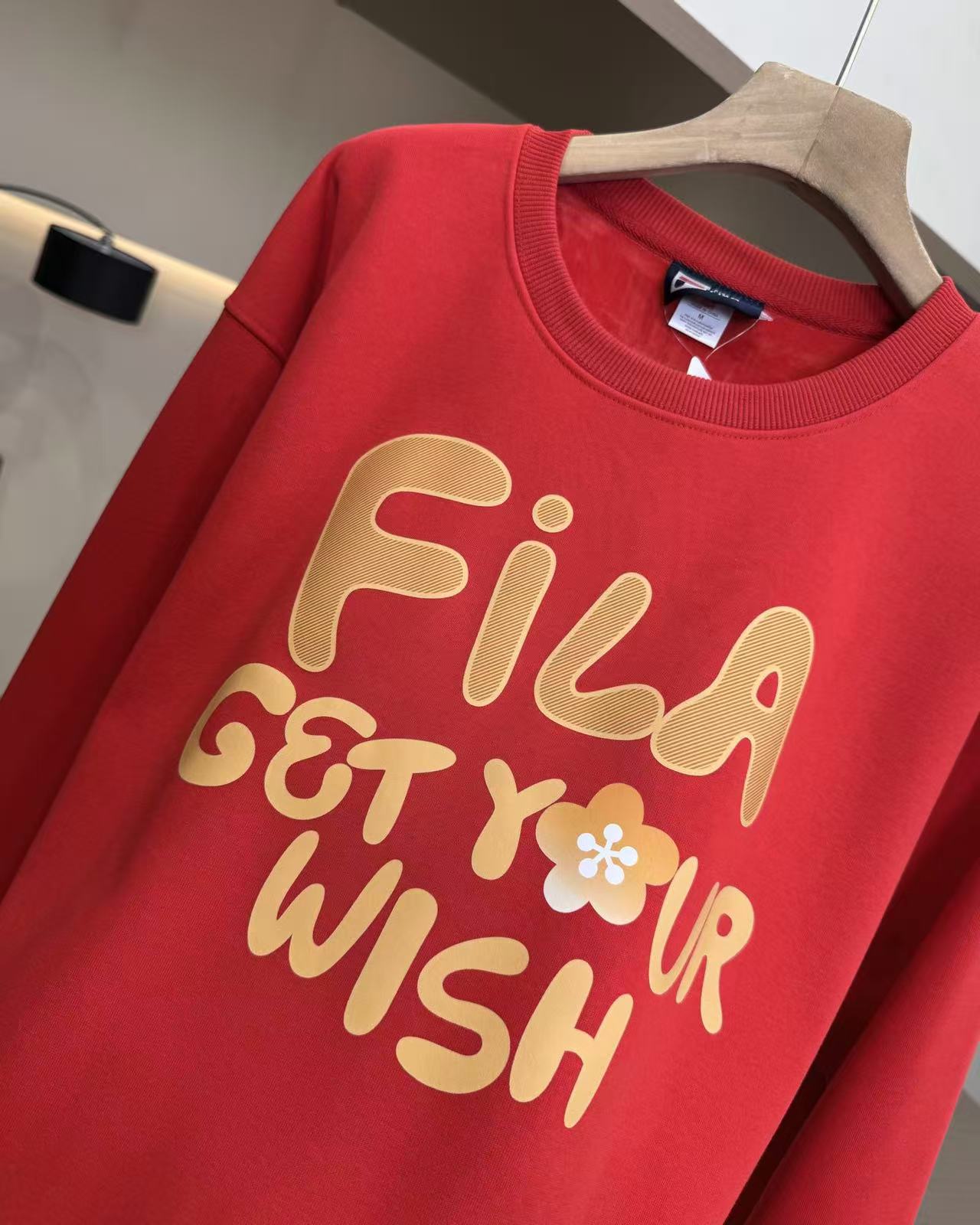 【FILA斐乐新年马上来财圆领加绒卫衣】这款FILA斐乐新年加绒卫衣,从面料、剪裁到设计细节,均体现出品牌级品质与年轻化审美。银狐绒内里带来柔软保暖的穿着体验,-YOEO
