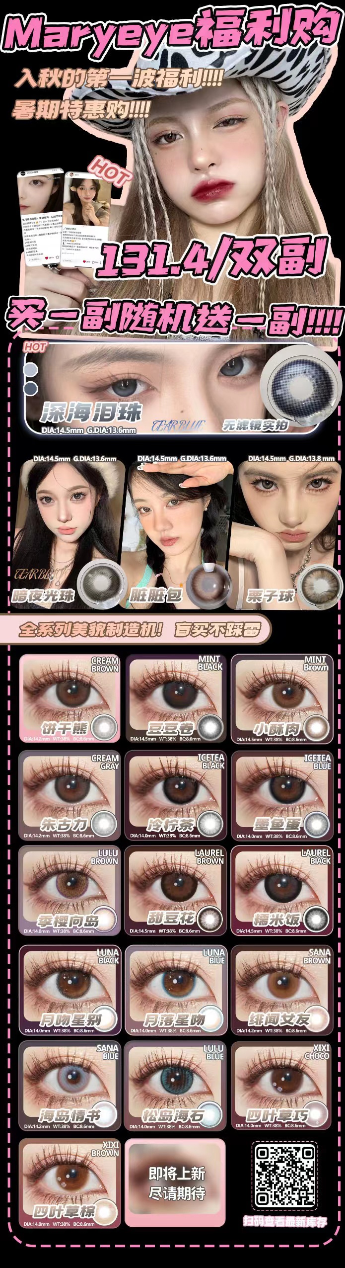 【常规-年抛活动】Maryeye-14.0mm-14.2mm-14.5mm【年抛 度数0-800度 无525/575】长期活动