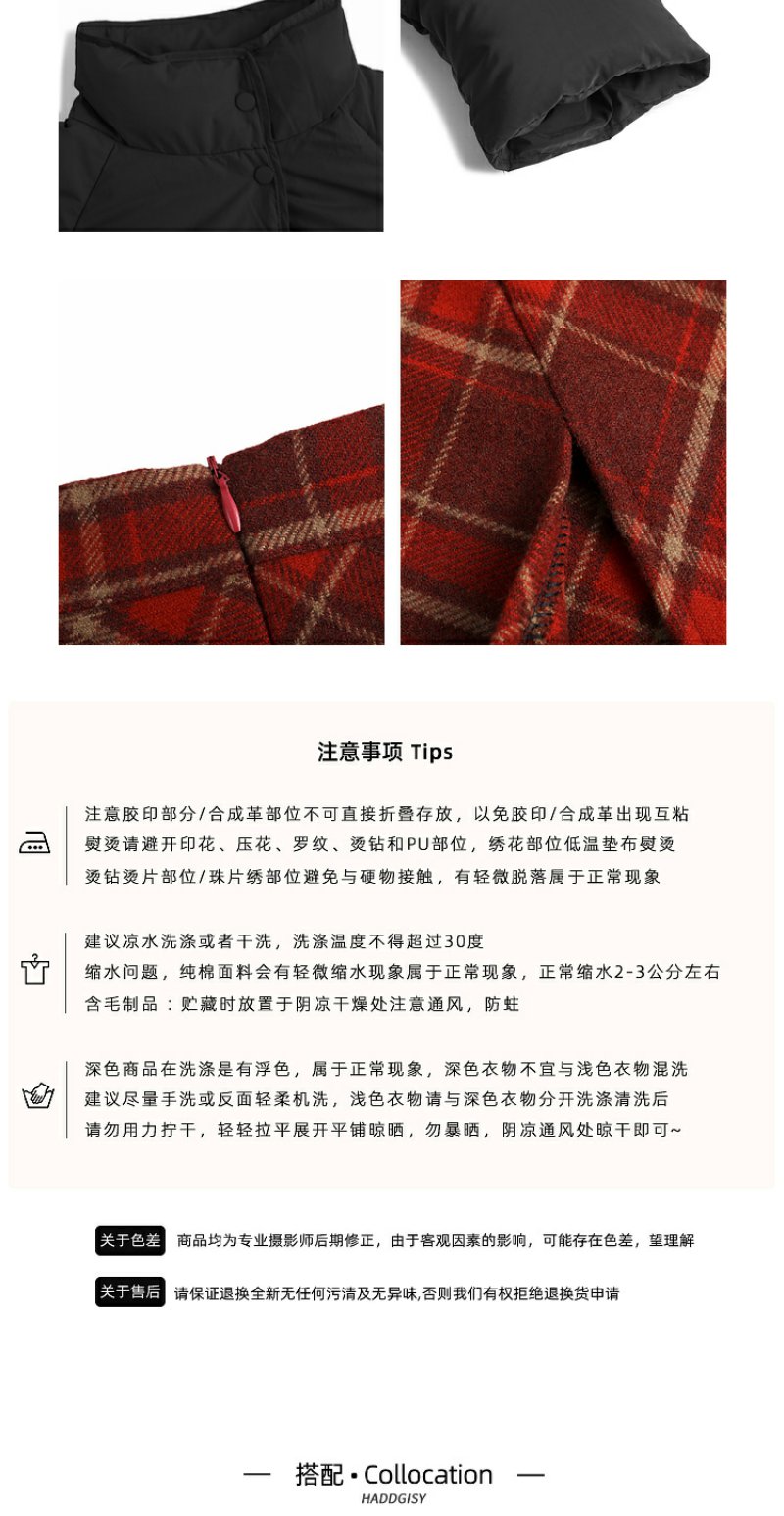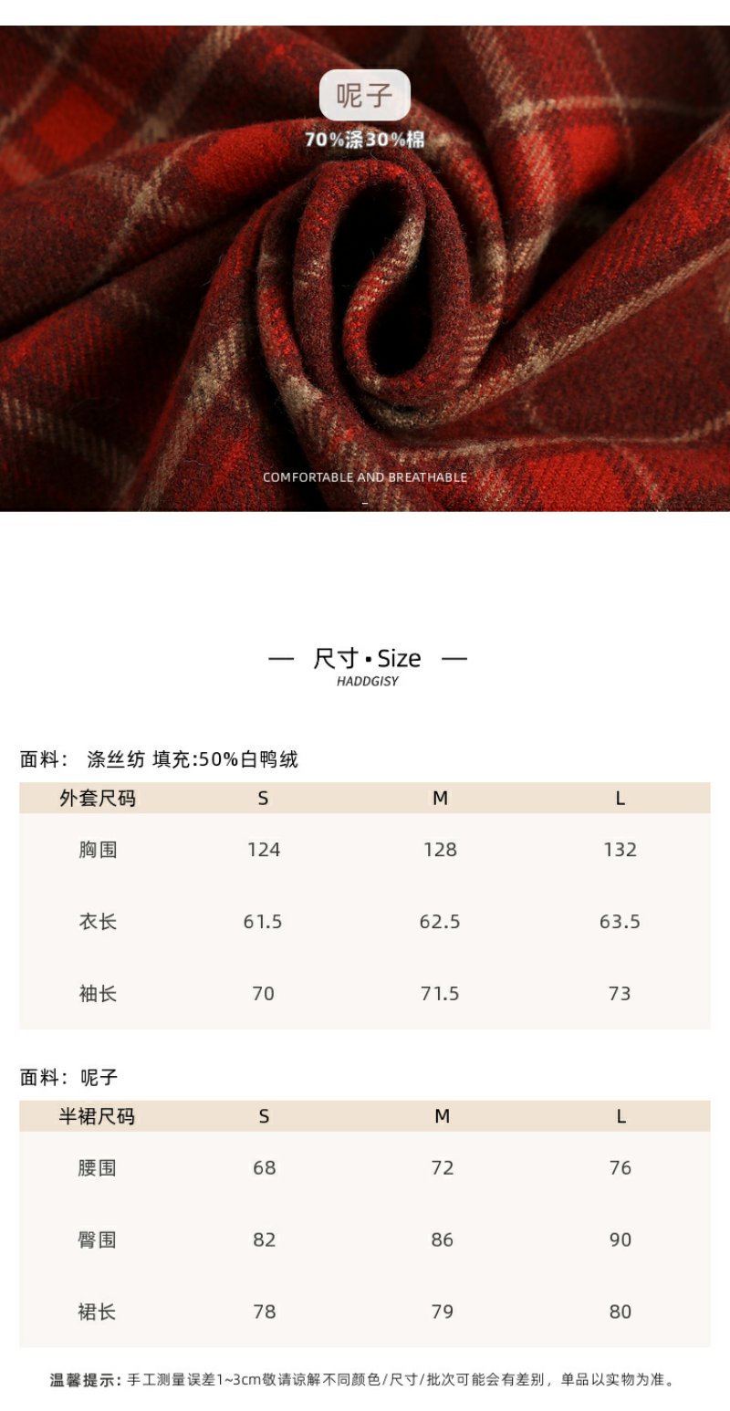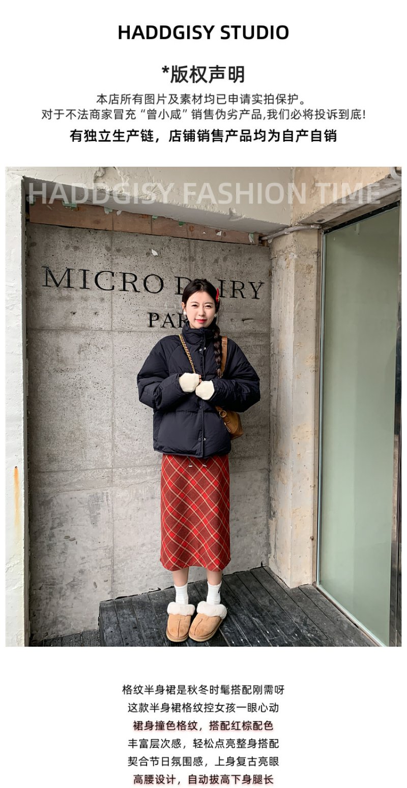 <曾小咸推荐>【微甜慕斯】黑色棉服+红色格子裙