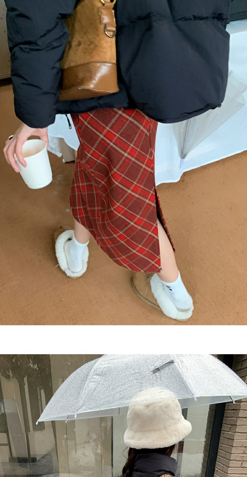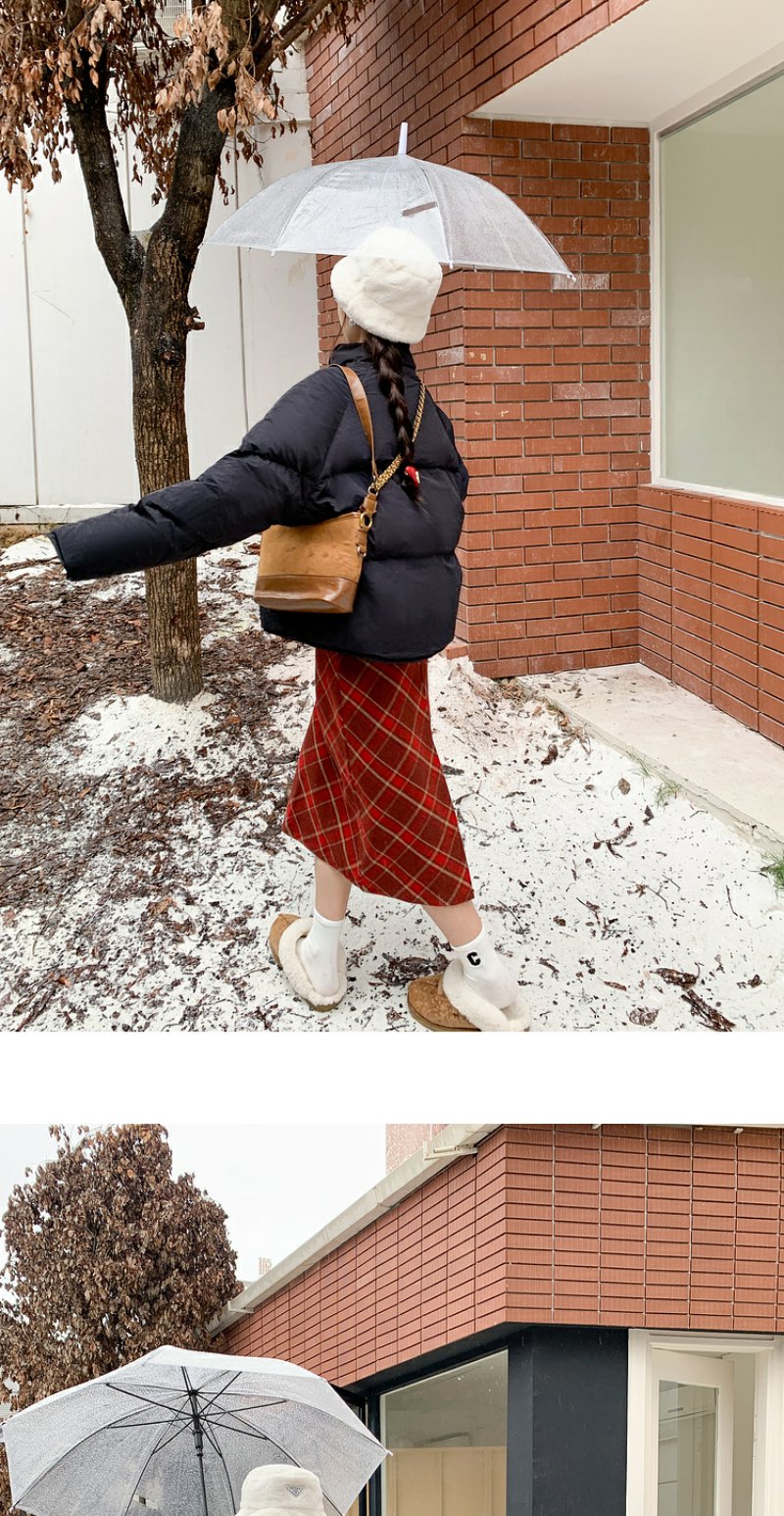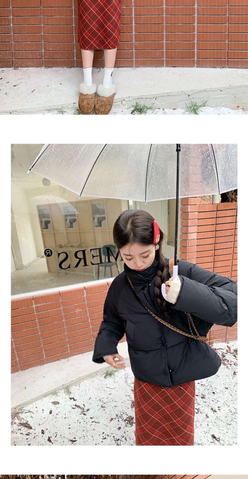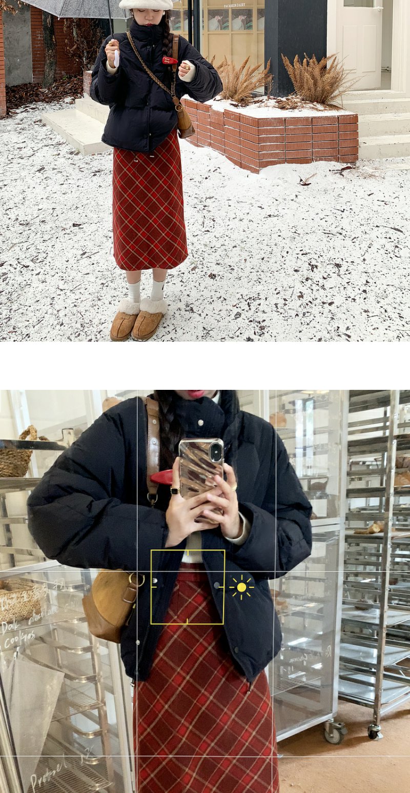 <曾小咸推荐>【微甜慕斯】黑色棉服+红色格子裙