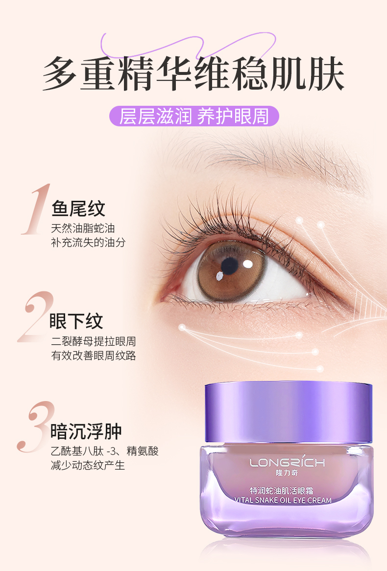 隆力奇特润蛇油肌活眼霜精华补水保湿抗皱提拉紧致淡化眼部细纹
