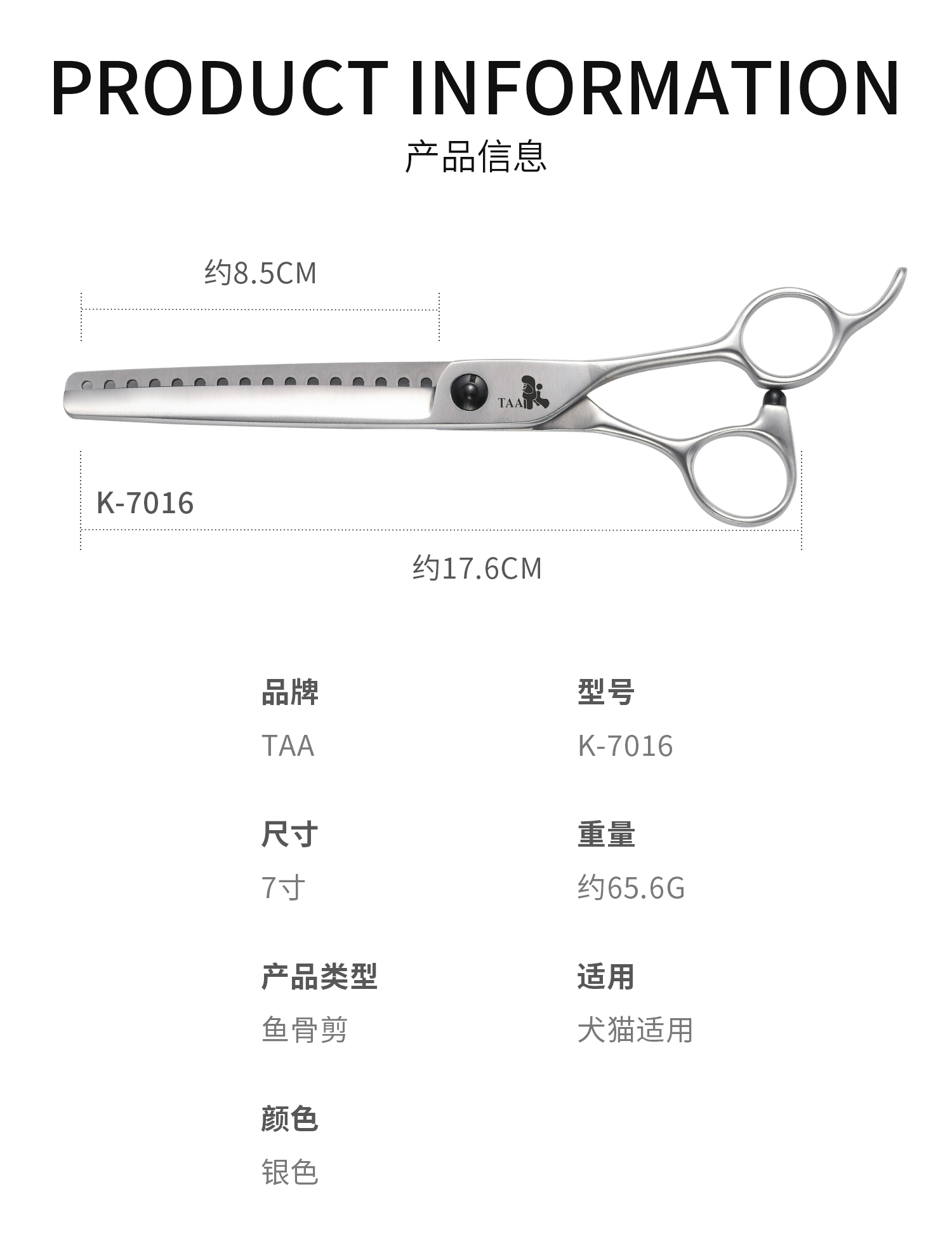 TAA它它宠物美容7寸鱼骨剪K-7016狗猫泰迪贵宾去修毛用蓬松