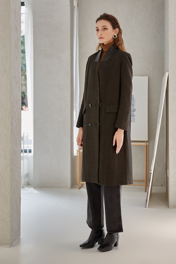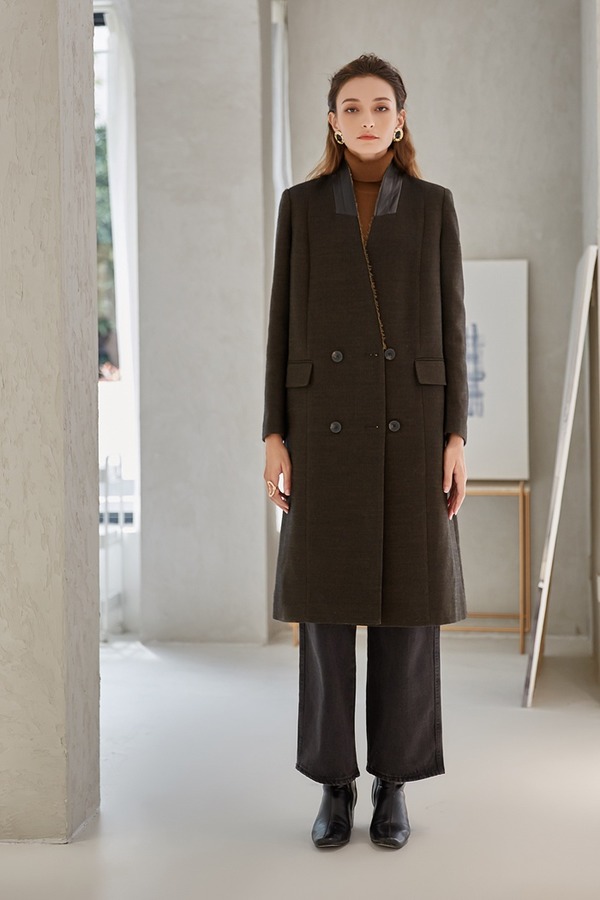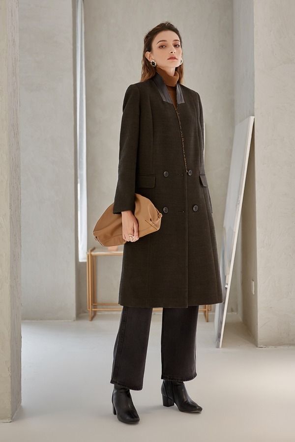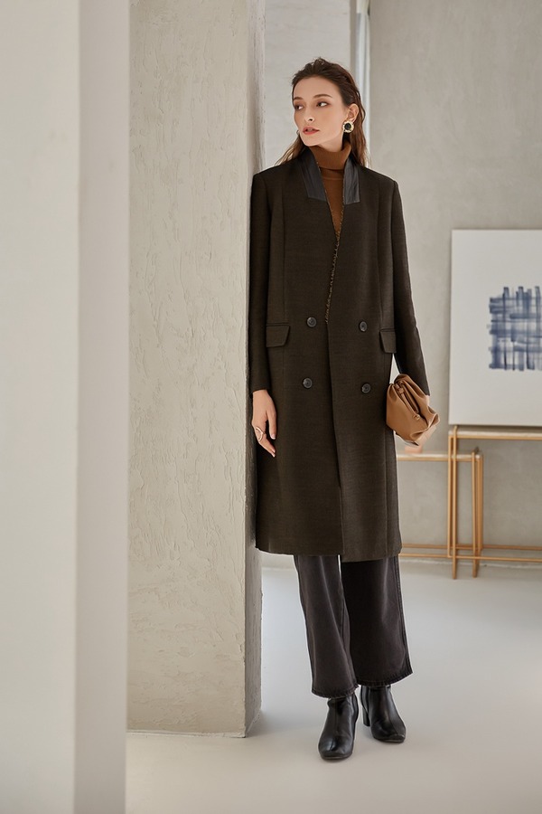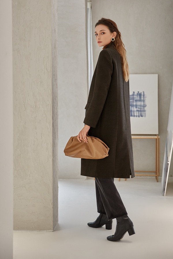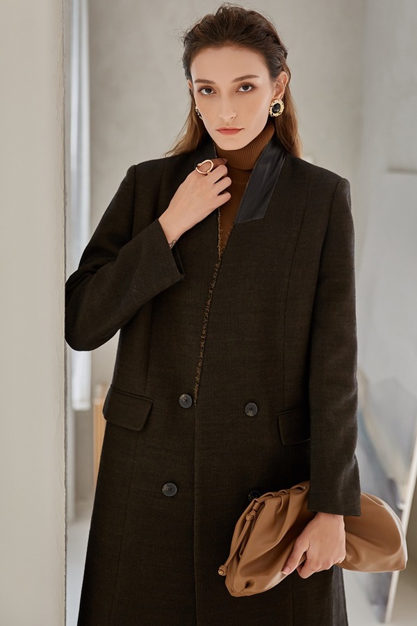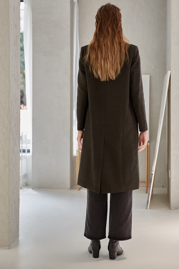 DAMO WANG/王大墨 黑色一粒扣超长款毛呢大衣 14096