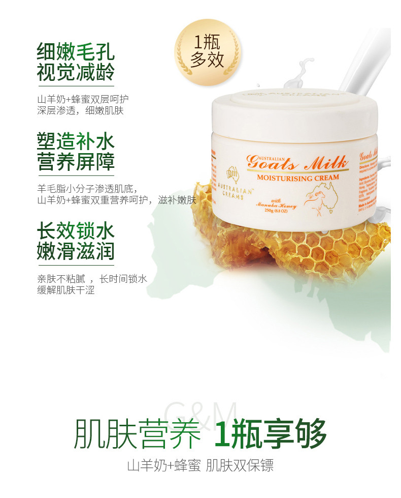 GM澳芝曼 山羊奶蜂蜜嫩肤霜 250g