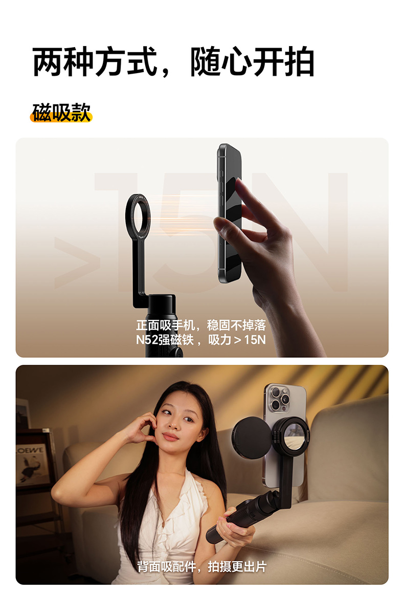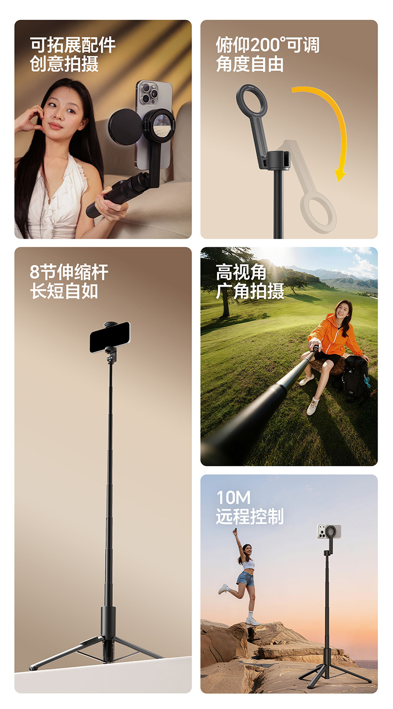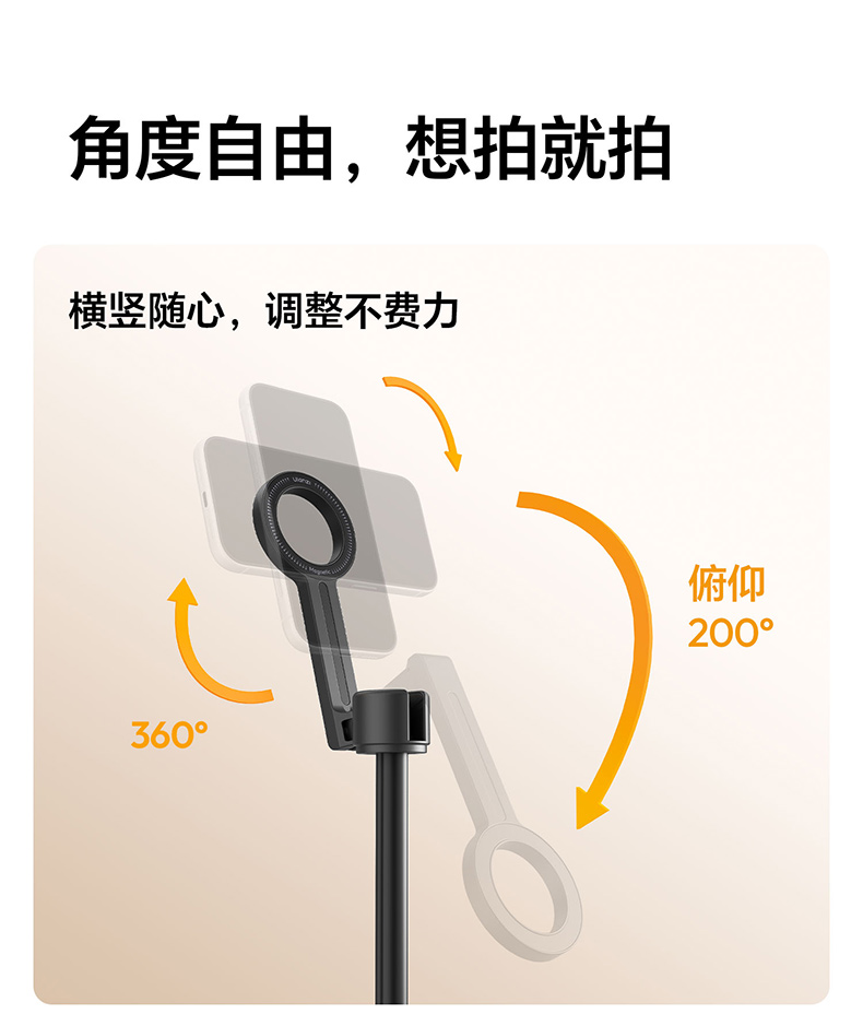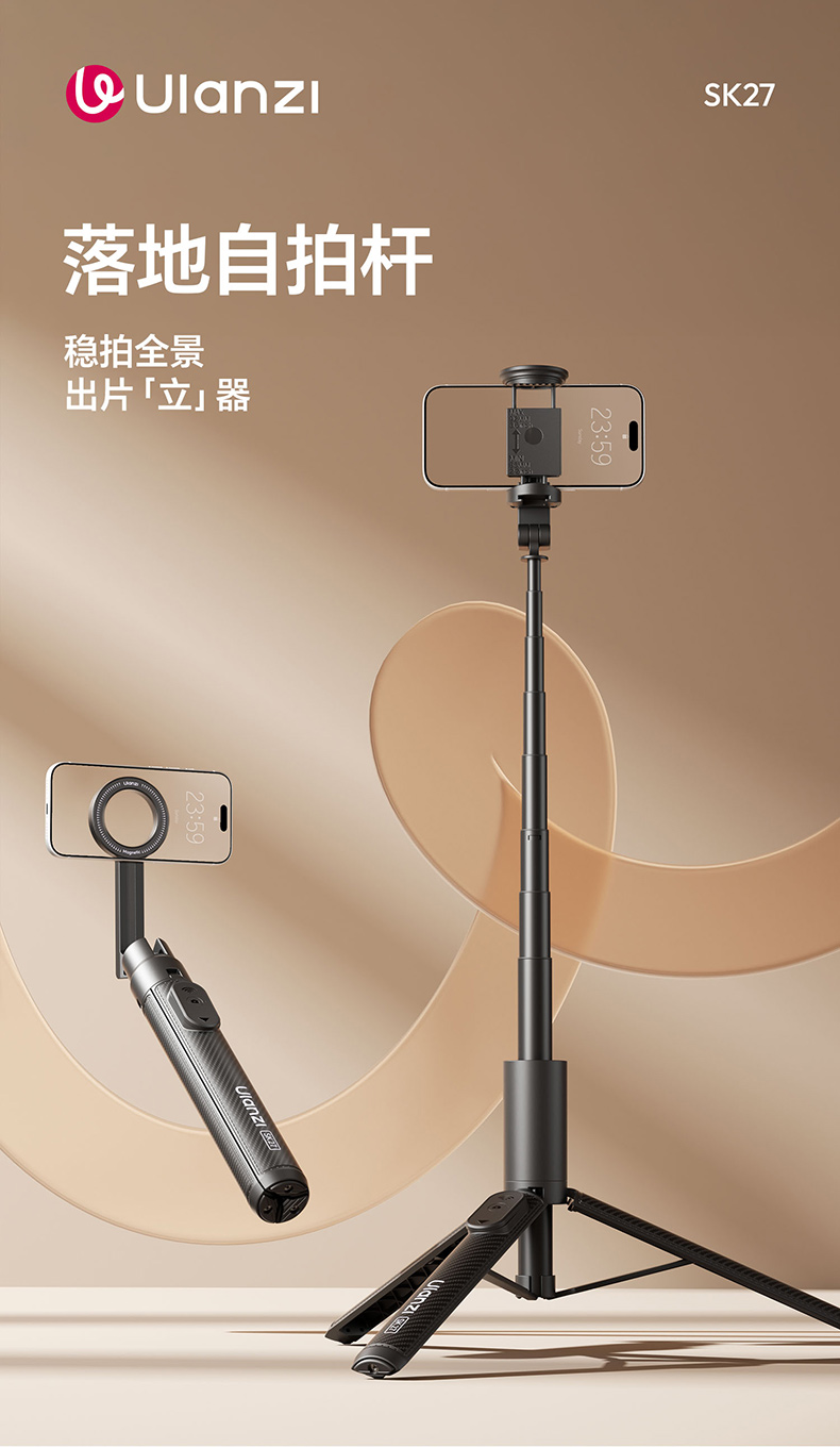 Ulanzi优篮子SK-27磁吸自拍杆magsafe手机支架适用iPhone苹果17安卓拍照摄影直播落地三脚架旅游vlog拍摄神器