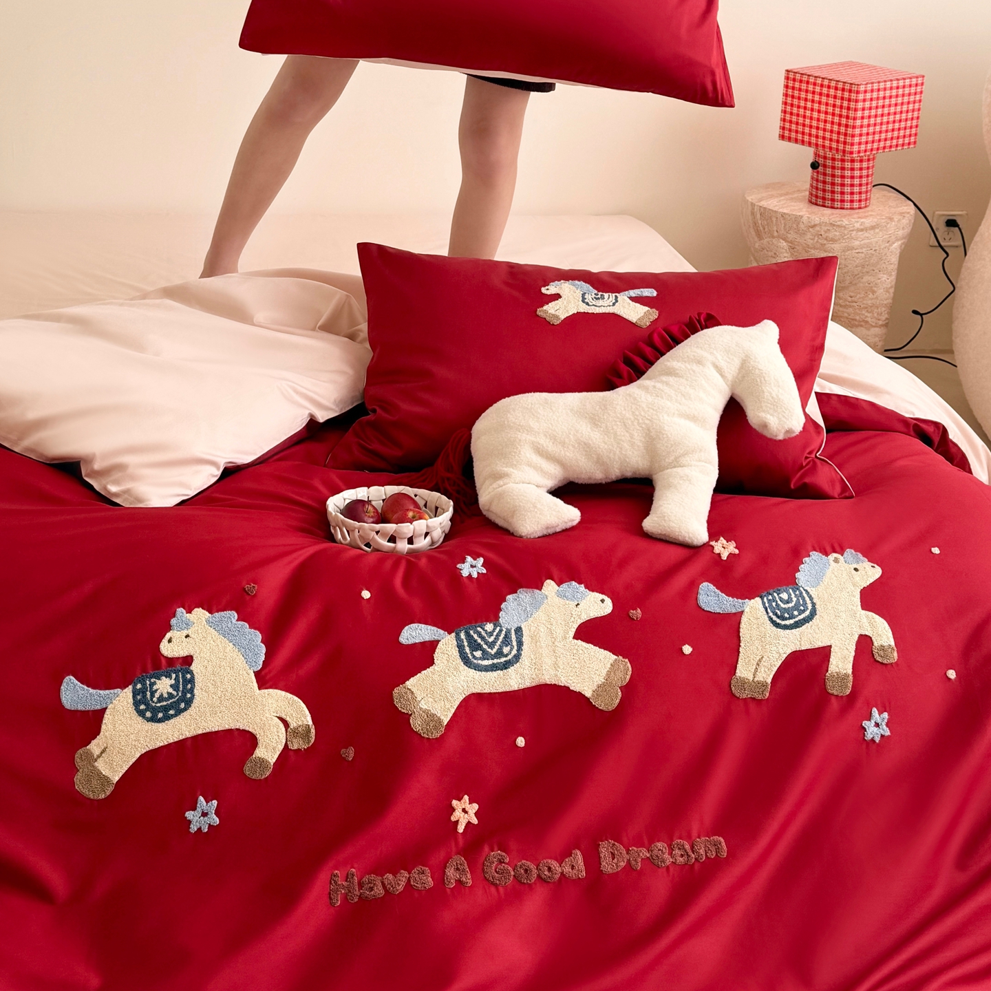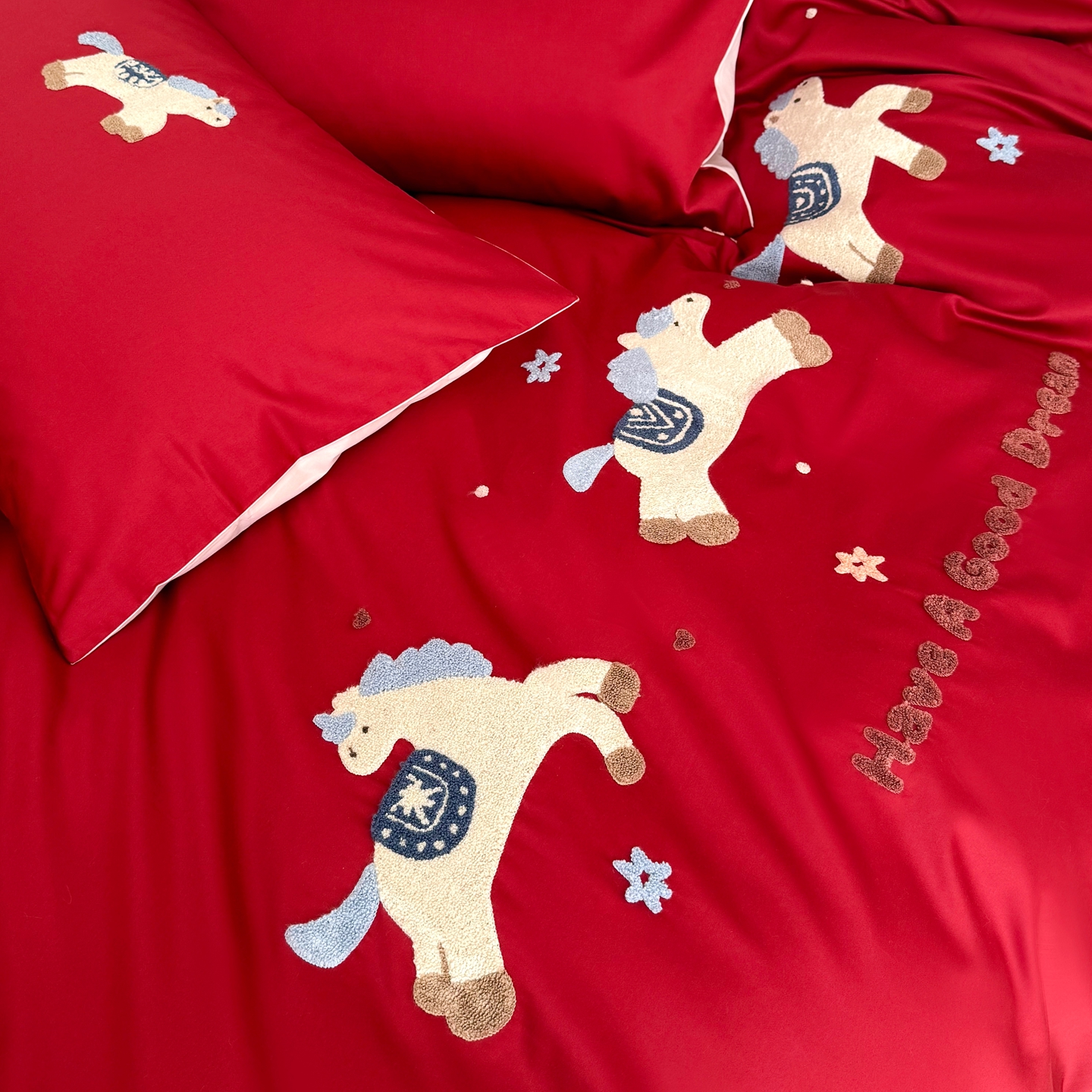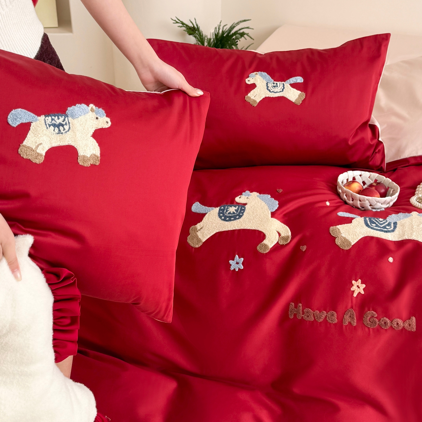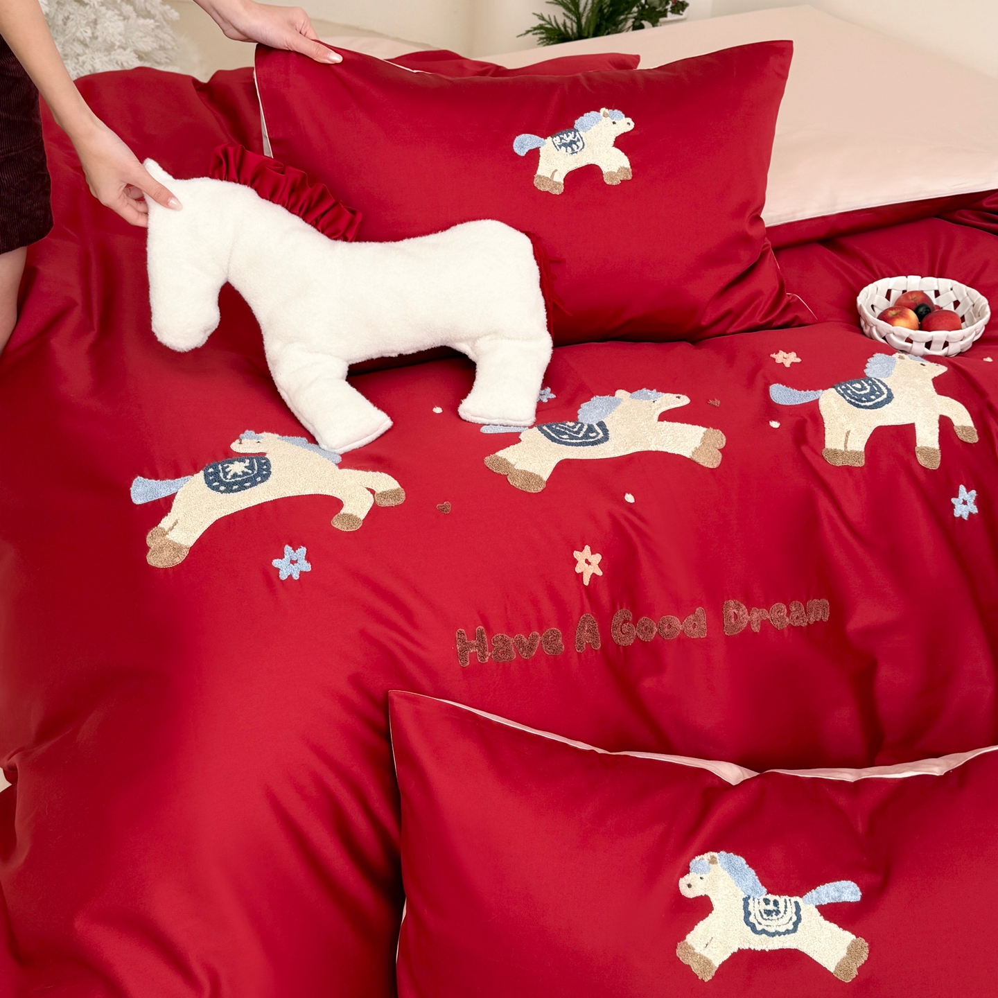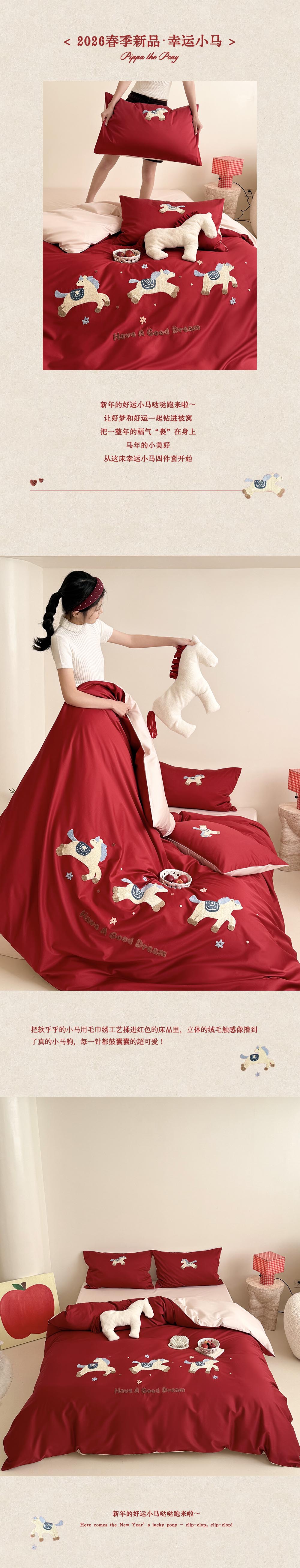 【品牌直发】加倍生活 100支长绒棉纯棉毛巾绣系列四件套/三件套-幸运小马系列 马年限定系列 春节焕新季
