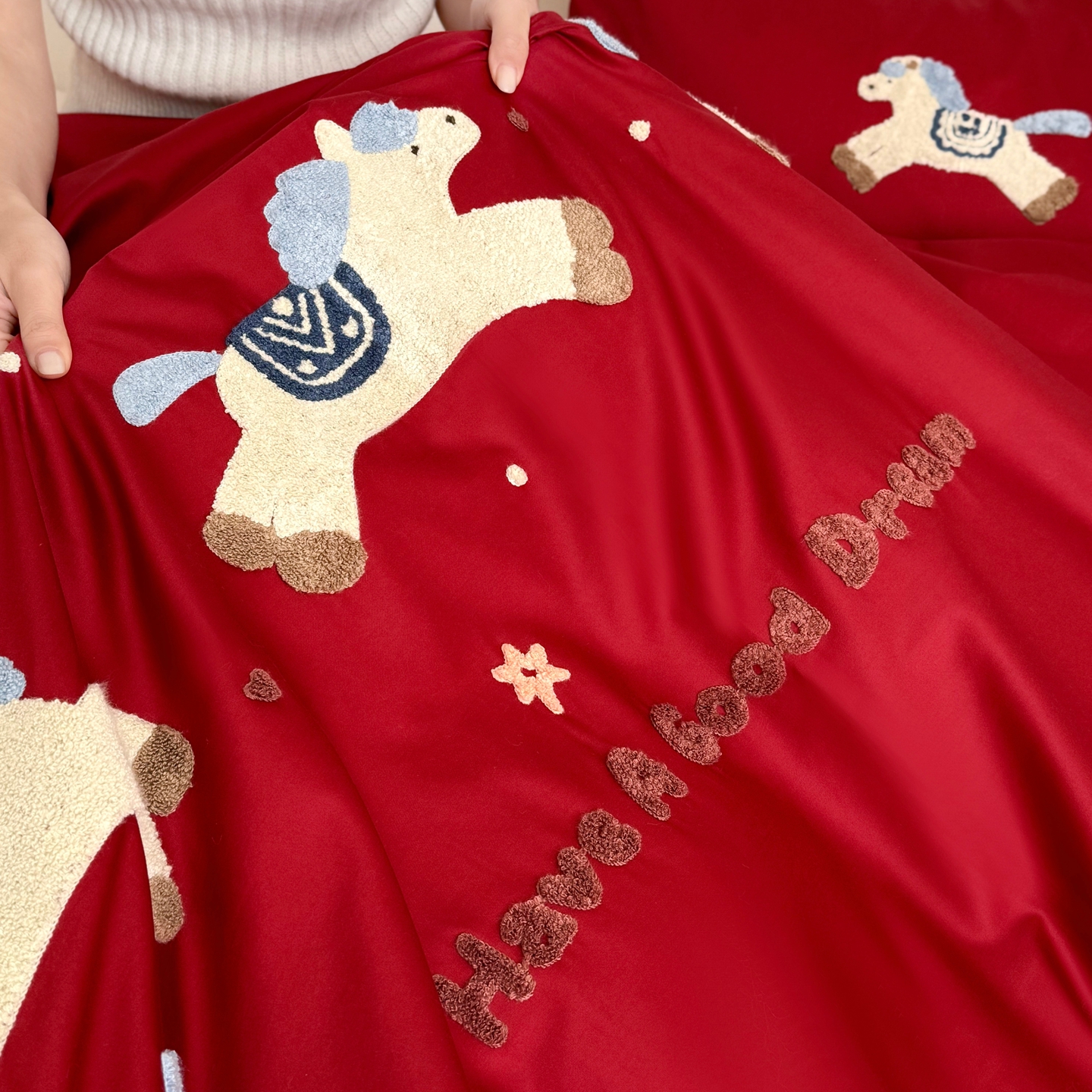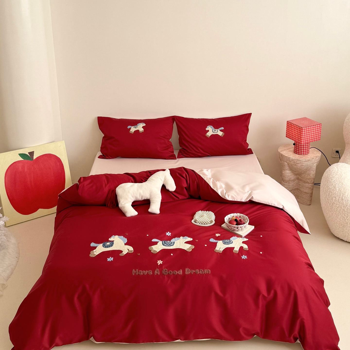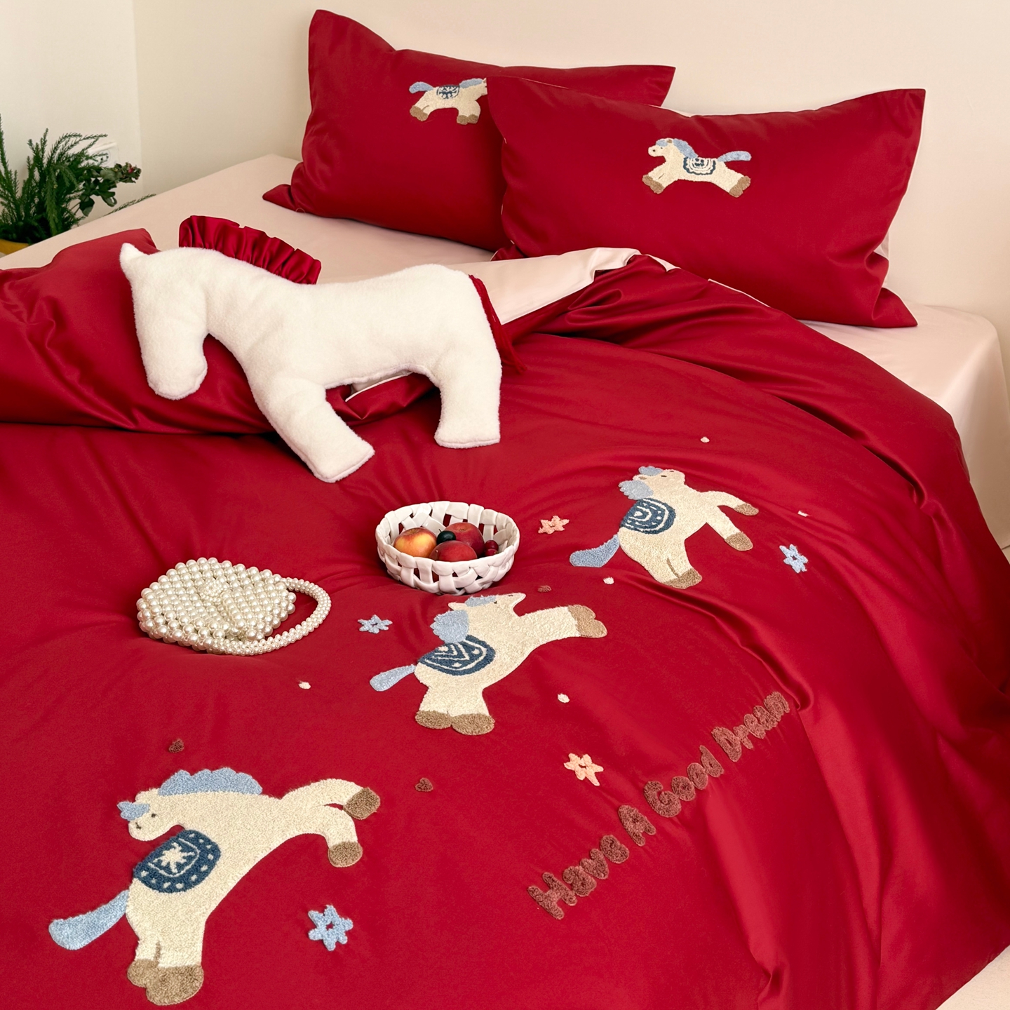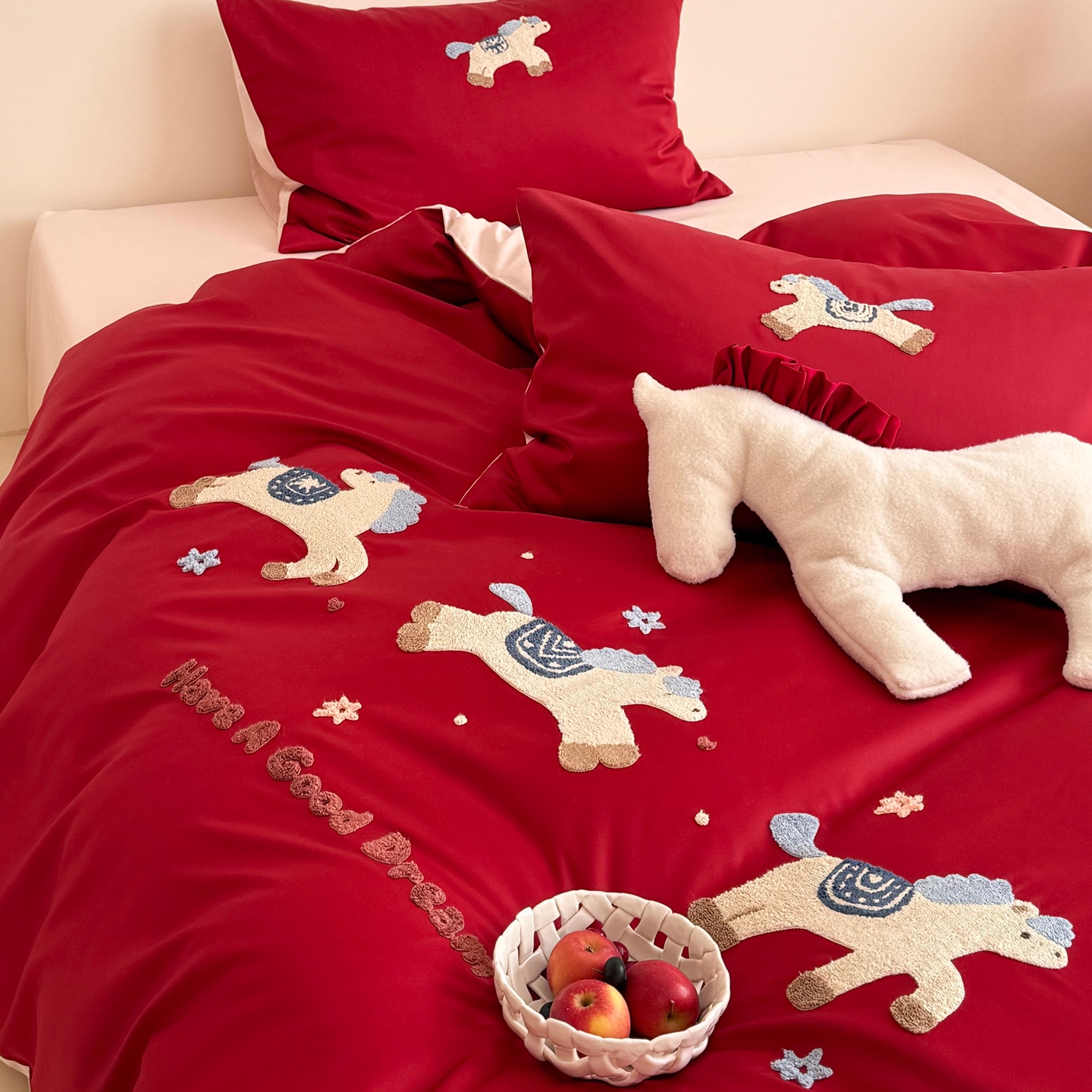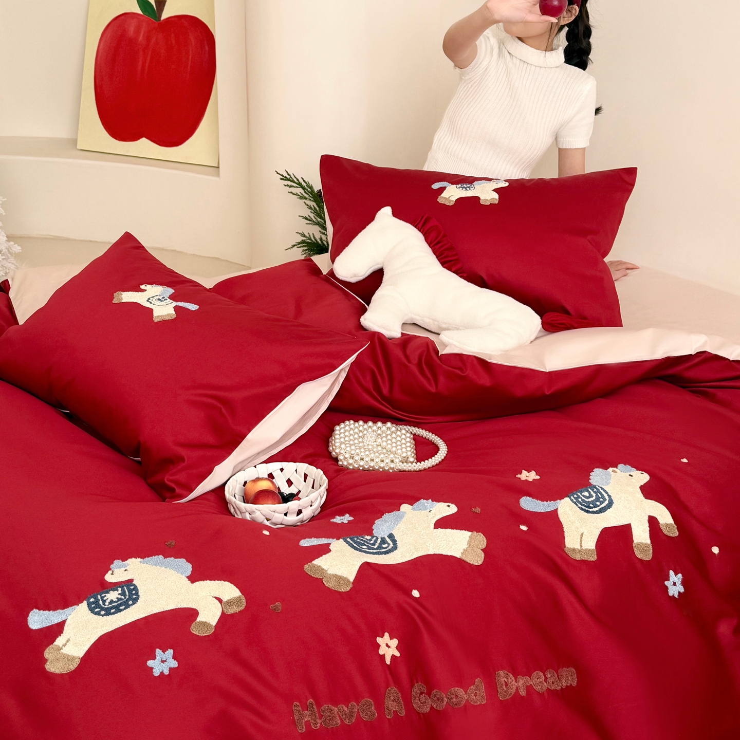 【品牌直发】加倍生活 100支长绒棉纯棉毛巾绣系列四件套/三件套-幸运小马系列 马年限定系列 春节焕新季