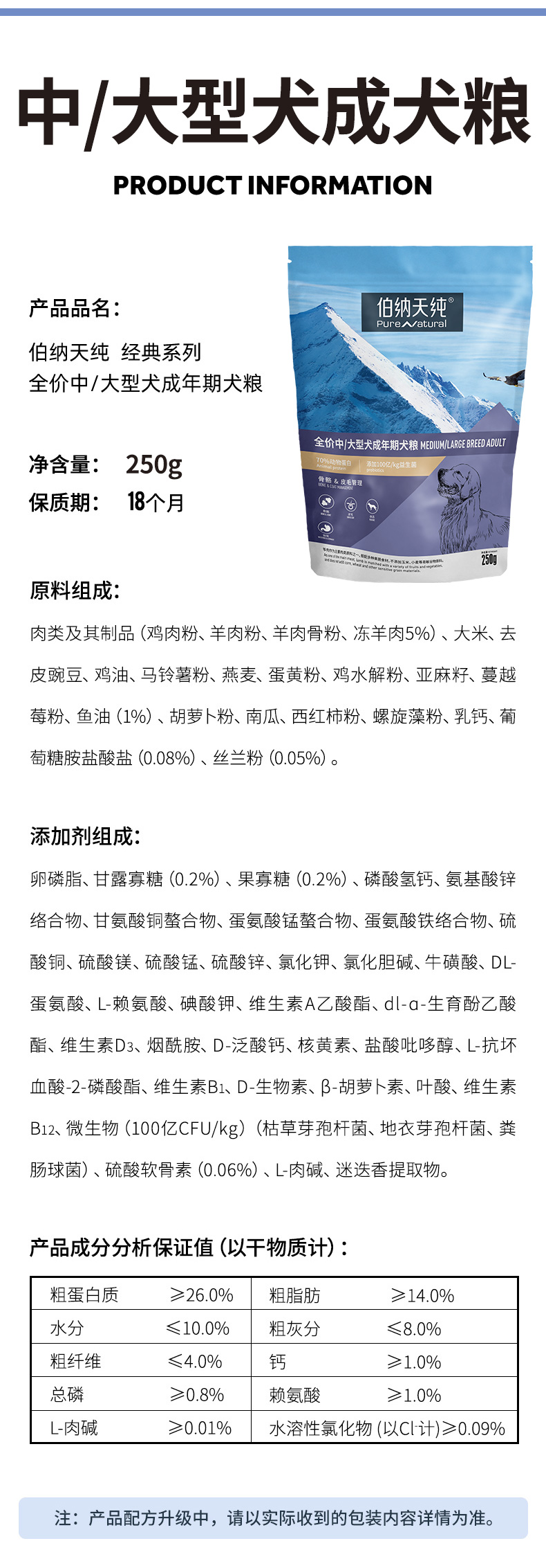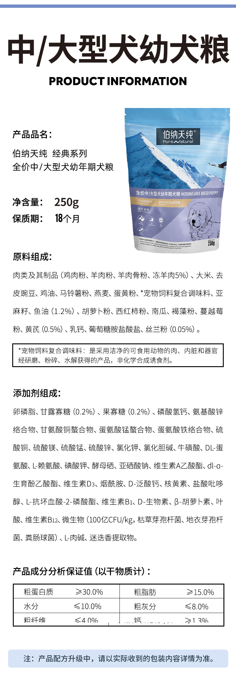 经典系列狗粮小型犬幼犬/小型成犬/中大型幼犬/中大型成犬专用粮250g