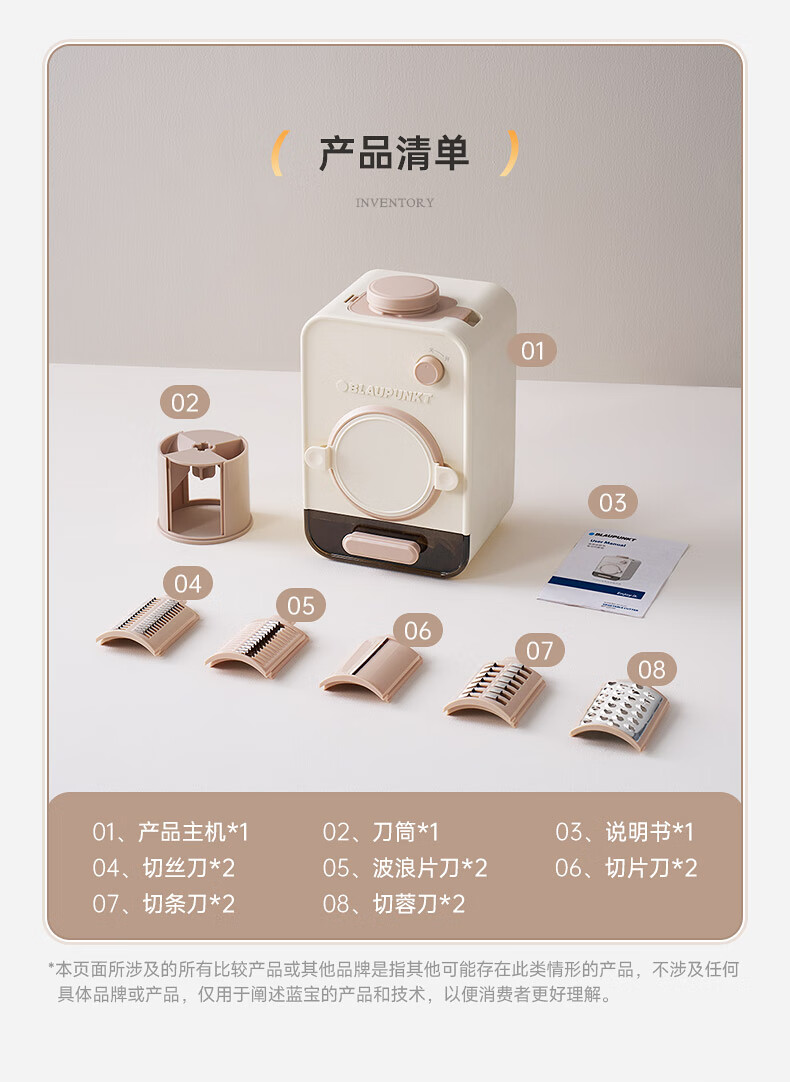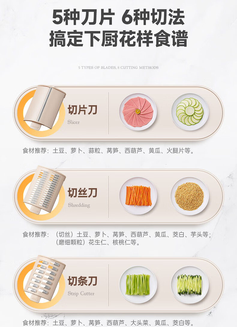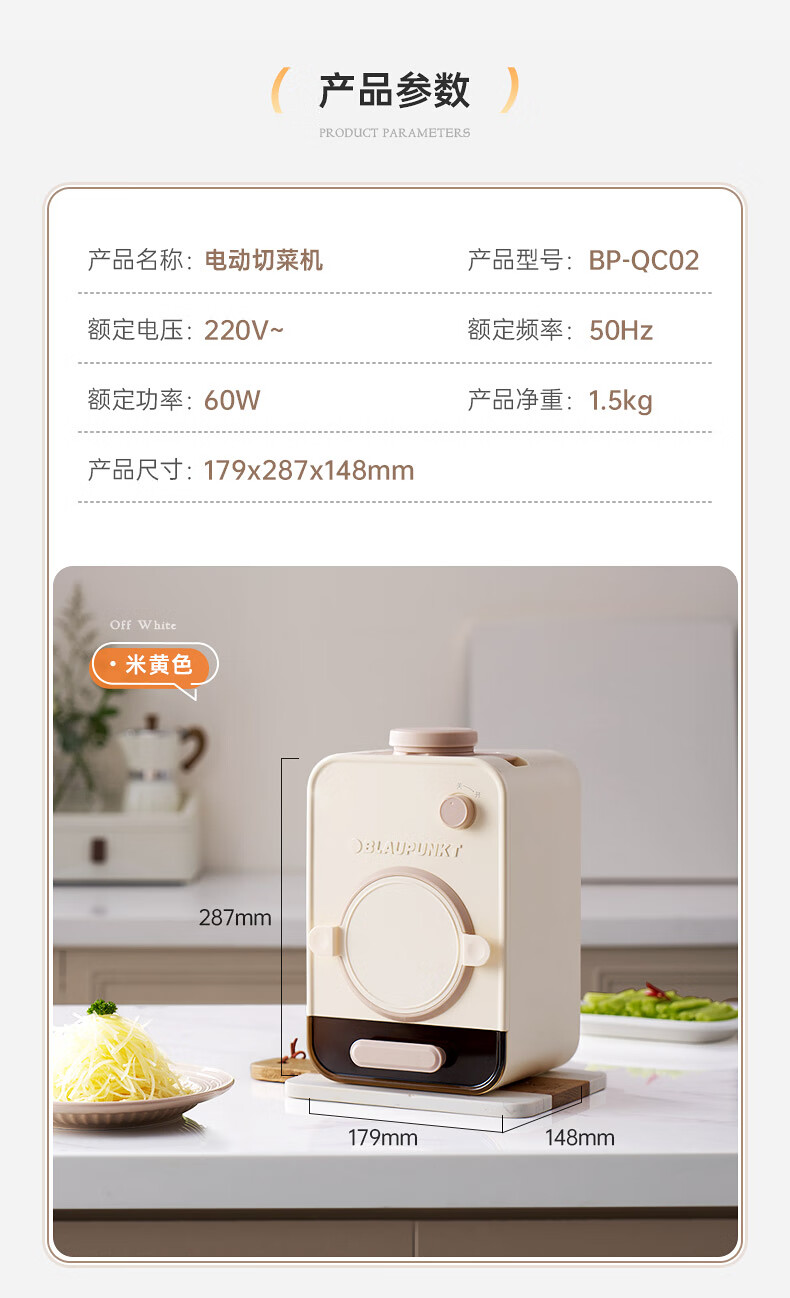 【小家电】蓝宝BLAUPUNKT全自动电动切菜机切菜神器多功能厨房家用能切片切丝土豆丝切碎机QC02 HF