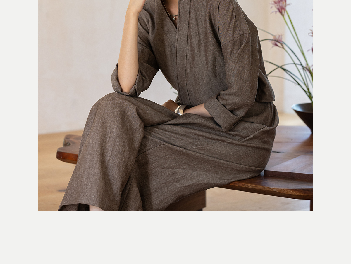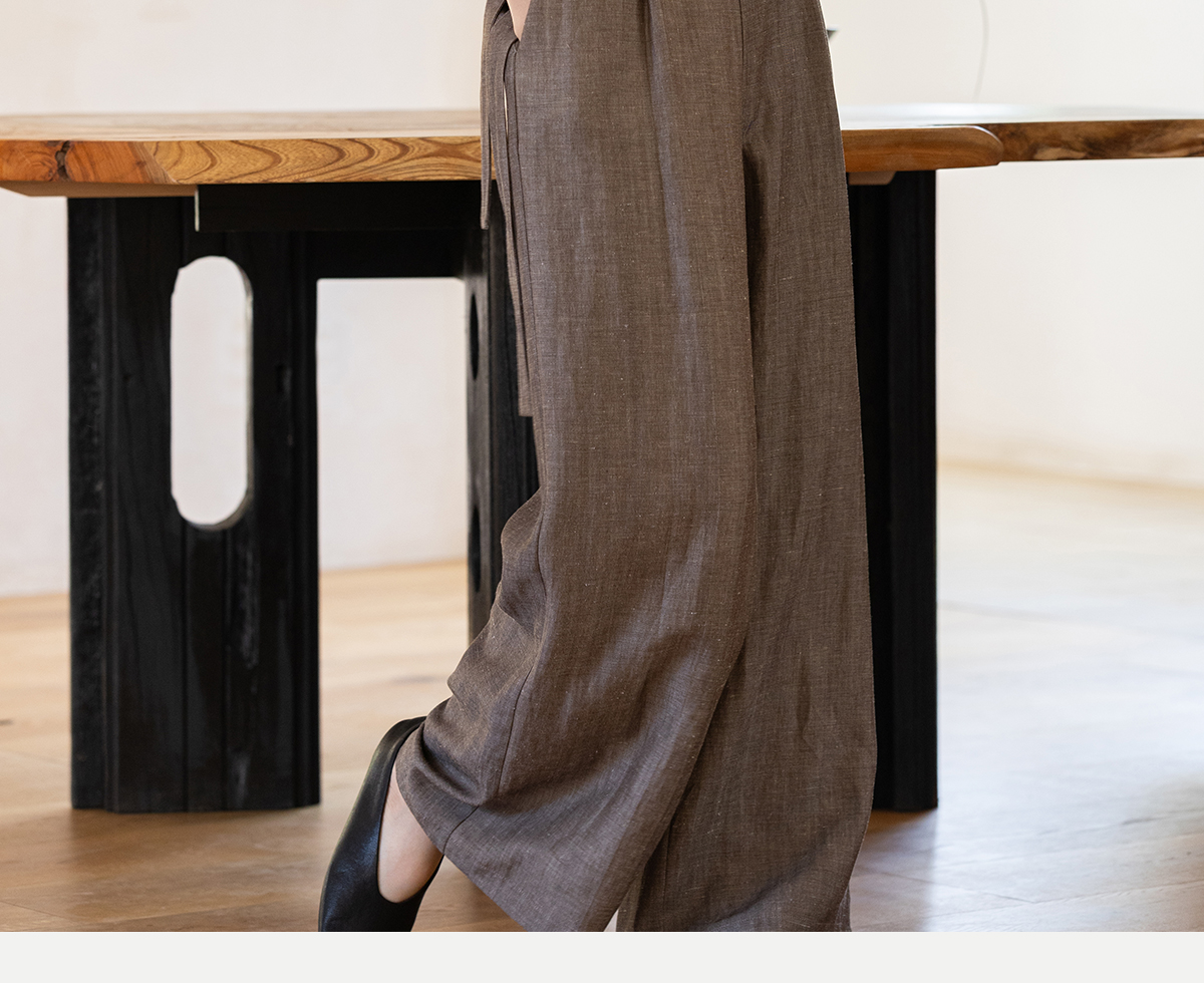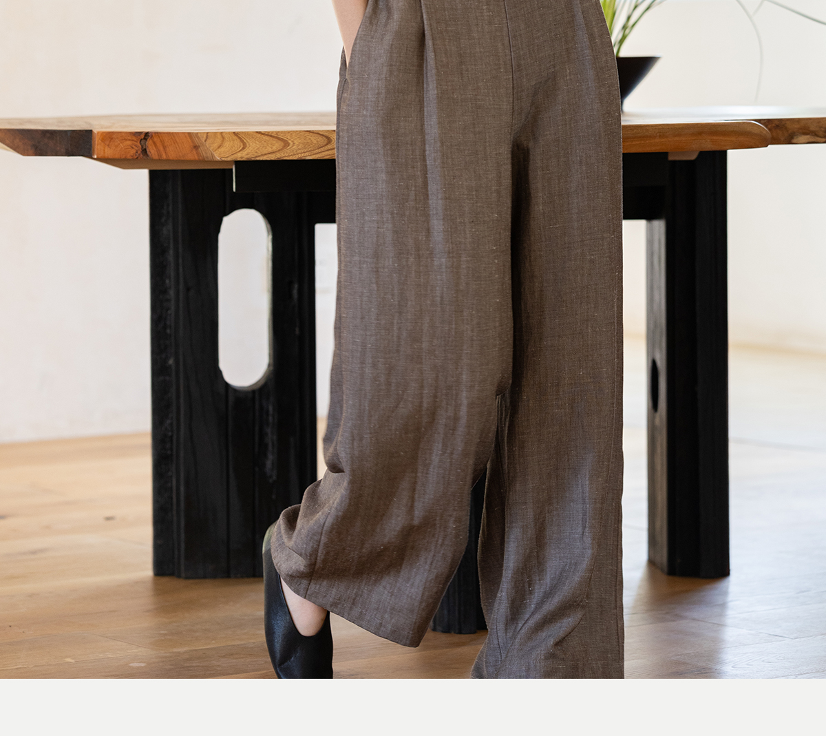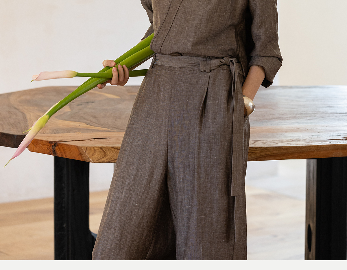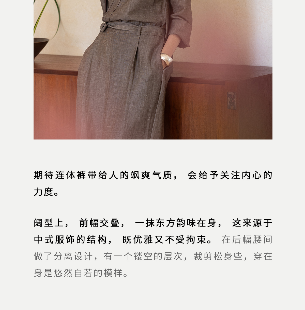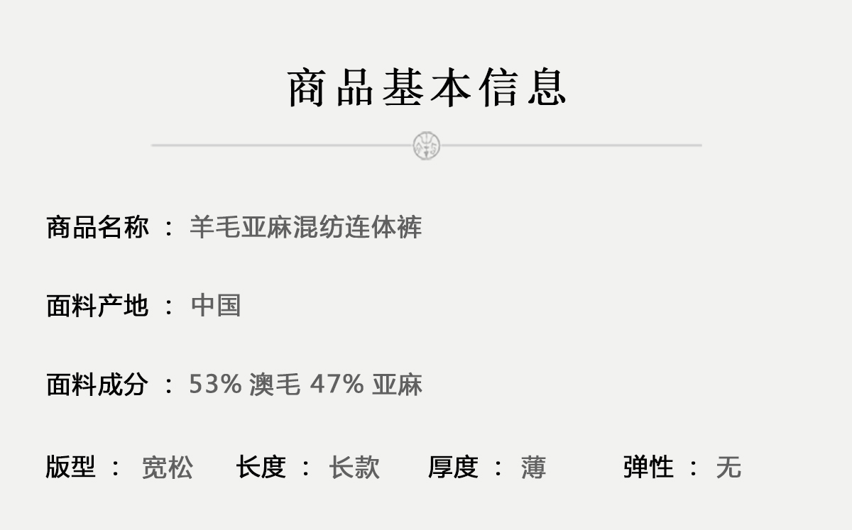牧衣游原创 羊毛亚麻混纺连体裤新款极简通勤气质垂感直筒裤 夕月