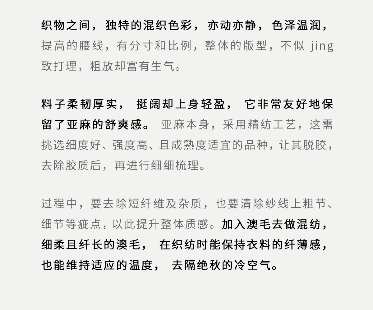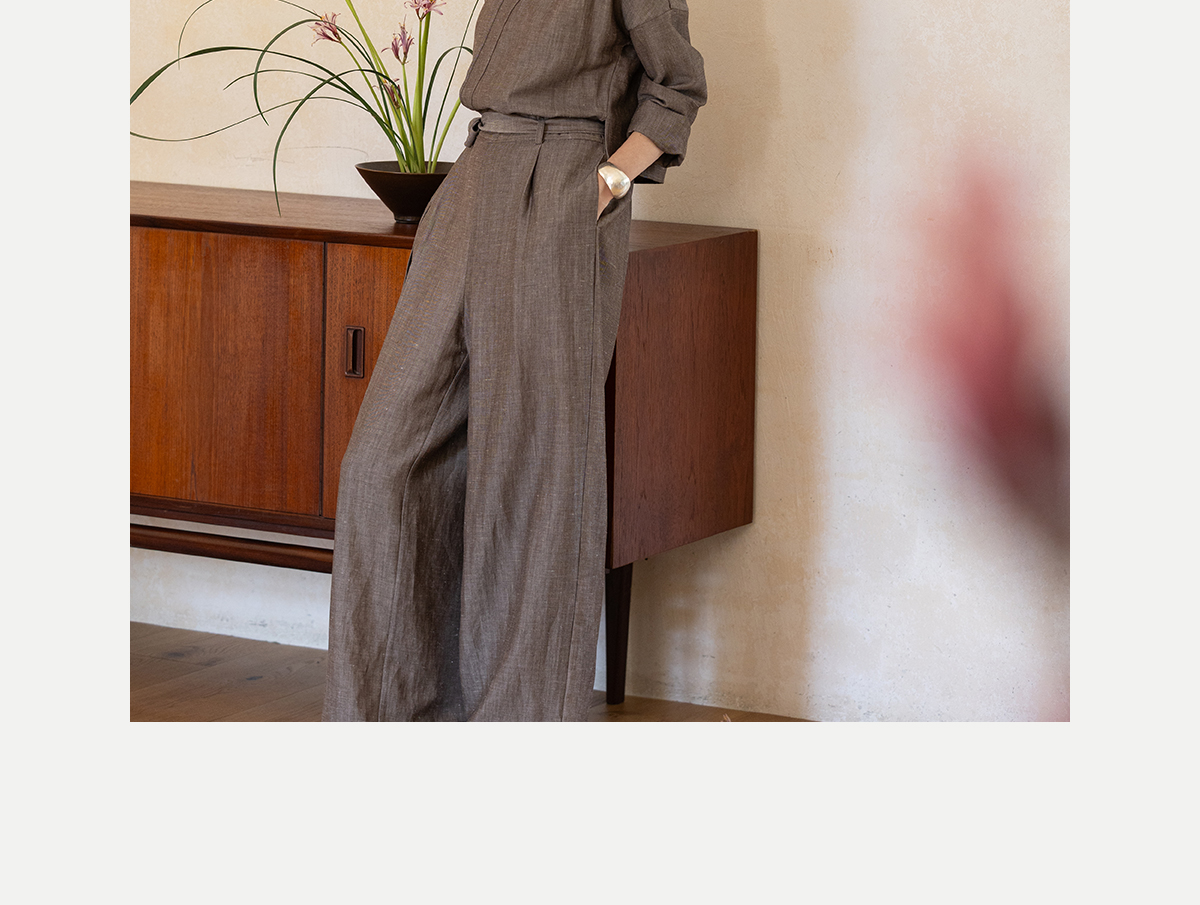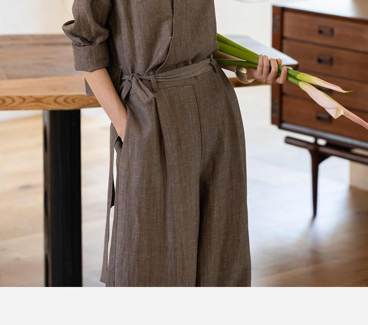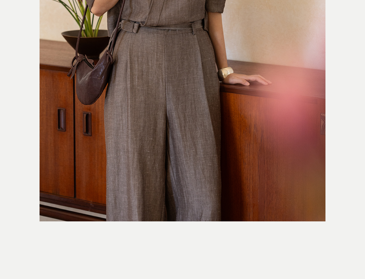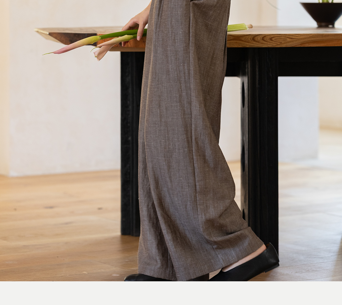 牧衣游原创 羊毛亚麻混纺连体裤新款极简通勤气质垂感直筒裤 夕月