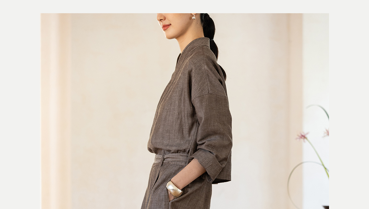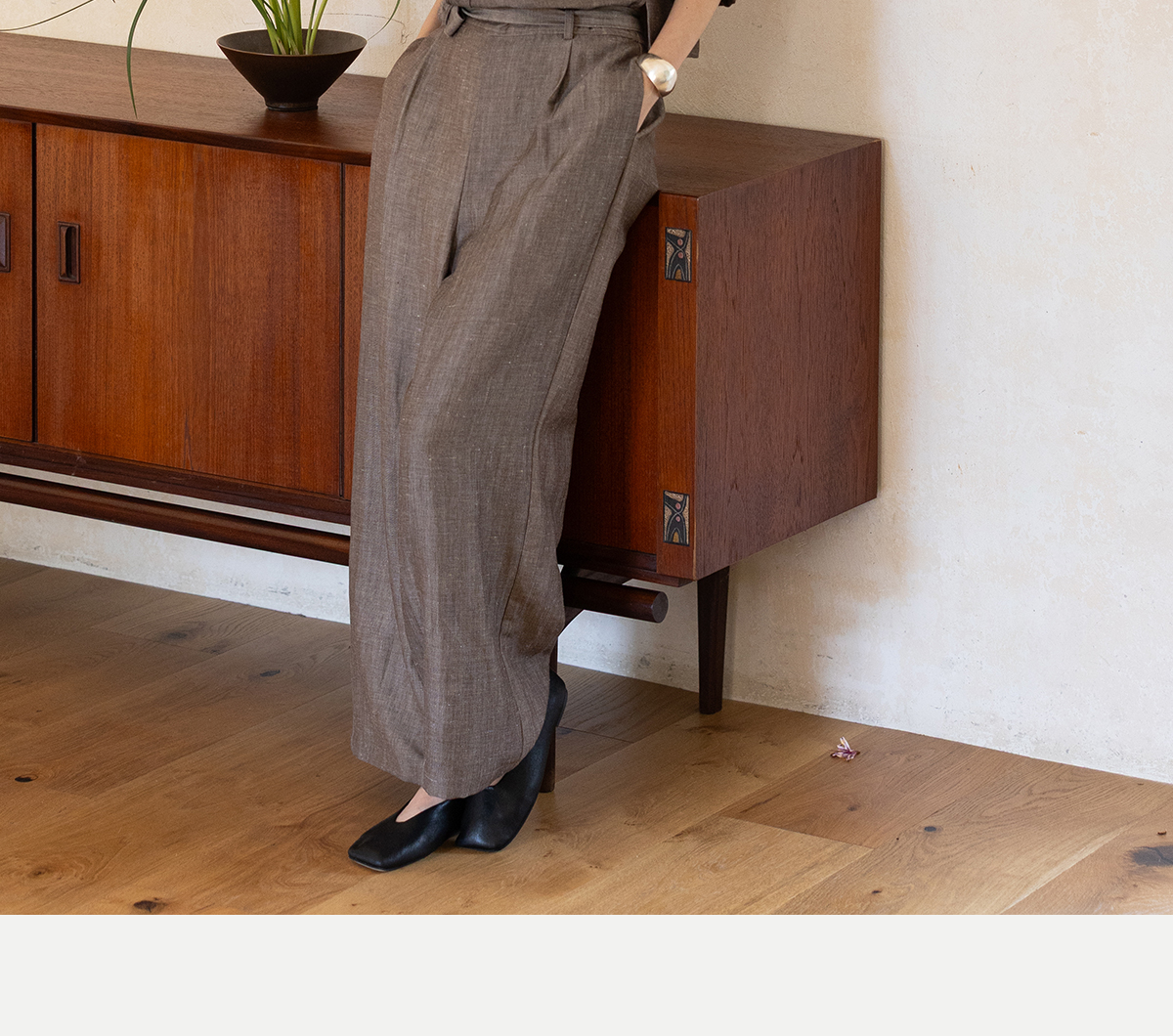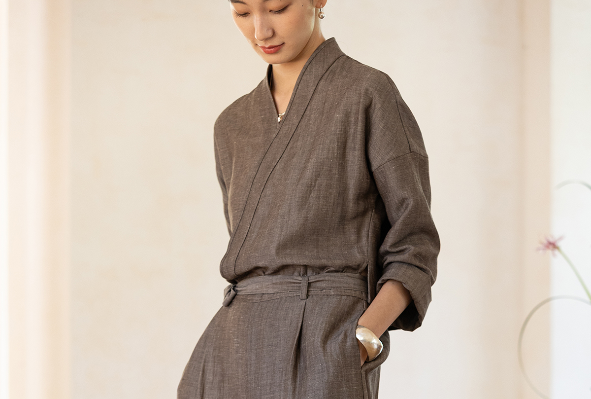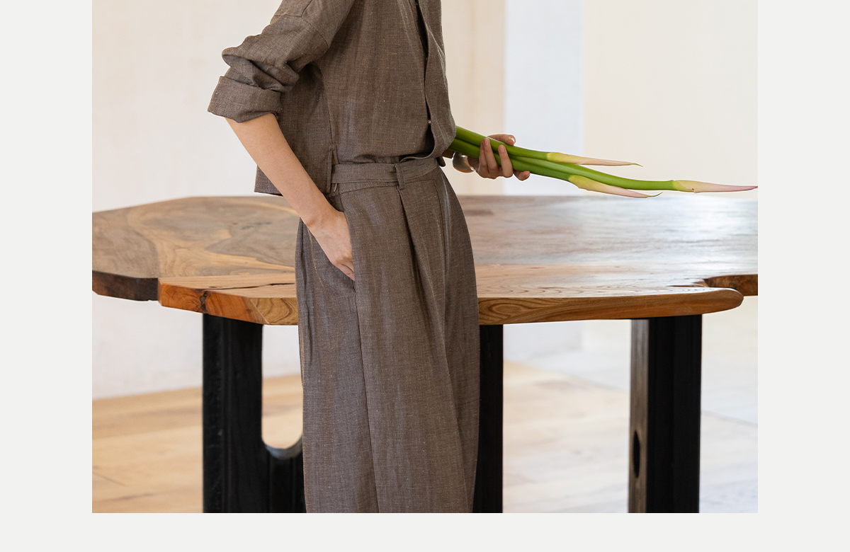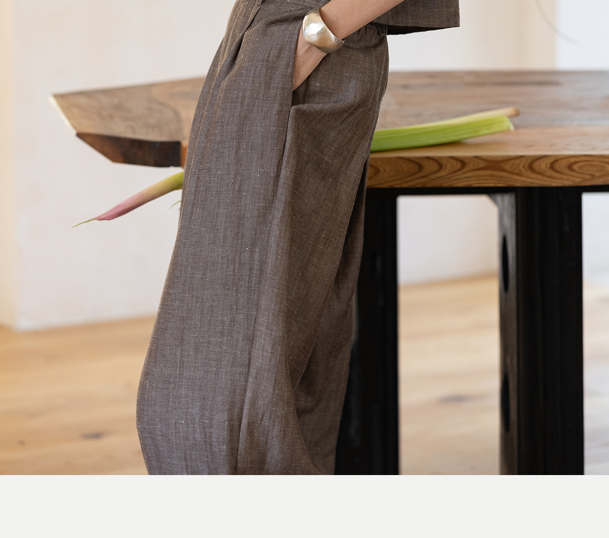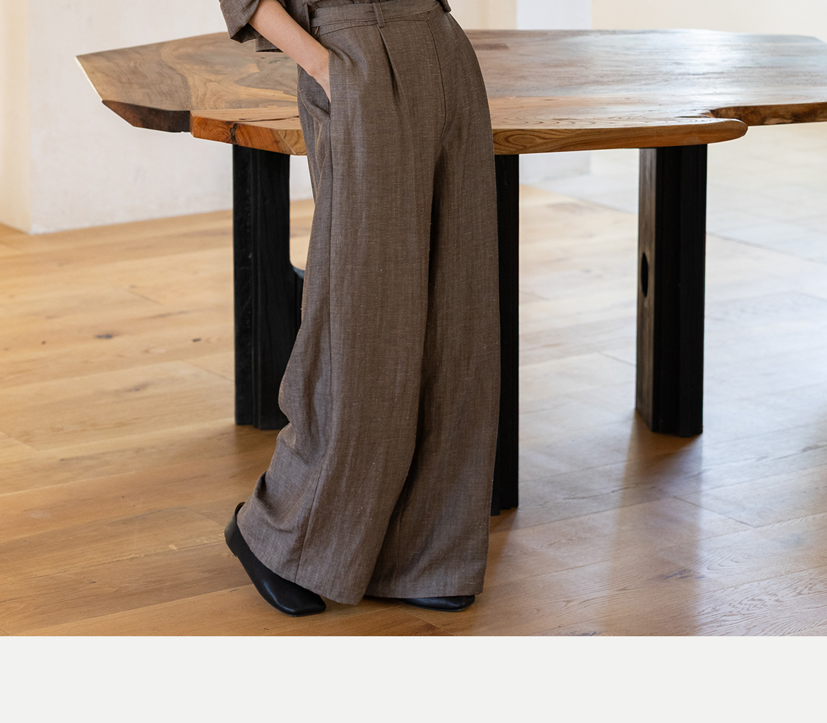 牧衣游原创 羊毛亚麻混纺连体裤新款极简通勤气质垂感直筒裤 夕月