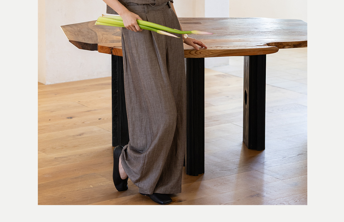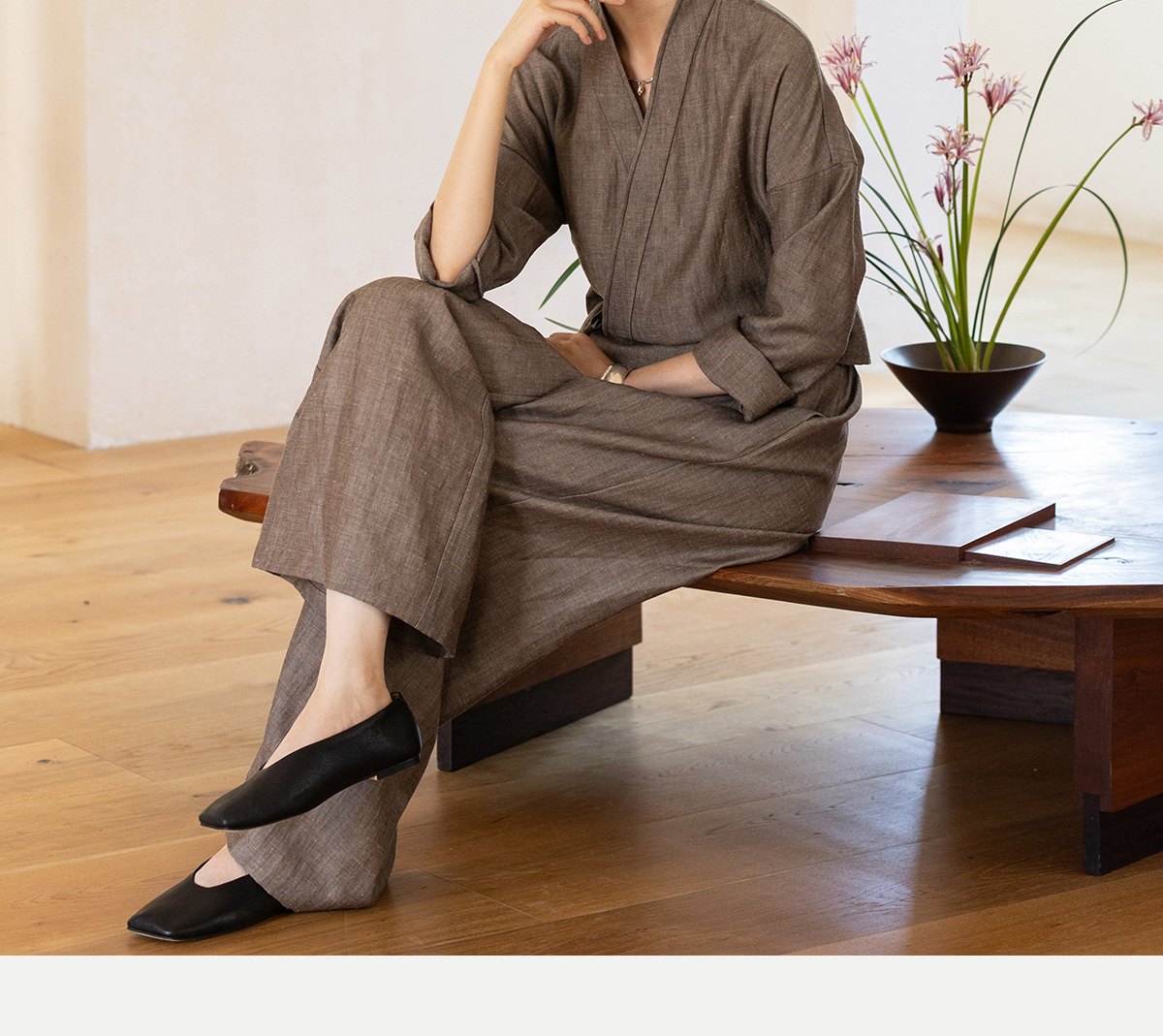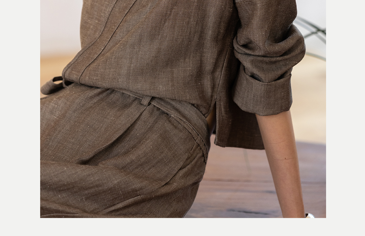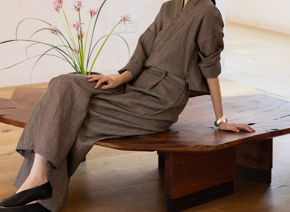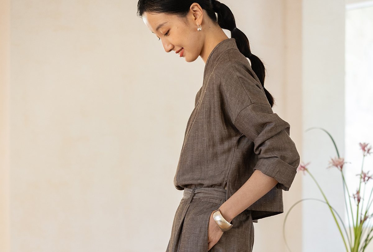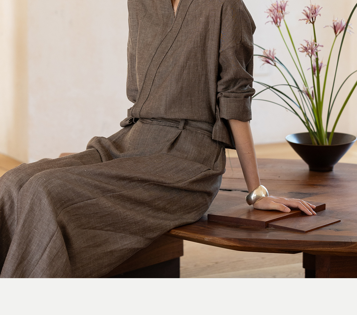 牧衣游原创 羊毛亚麻混纺连体裤新款极简通勤气质垂感直筒裤 夕月