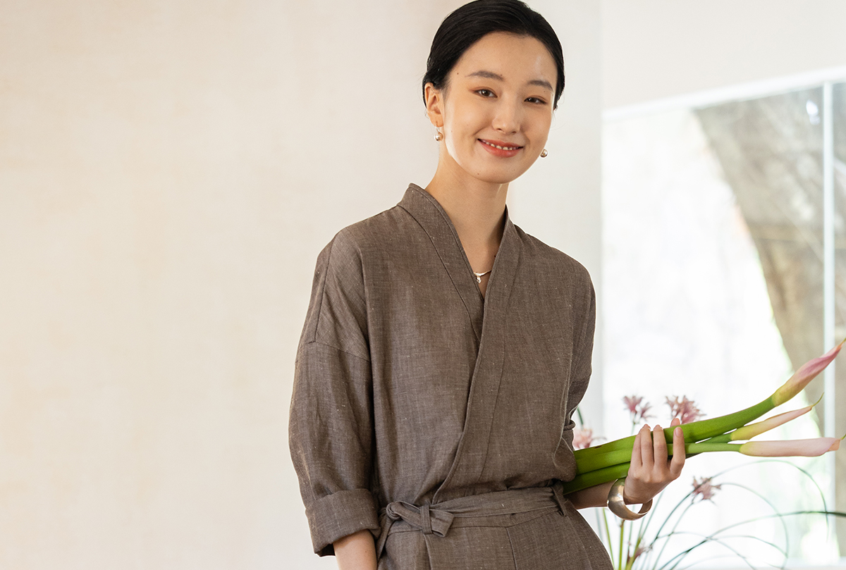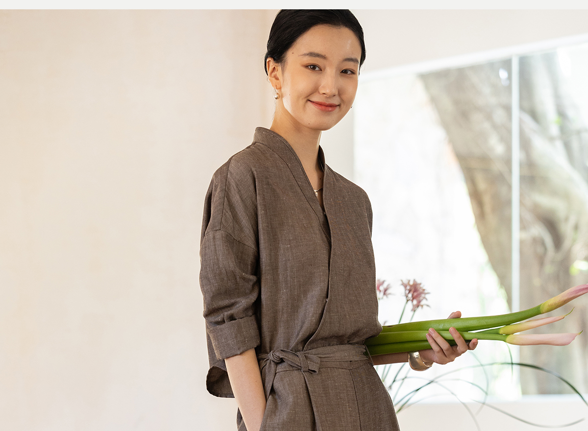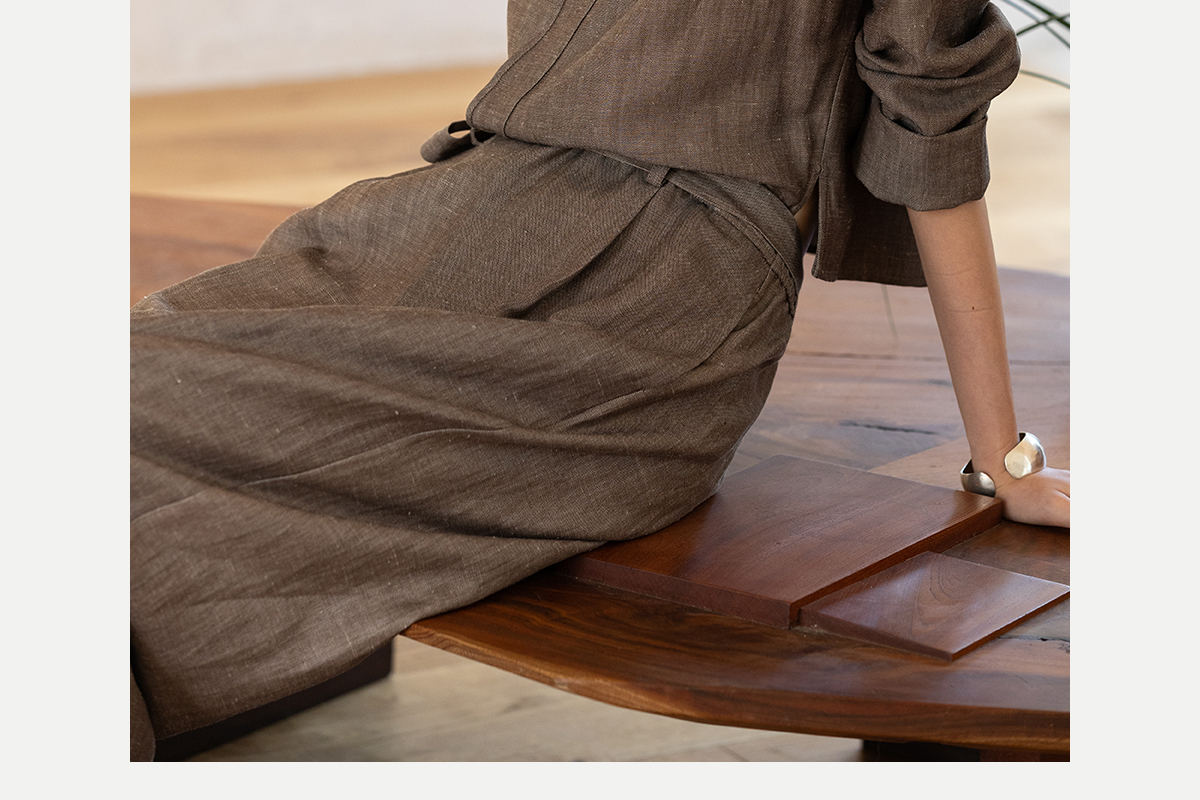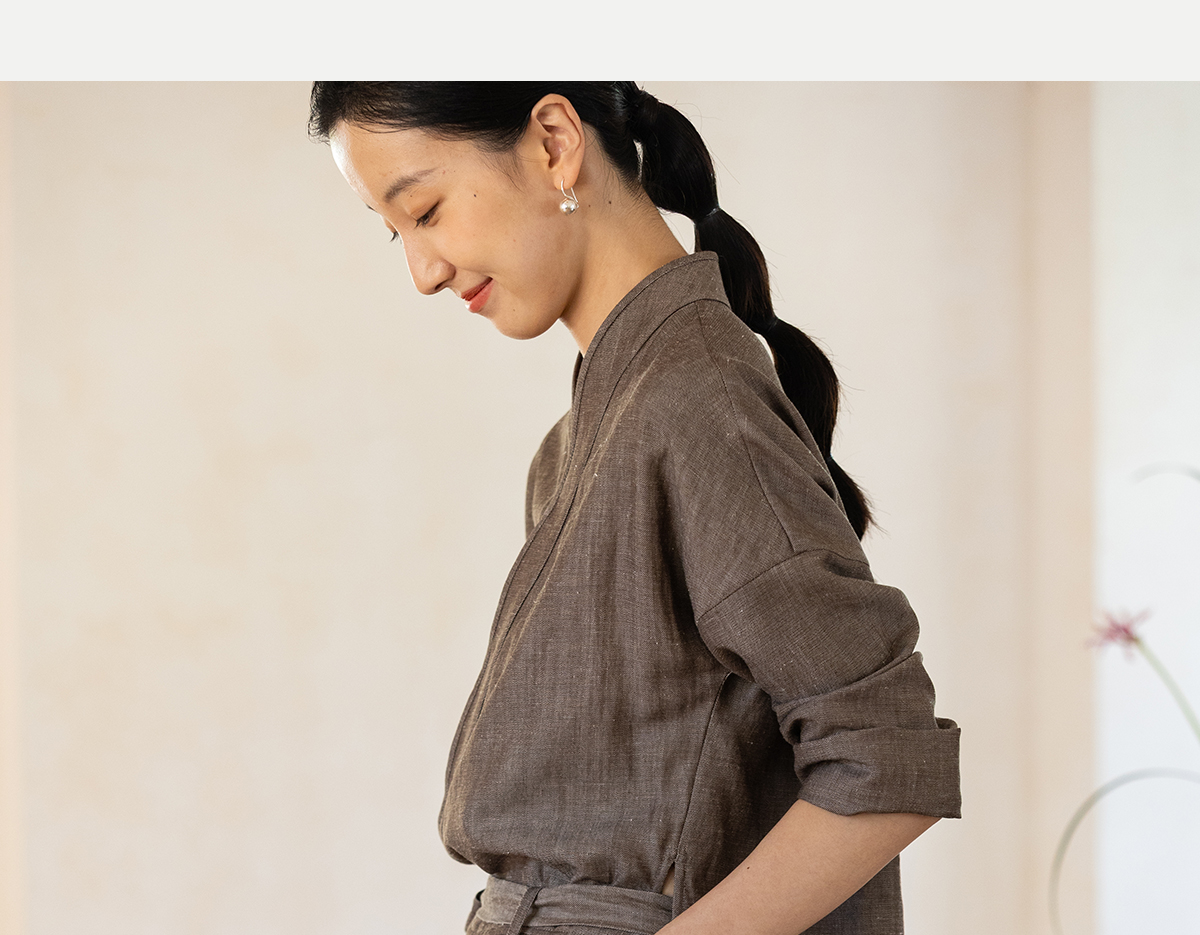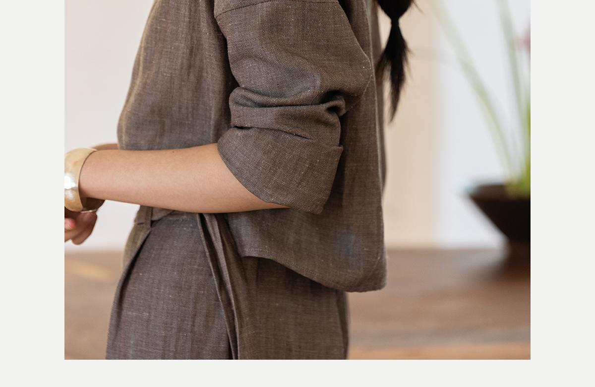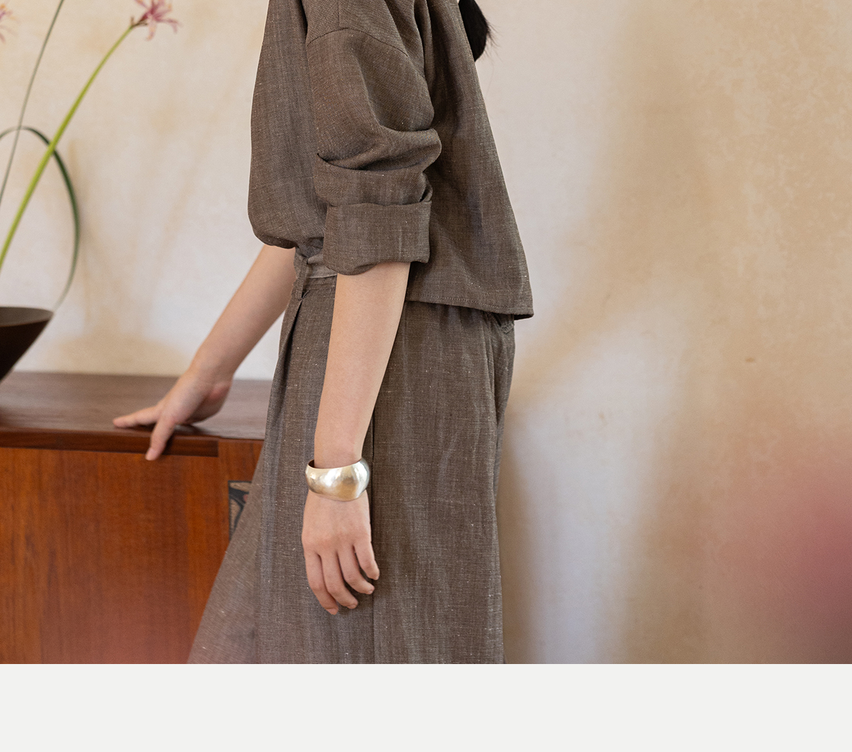 牧衣游原创 羊毛亚麻混纺连体裤新款极简通勤气质垂感直筒裤 夕月