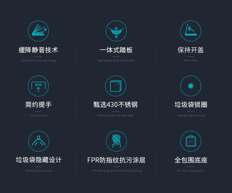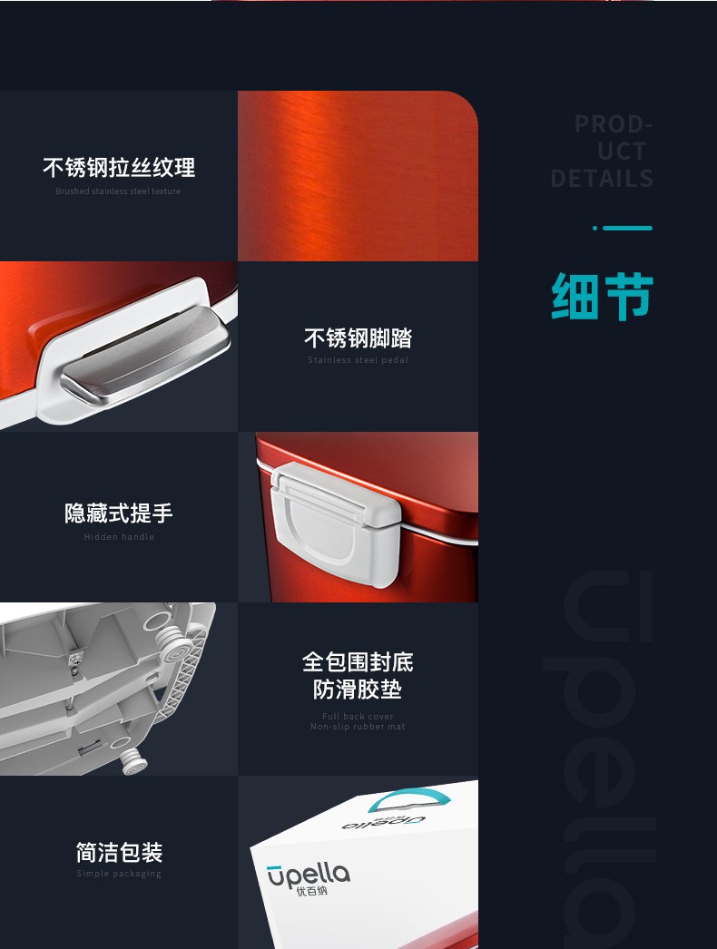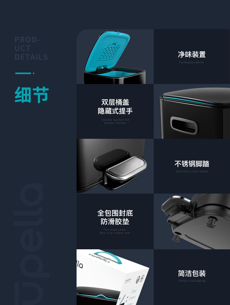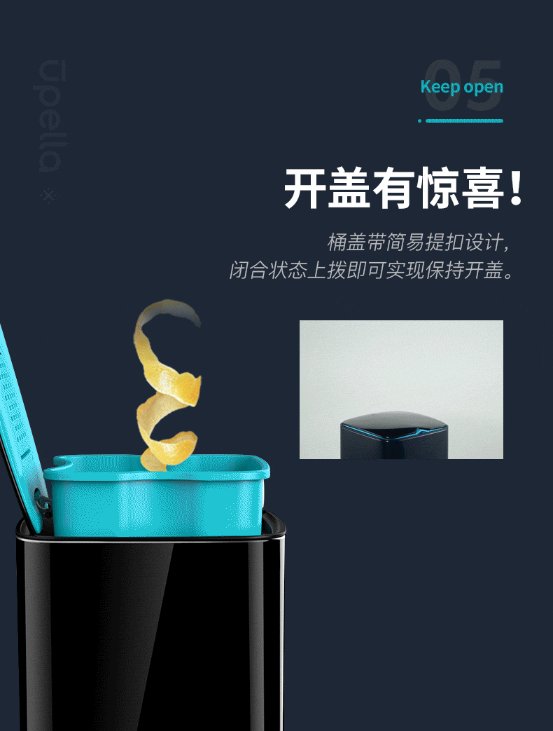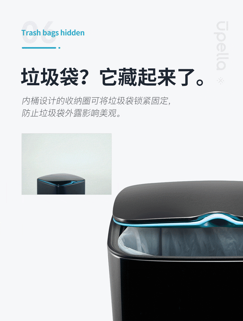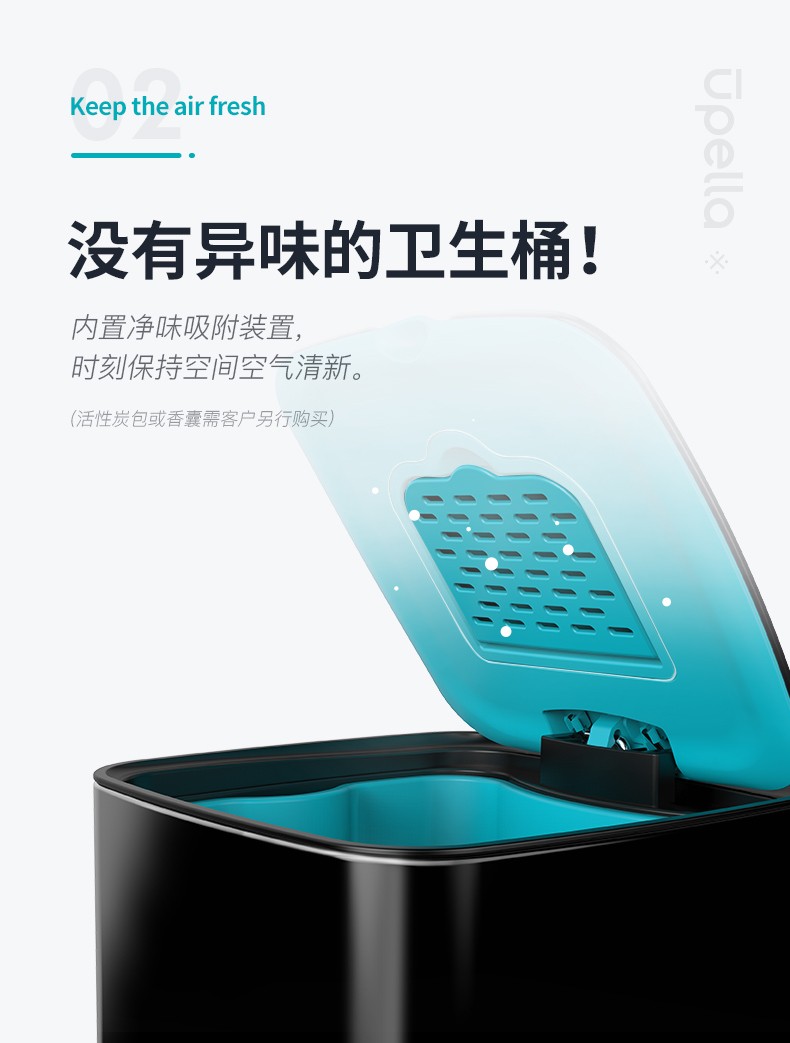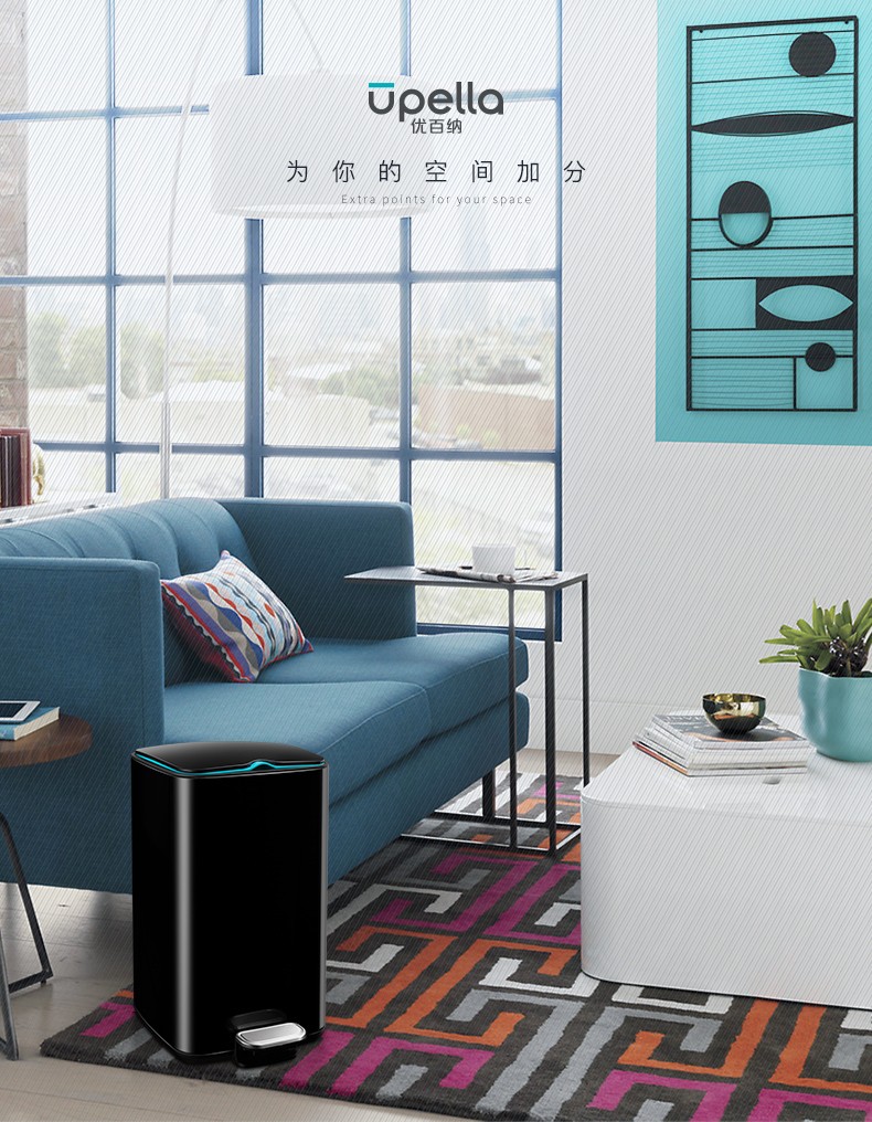 【清仓特惠7折,仅一个】优百纳爵士系列12L垃圾桶(黑色)