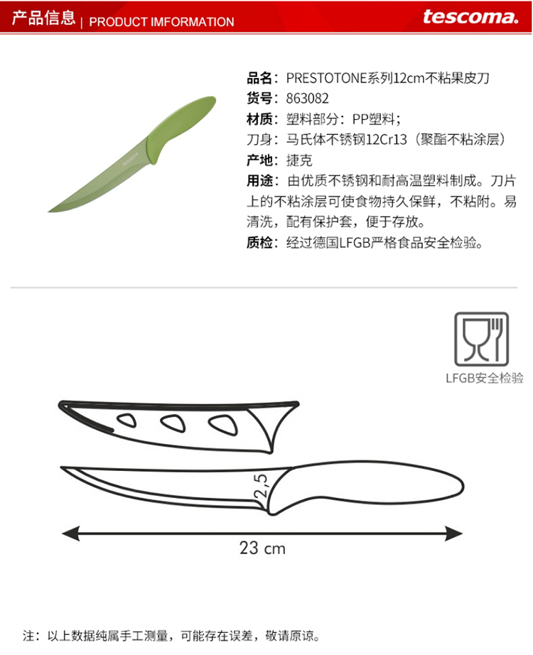 捷克进口/ Tescoma PRESTOTONE系列12cm不粘果皮刀削皮刀