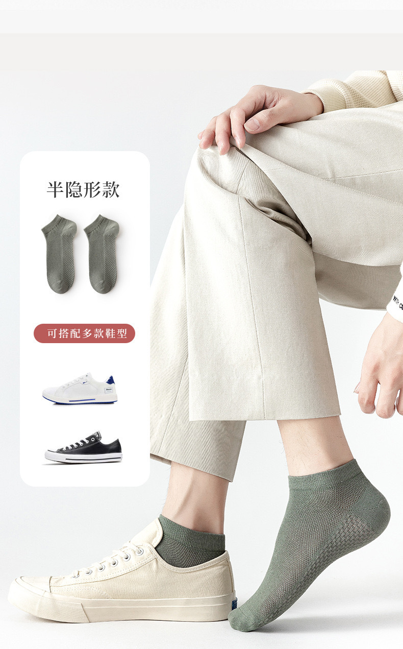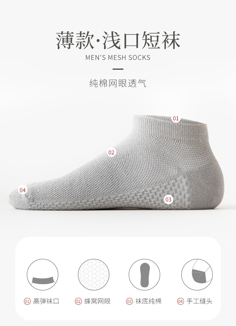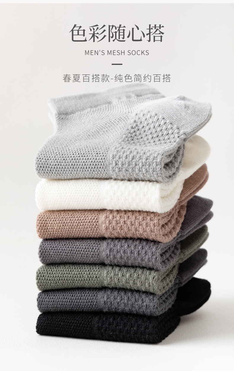 诸暨袜子夏天男士防臭吸汗薄款纯色商务短袜网眼透气纯棉男袜批发