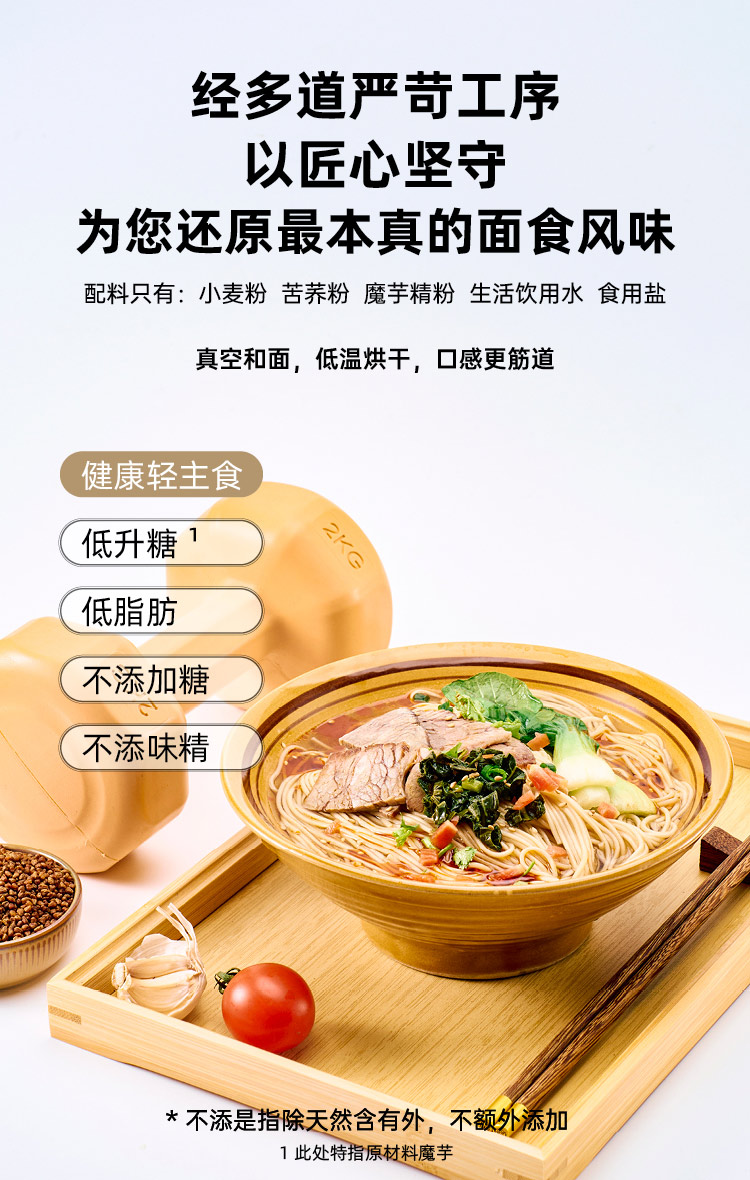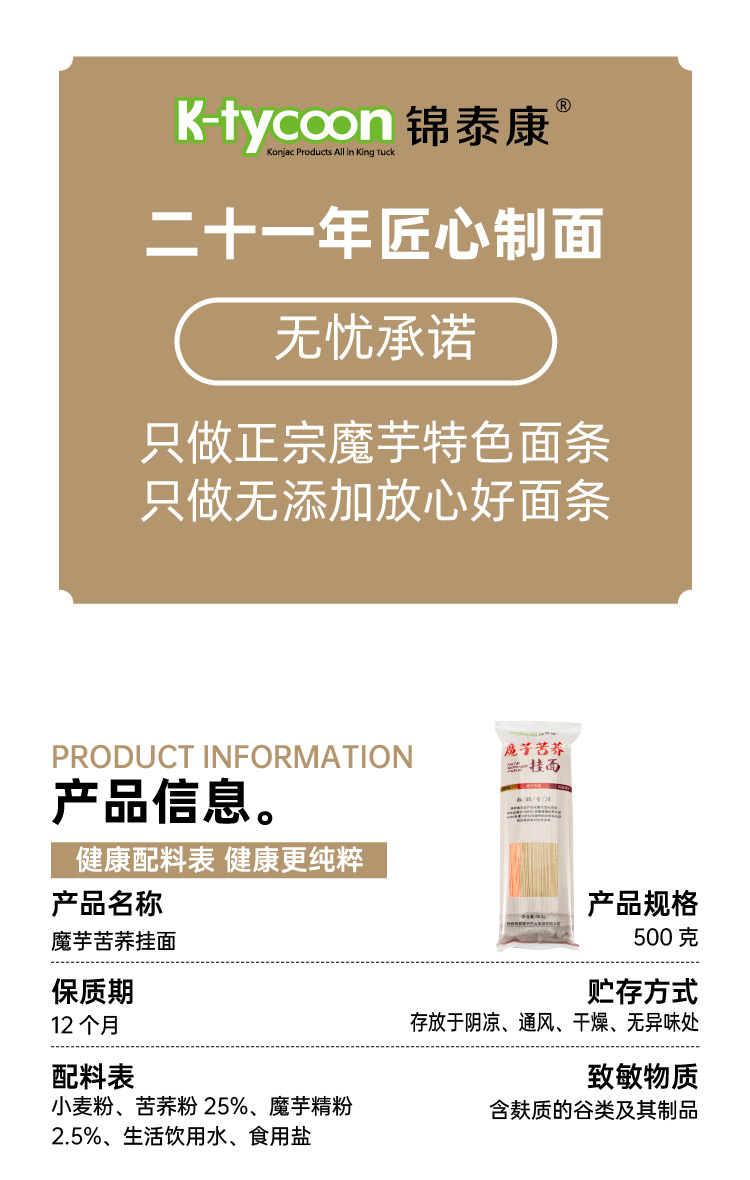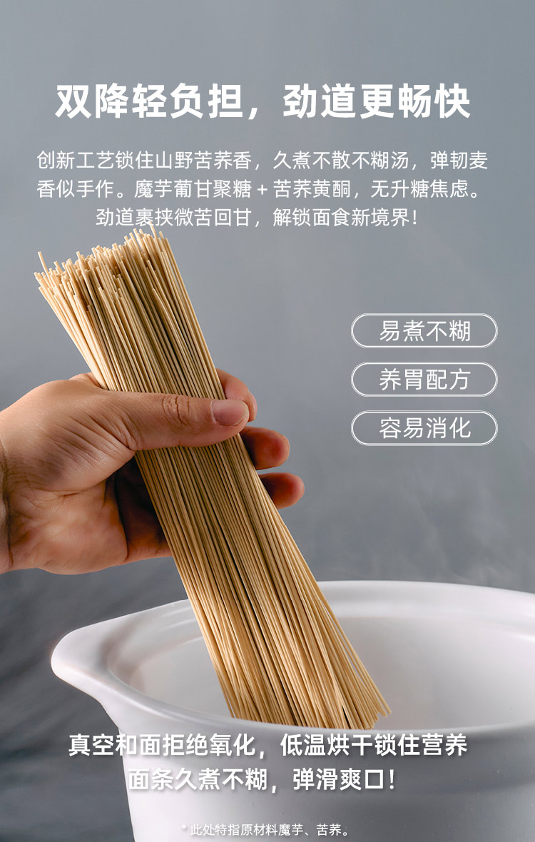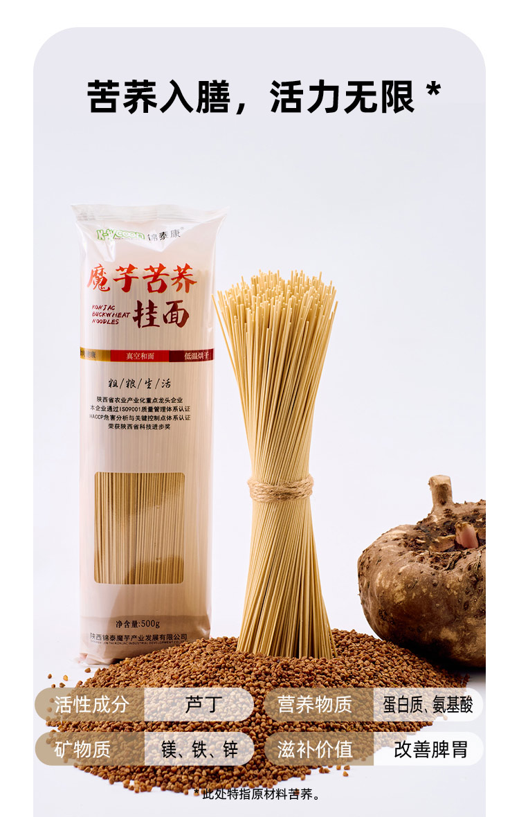 锦泰康 0添加非油炸低脂高蛋白魔芋苦荞挂面500g*1袋/份