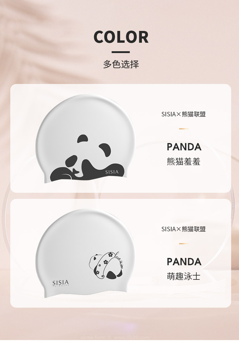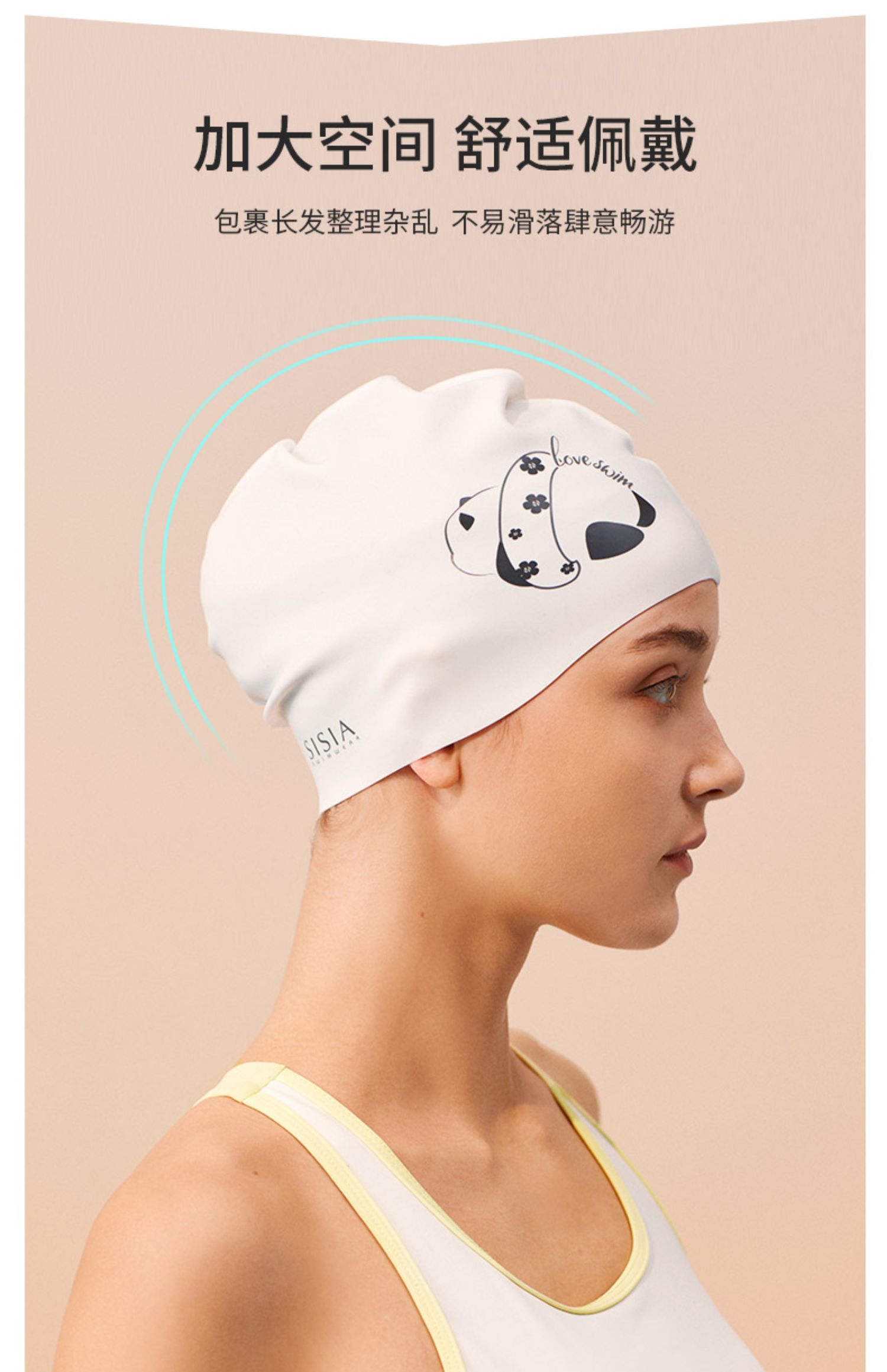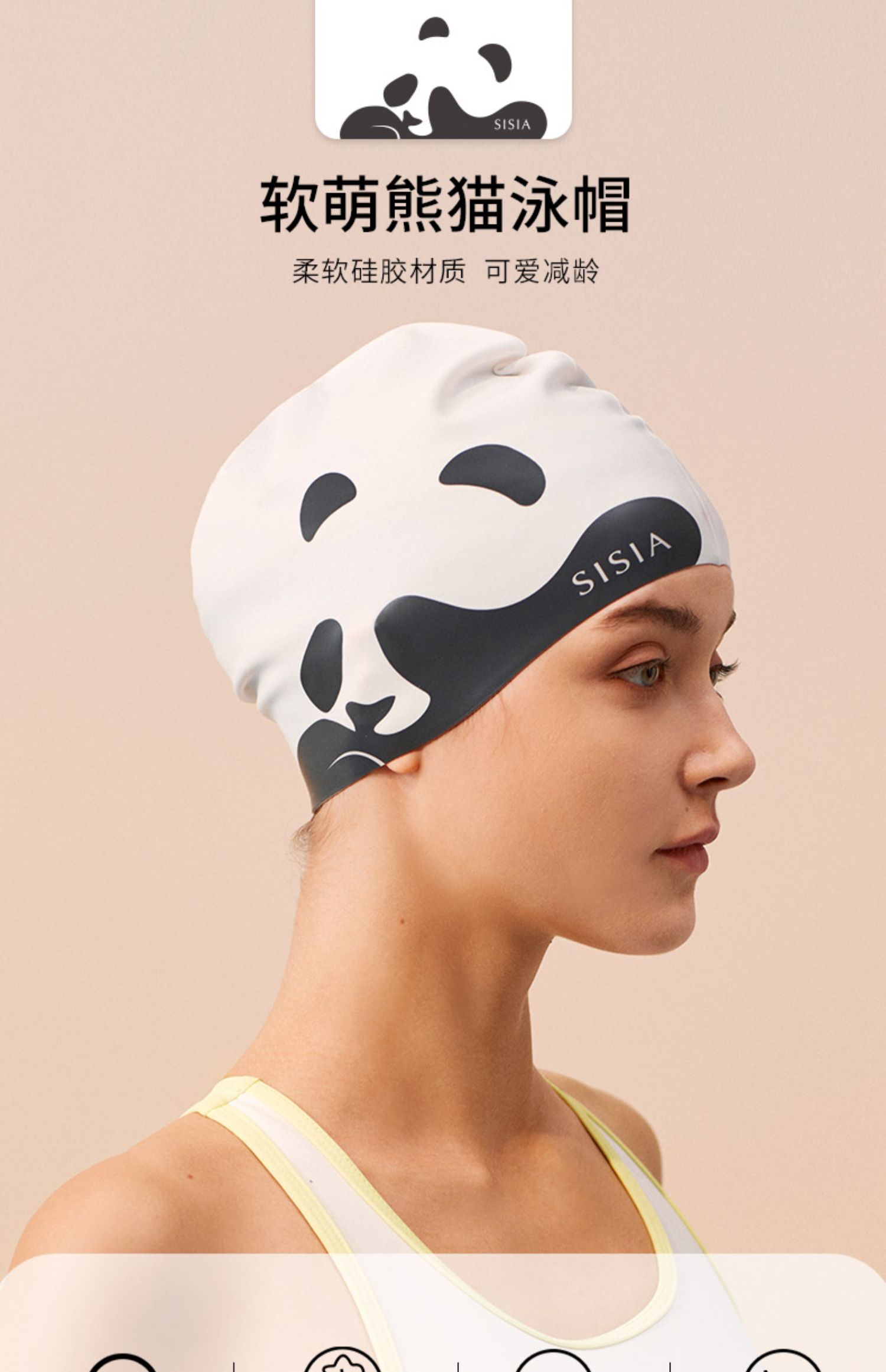 sisia22新款熊猫联盟泳帽女专业防水不勒头长发加大抗氯硅胶泳帽