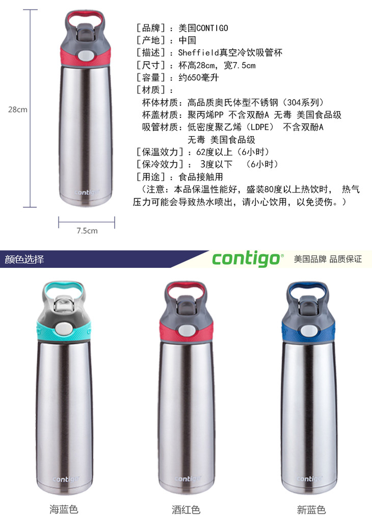 【已下架】积分兑换 | Contigo康迪克 Sheffield户外运动真空吸管保温水杯650ml(不支持无理由退换)[福利品]undefined