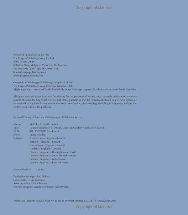 Driss Fatih毕业于牛津大学现代语言专业,拥有超过十年的出版经验,从伦敦的 Routledge 开始,他在那里从事Europa World系列书籍的工作。然后,他加入了 Dod 的议会通讯部,在威斯敏斯特和布鲁塞尔之间工作,并兼任自由撰稿人和校对员的工作。作为墨尔本 The Images Publishing Group 的编辑和项目协调员,他制作了关于建筑和室内设计的书籍——这是他的两大爱好。内容简介:《伦敦的秘密》揭开了这座城市最迷人的秘密。德里斯·法提赫(Driss Fatih)剥去砖块,砂浆和柏油路面,以揭开即使是土生土长的伦敦人也可能从未见过的首都部分地区。Cheesegrater和Walkie-Talkie摩天大楼是中世纪的教堂,地下室和邮递员公园的古玩 - 证明利他主义可以存在于平方英里。在圣詹姆斯,距离Soho的浮华和魅力仅一箭之遥,是隐藏的广场和商店- 优质葡萄酒,绅士服装和圆顶礼帽的供应商。马里波恩和汉普斯特德村的鹅卵石马厩揭示了意想不到的宝藏,罕见的内饰和城市嗡嗡声中的乡村田园风光。约翰·索恩爵士博物馆和Leighton House的异国情调的深奥收藏品让您感觉自己置身于一个完全不同的国家。经过大量拍摄和研究,《伦敦的秘密》将为这个最具活力和惊喜的城市提供全新的视角。