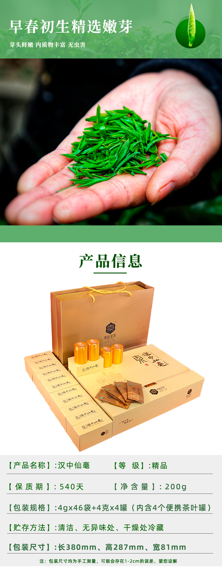 【2025春茶】东裕茗茶 精品仙毫200克金色礼盒装 精选嫩芽 汤色明亮