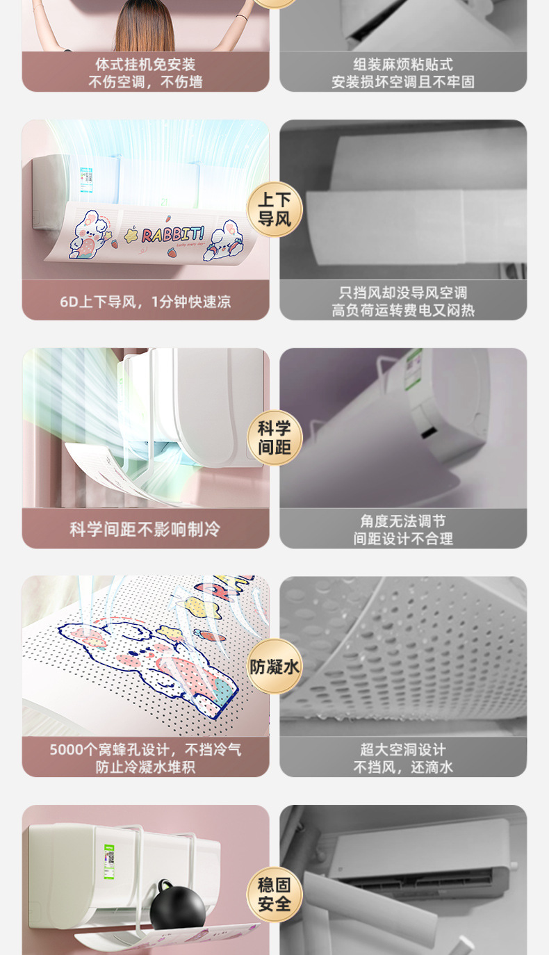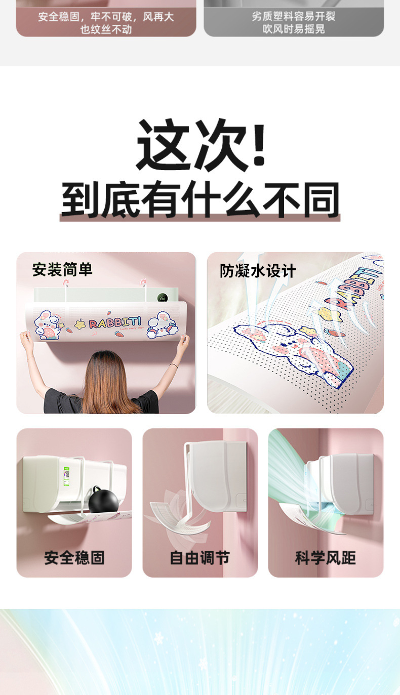 「180°随意调节!数款可选」卡通空调挡风板防直吹遮风板免安装卧室通用壁挂式冷气暖气居家日用导风板