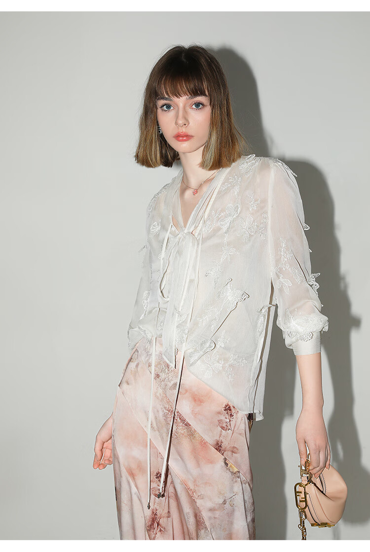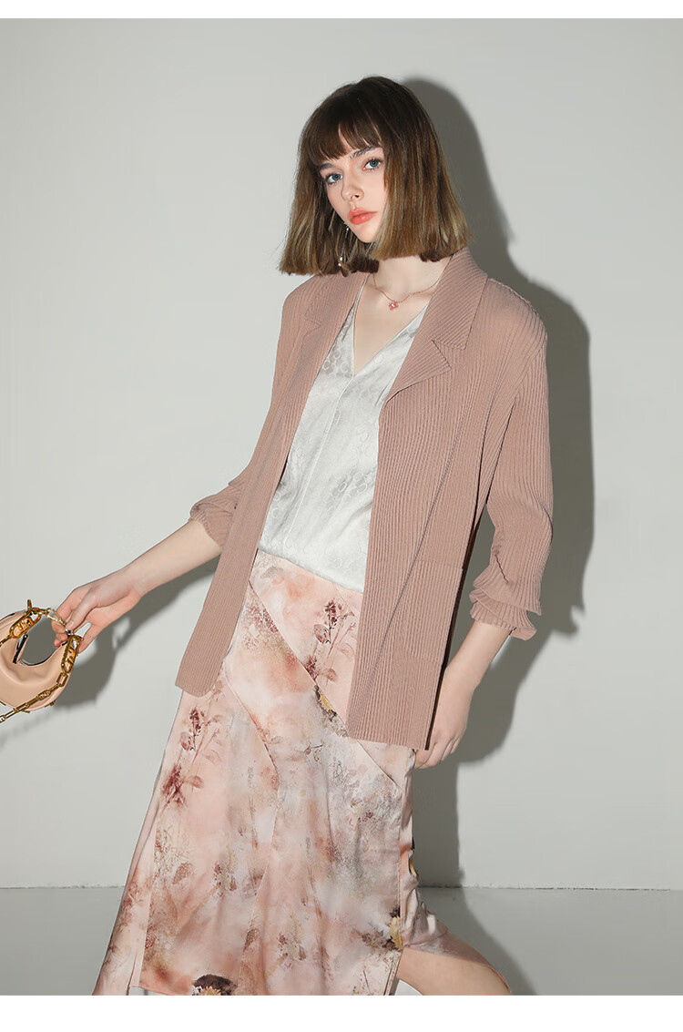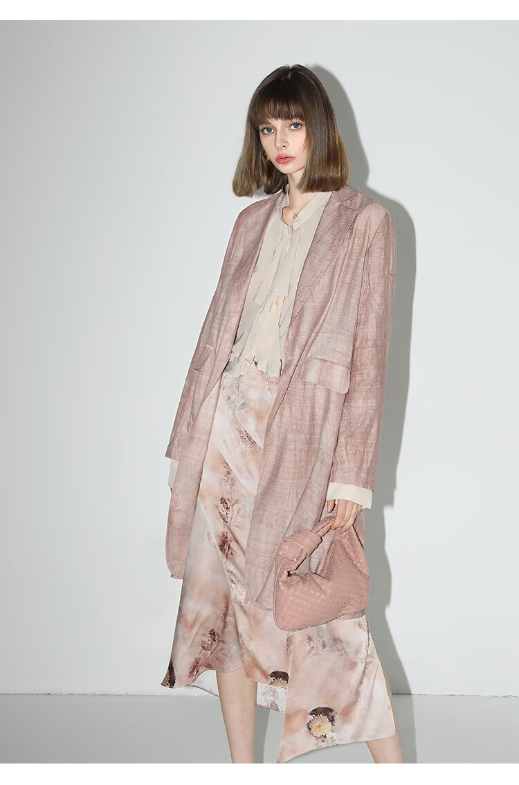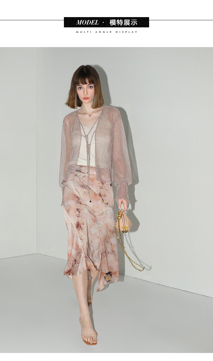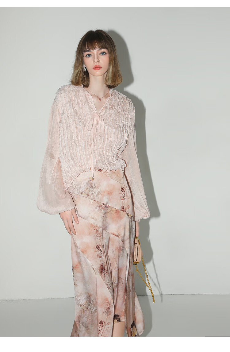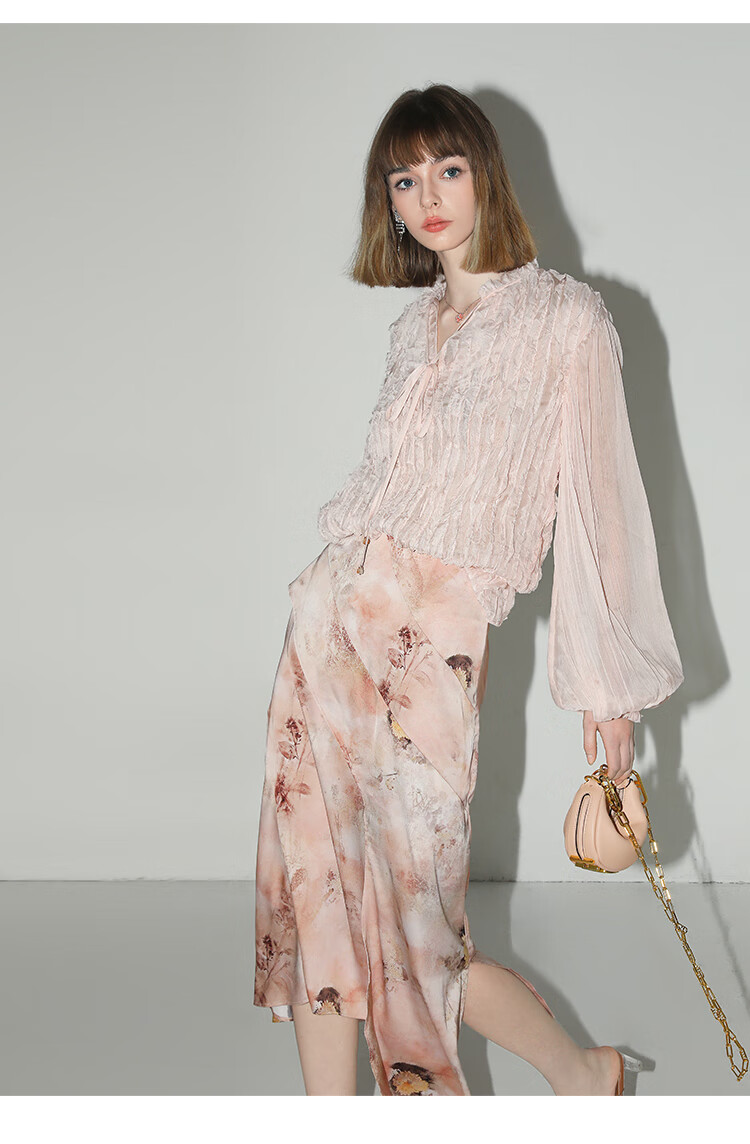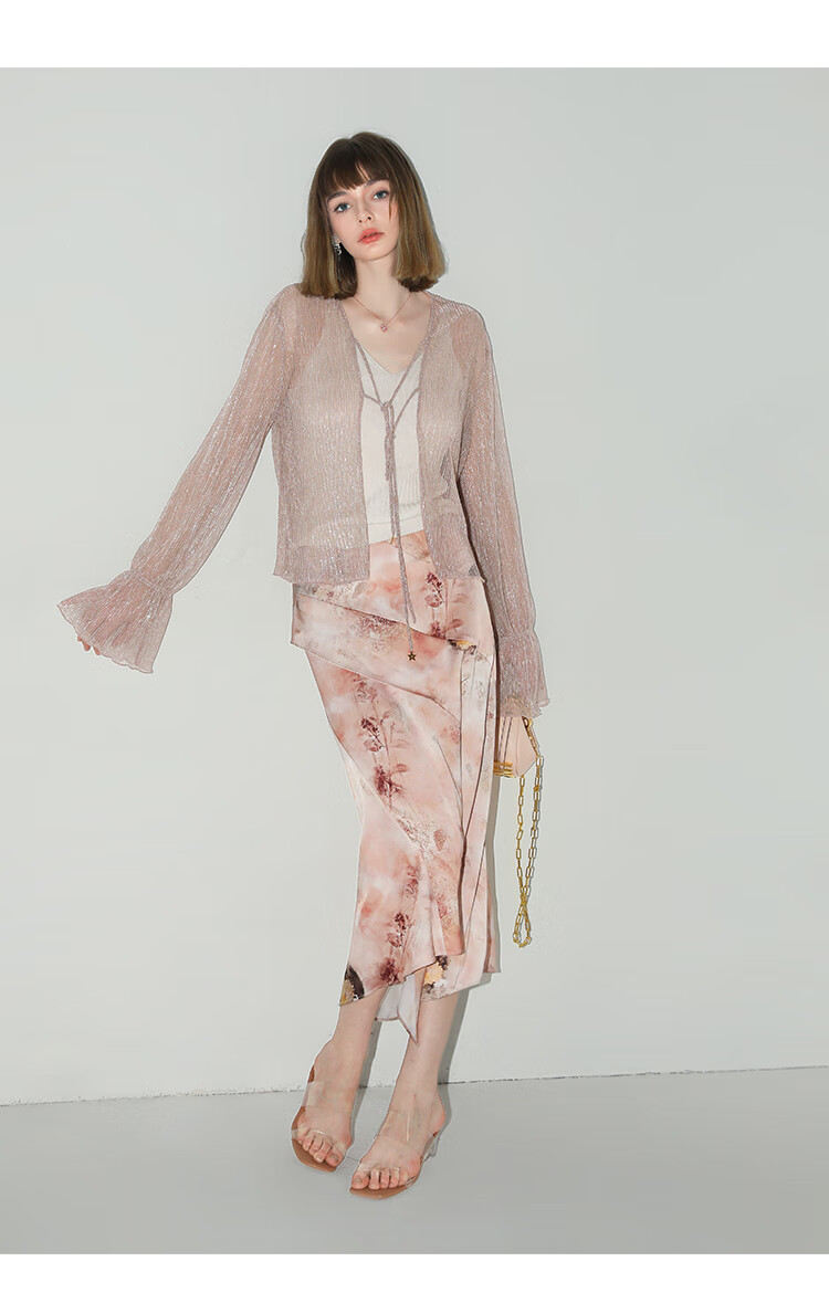 【有赞】COCOBELLA设计感拼接晕染印花缎面半身裙不规则下摆长裙HS7003