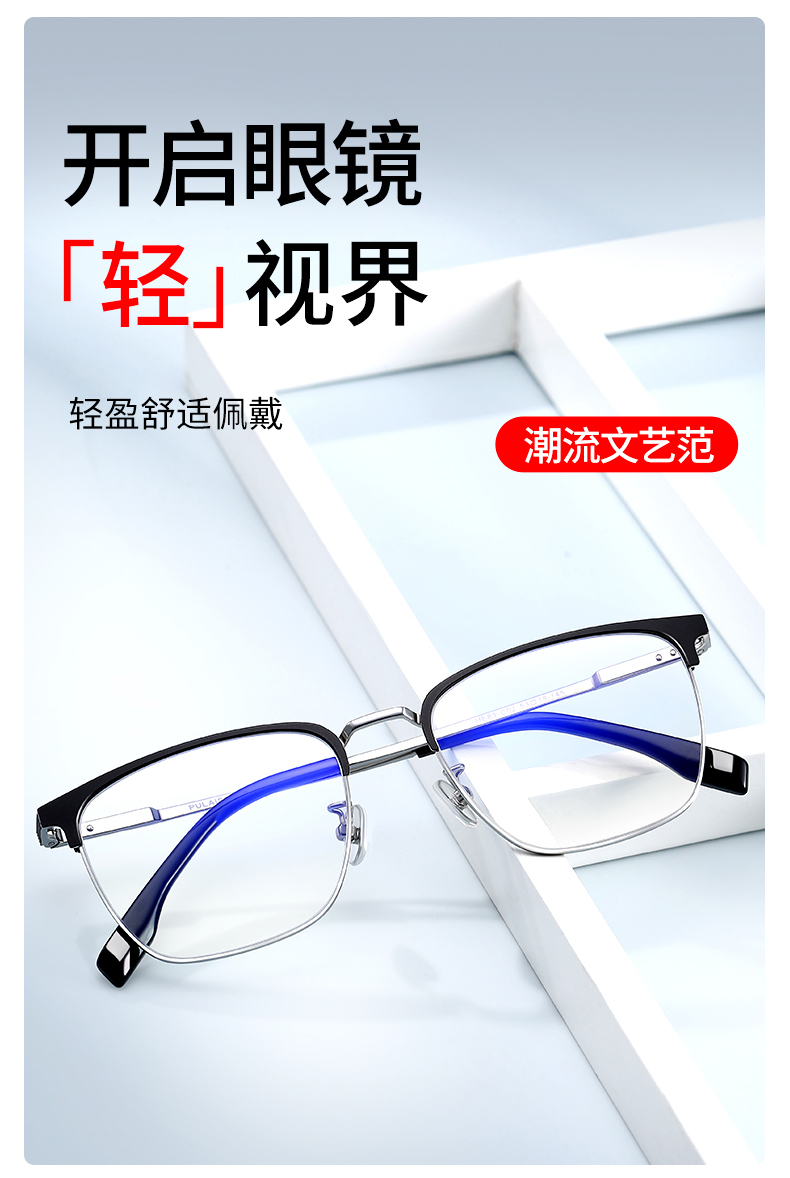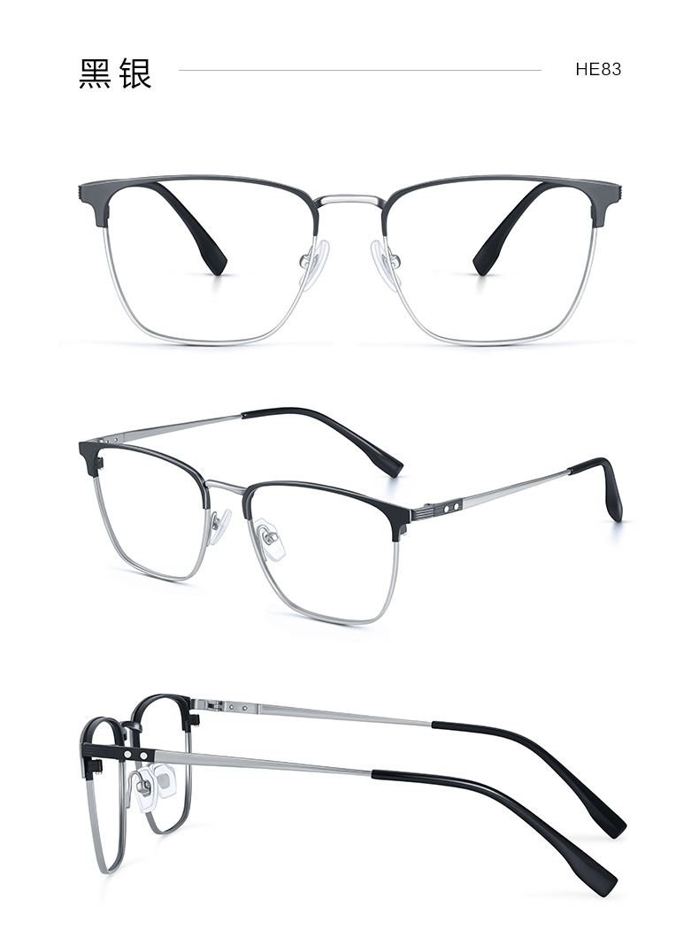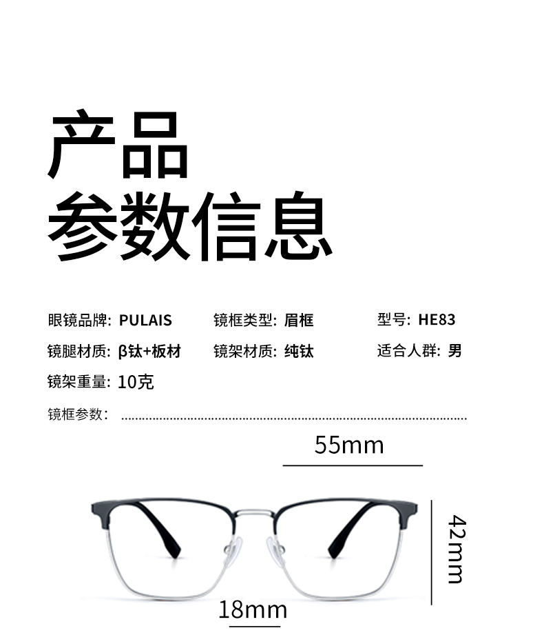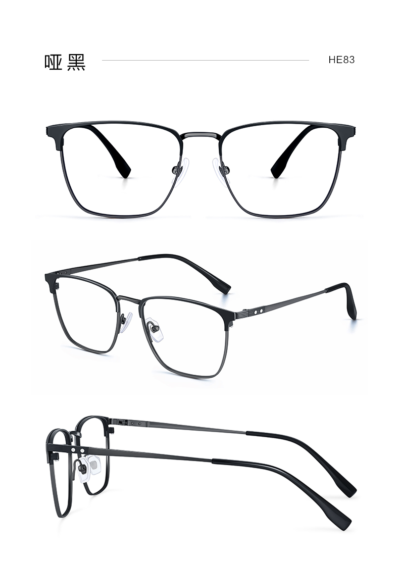 普莱斯光学镜架HE83 高品质纯钛架 痞帅潮款 时尚简约 经典眉框 真空IP电镀 三色可选