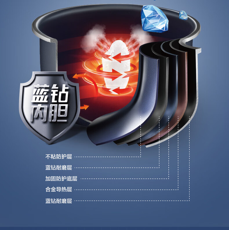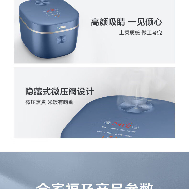 苏泊尔(SUPOR)电饭煲4升家用电饭锅蓝钻不粘内胆24小时智能预约香弹饭SF40FC71 3-8人适用