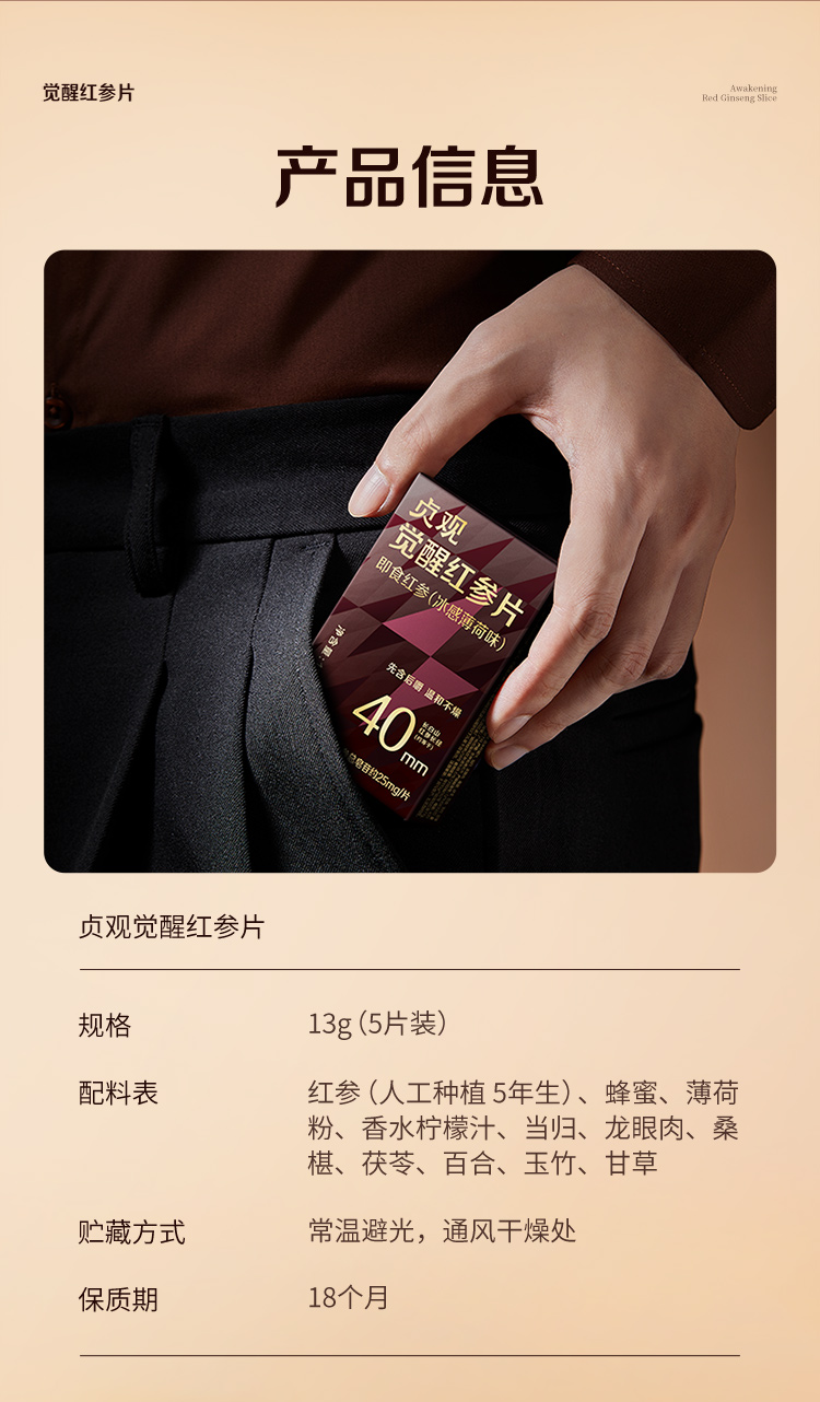 【私信门店顾问享专属折扣】贞观 即食觉醒红参片 深度补气血提神不易上火 (5片/盒)
