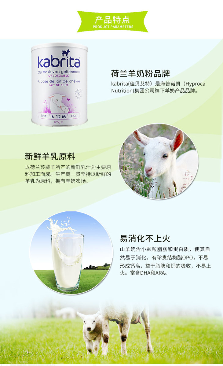 【保税区】荷兰版Kabrita佳贝艾特羊奶粉2段800g(新包装)