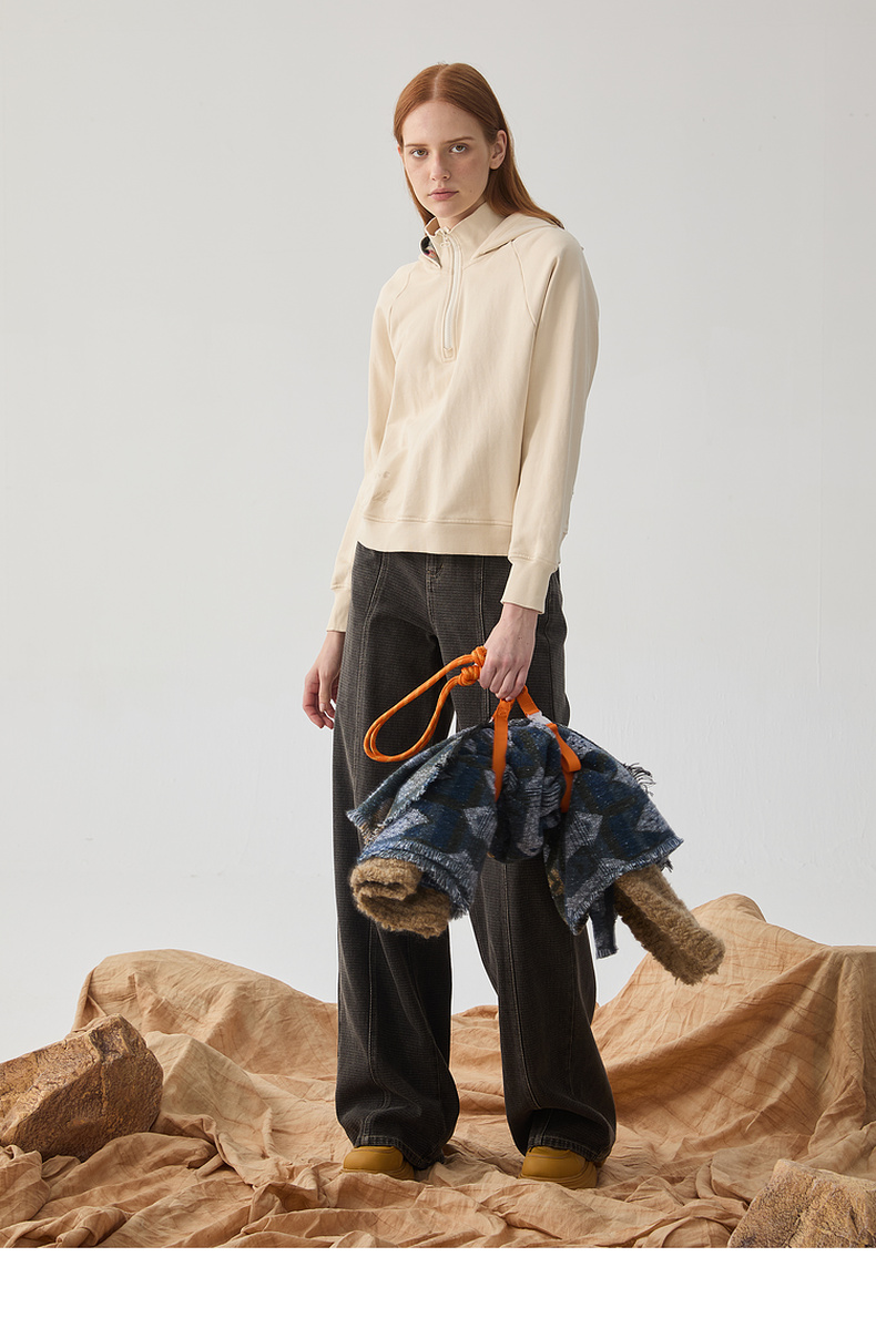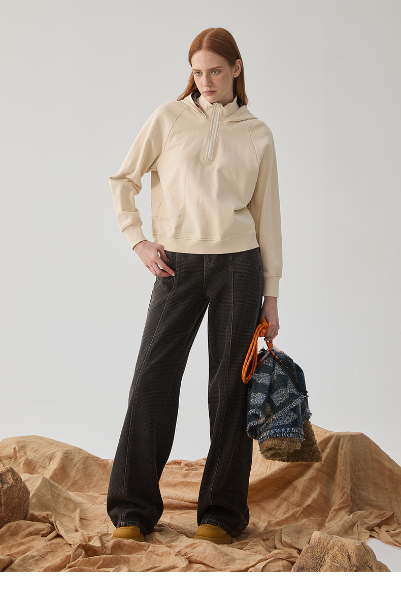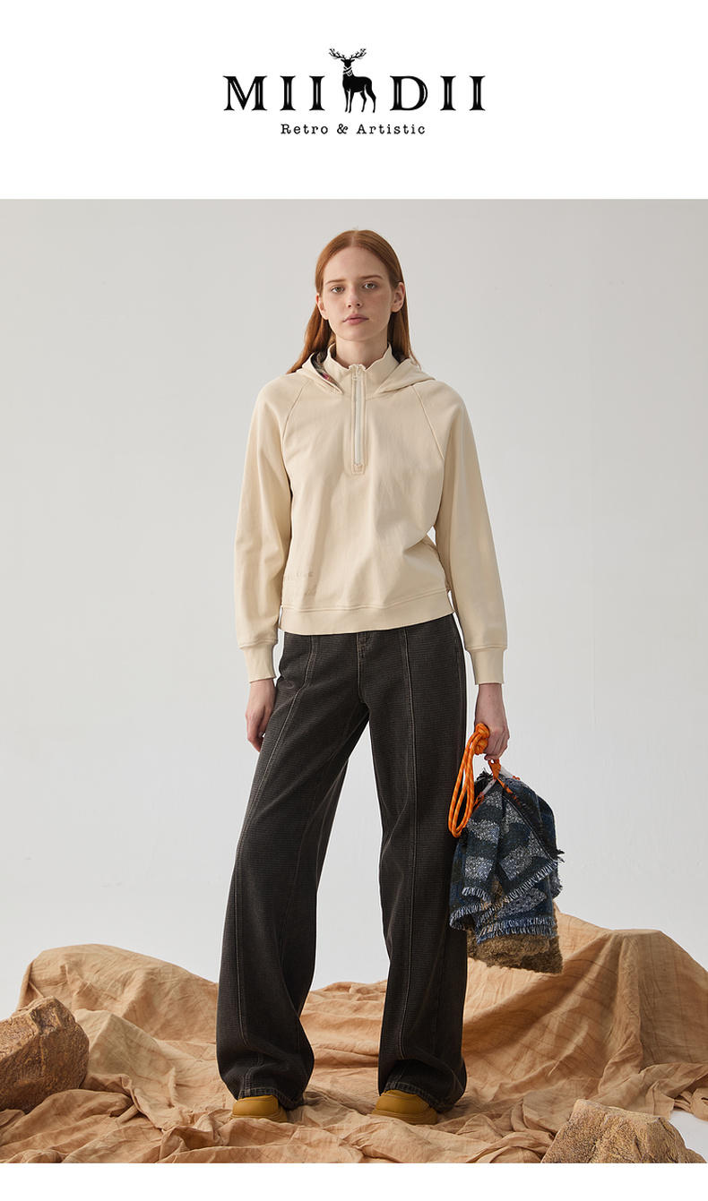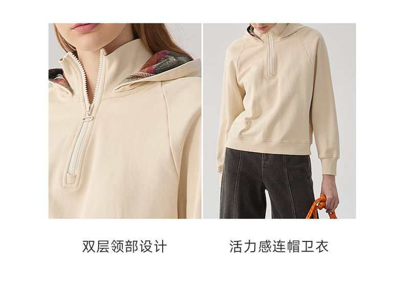 谜底连帽卫衣女2024冬新品简约休闲风双层领设计感上衣244MV1668