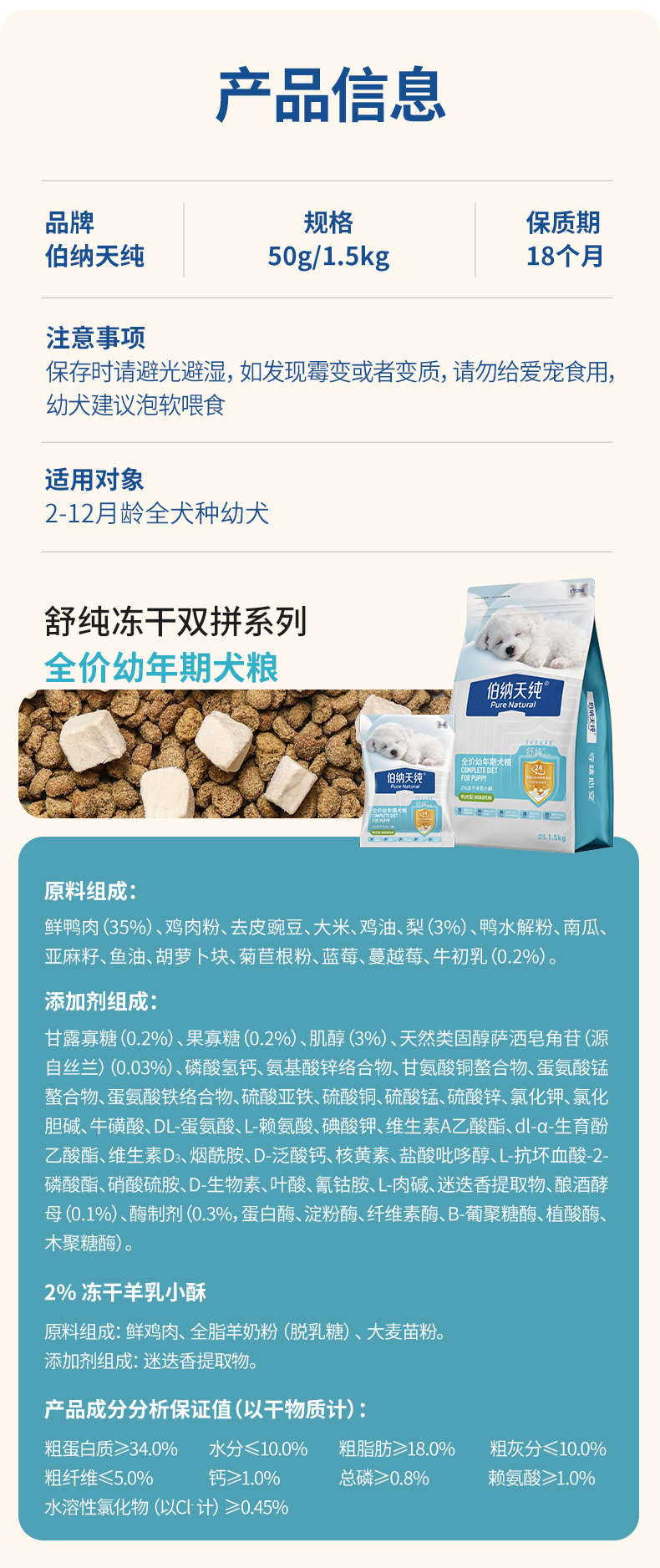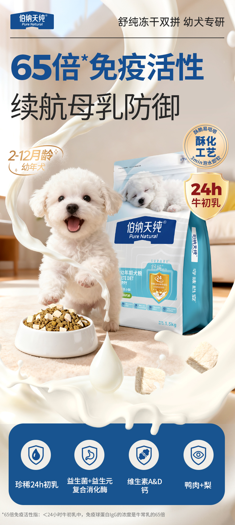 【新品】【幼犬专用】伯纳天纯舒纯冻干双拼全价幼犬狗粮1.5kg