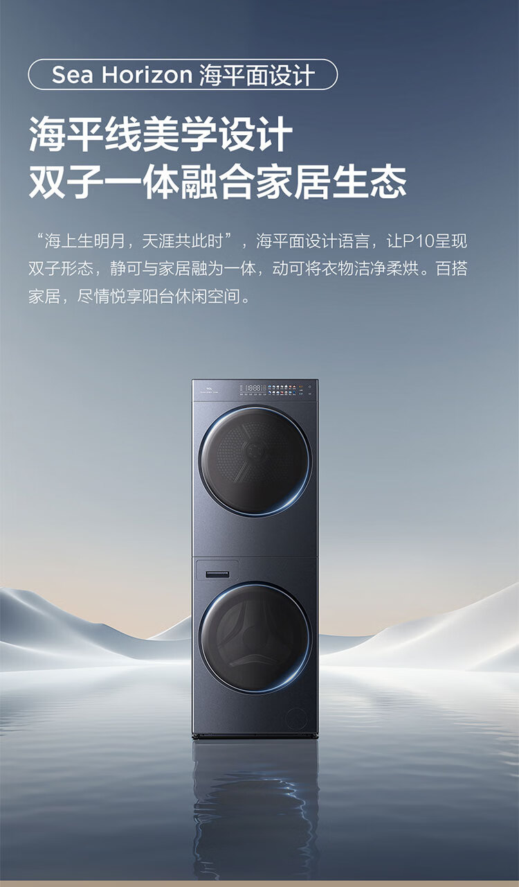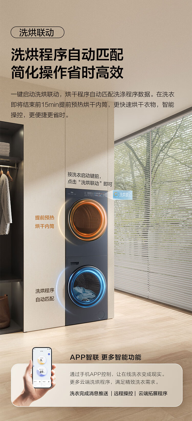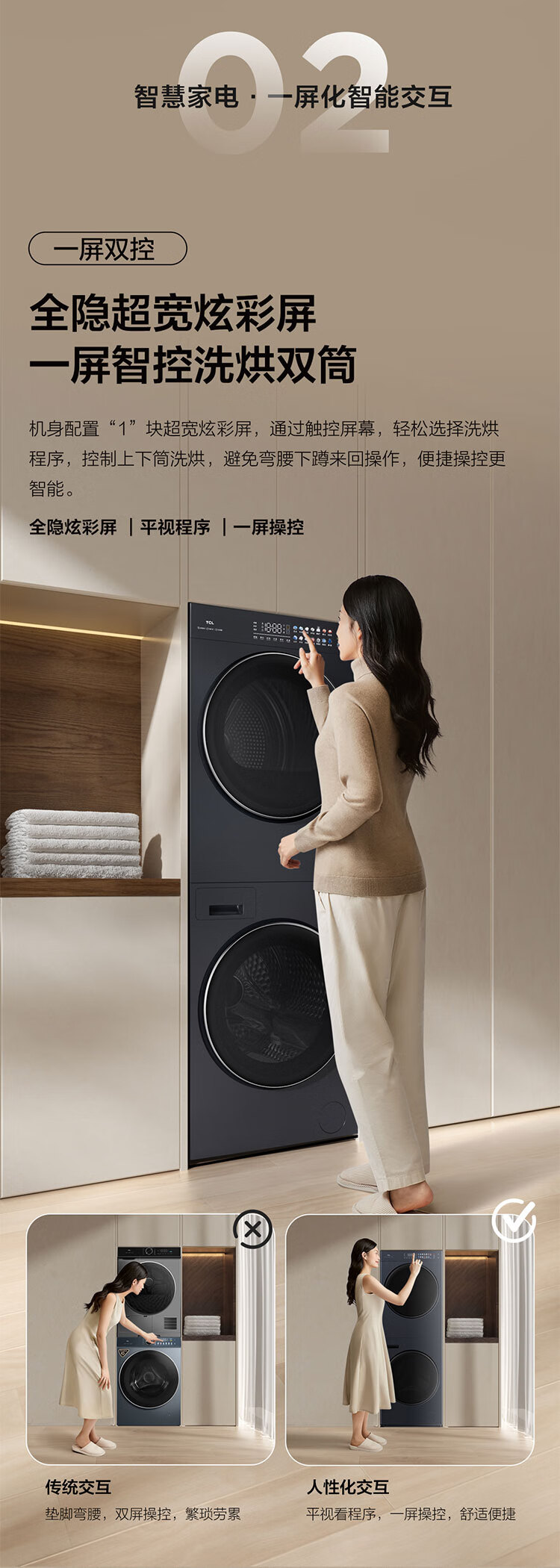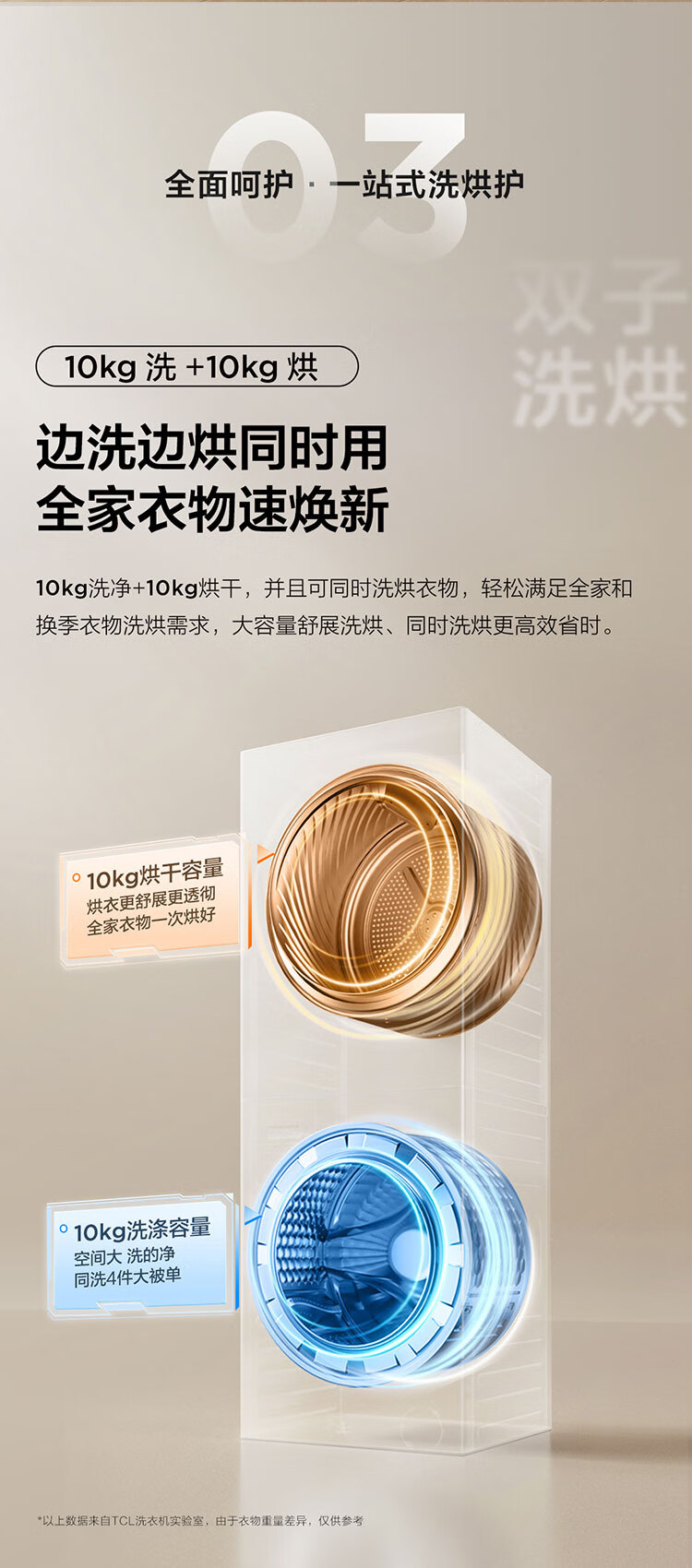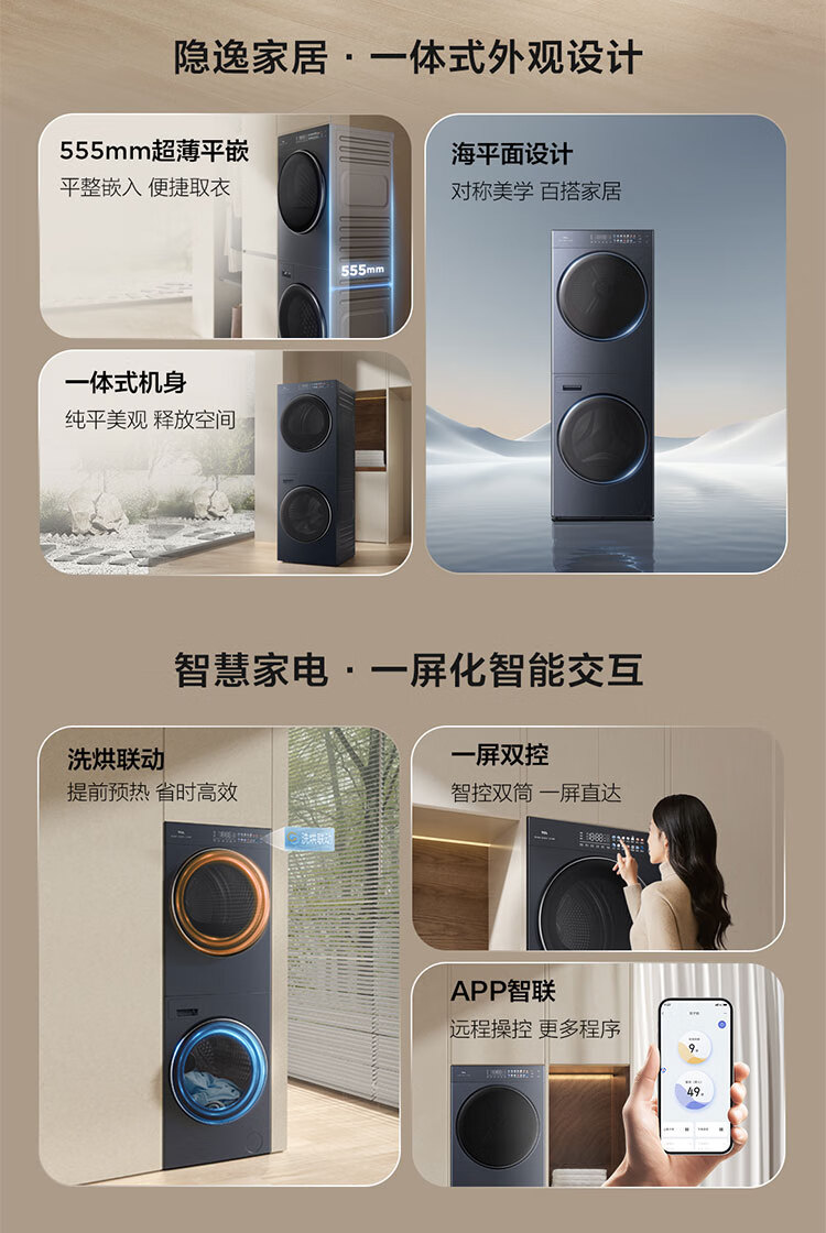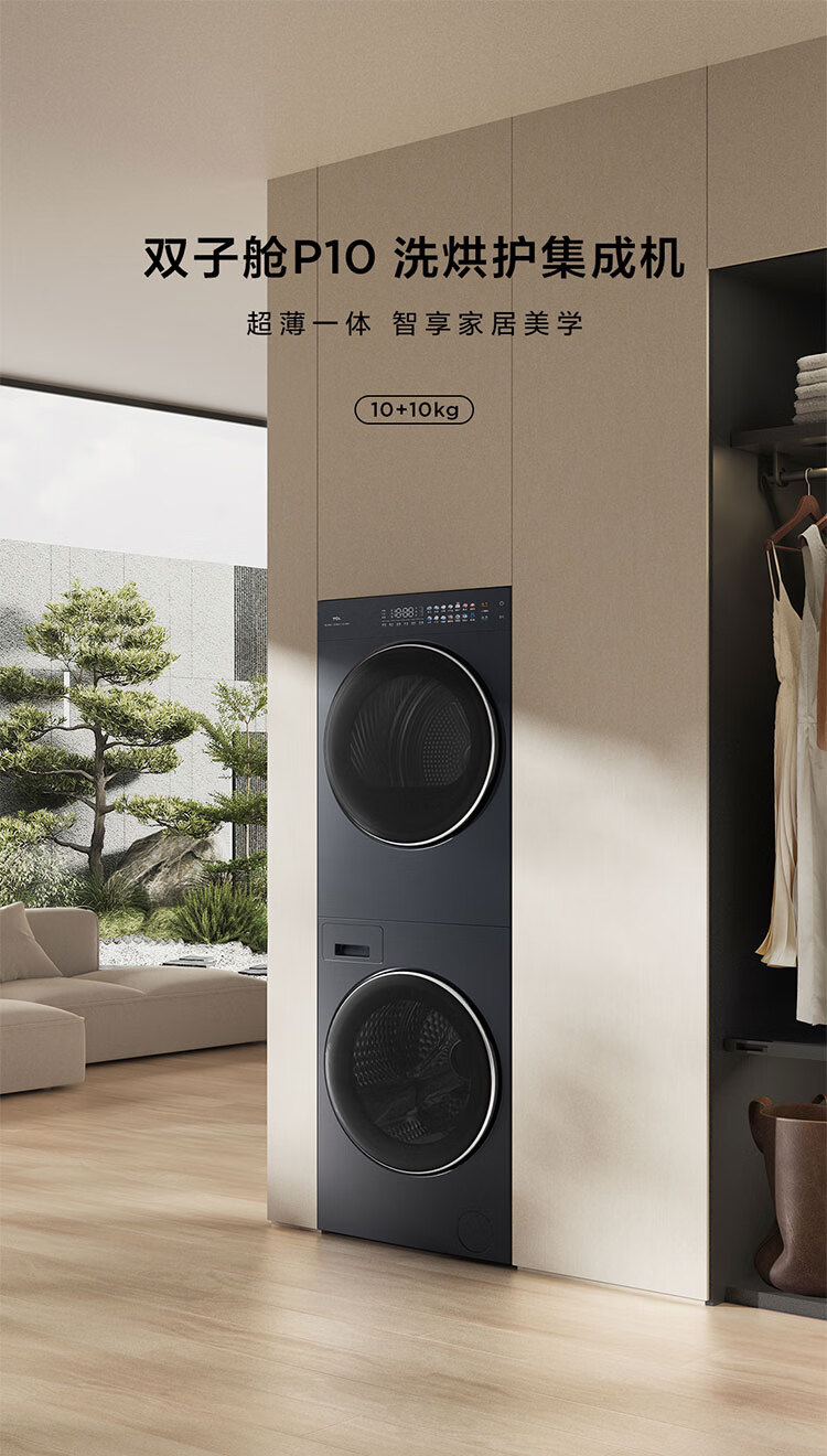 TCL双子舱10KG滚筒洗烘护集成机 一屏双控 超薄平嵌一体机身 热泵烘干 GH200P10(线下同款)