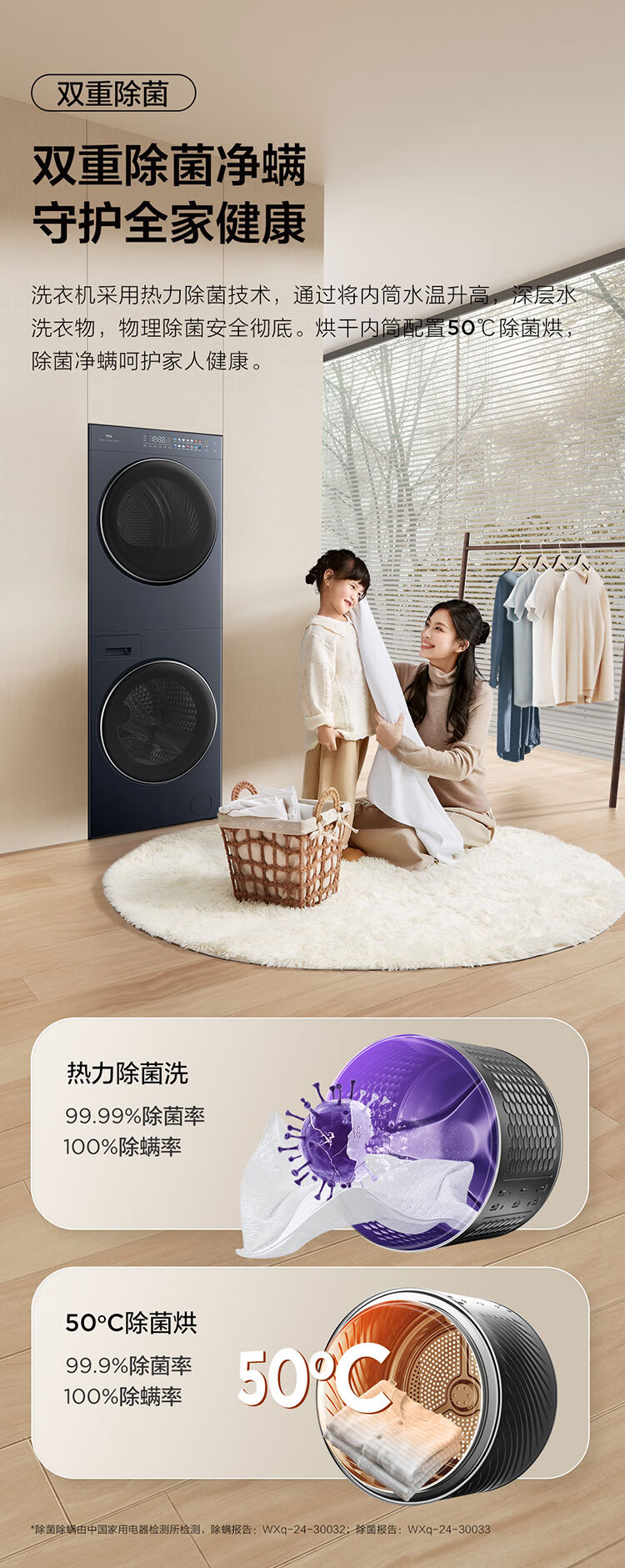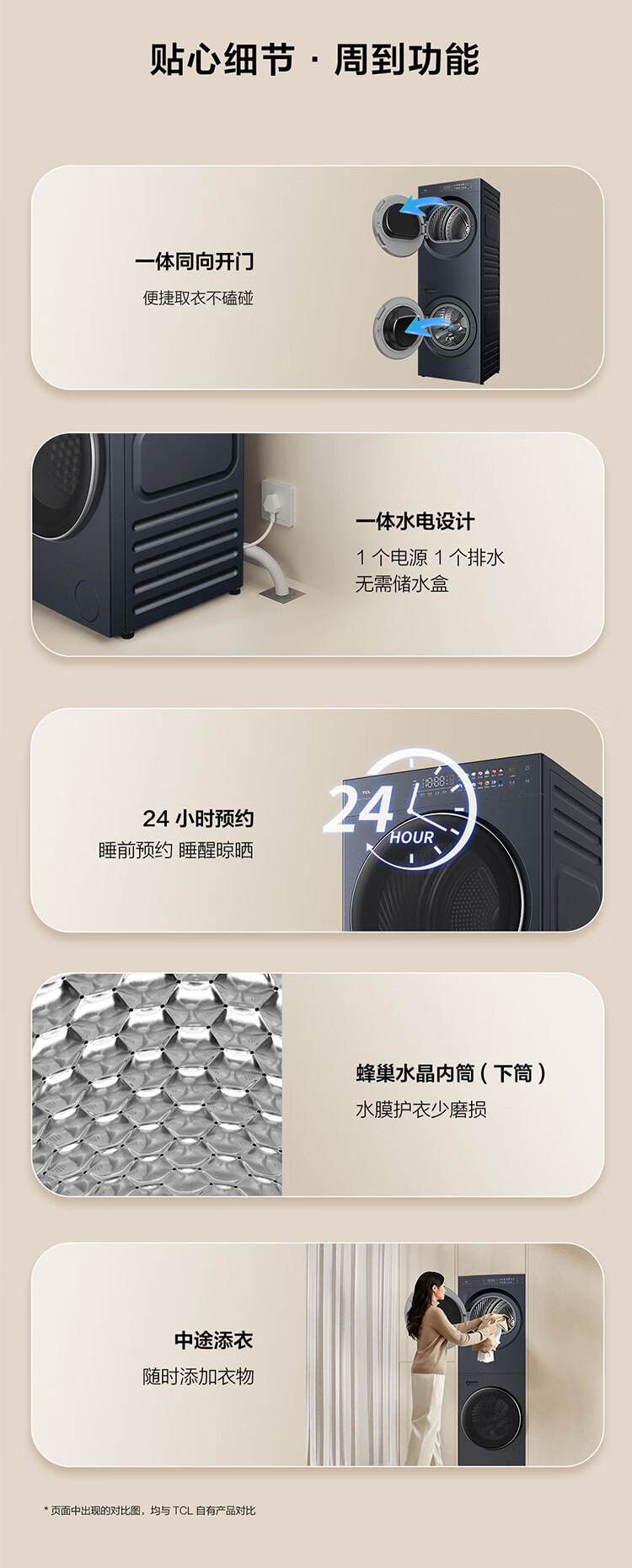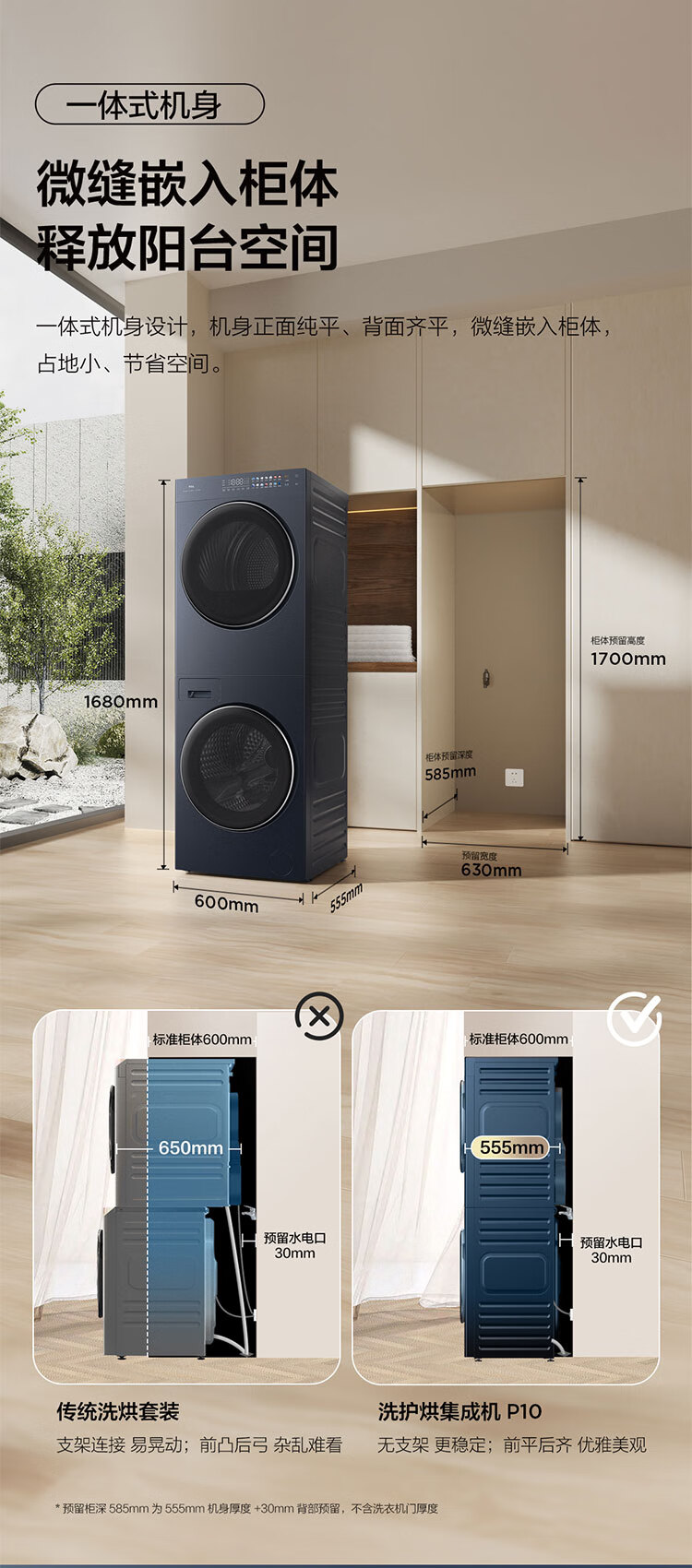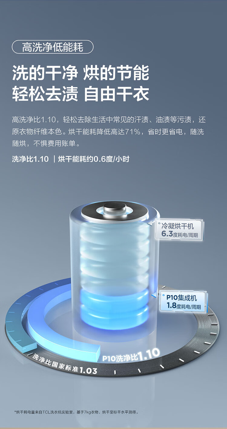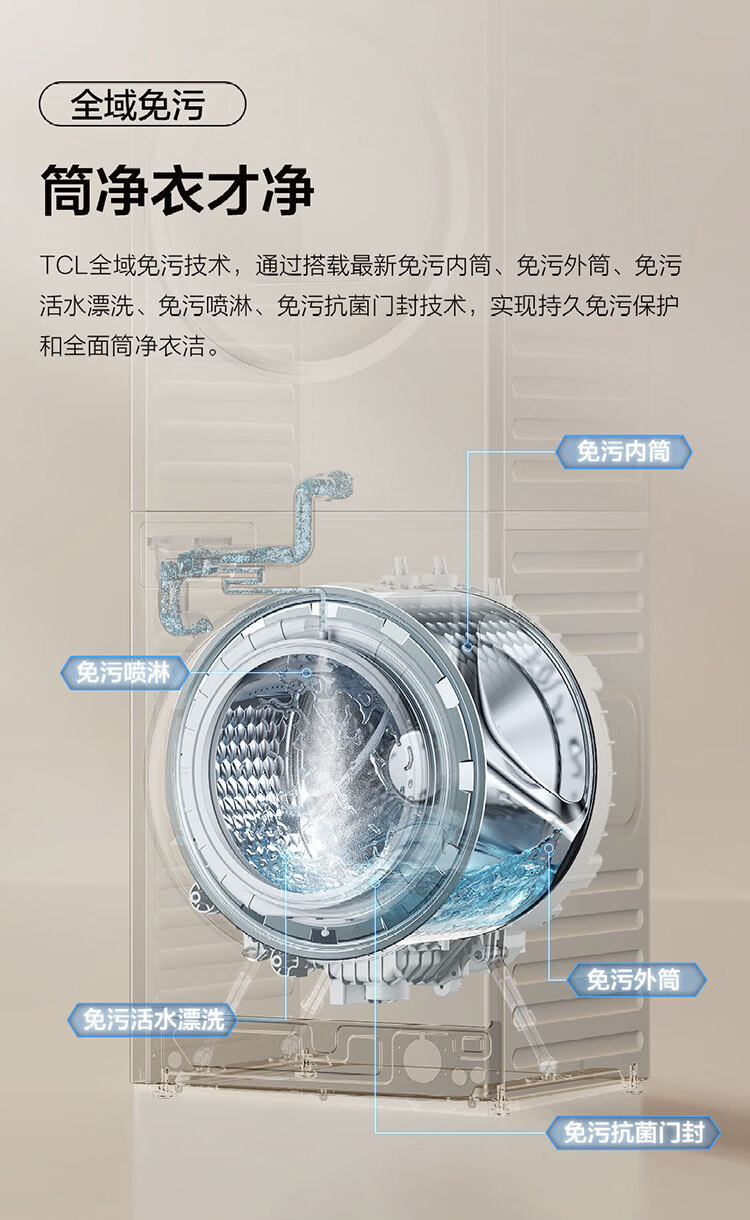 TCL双子舱10KG滚筒洗烘护集成机 一屏双控 超薄平嵌一体机身 热泵烘干 GH200P10(线下同款)